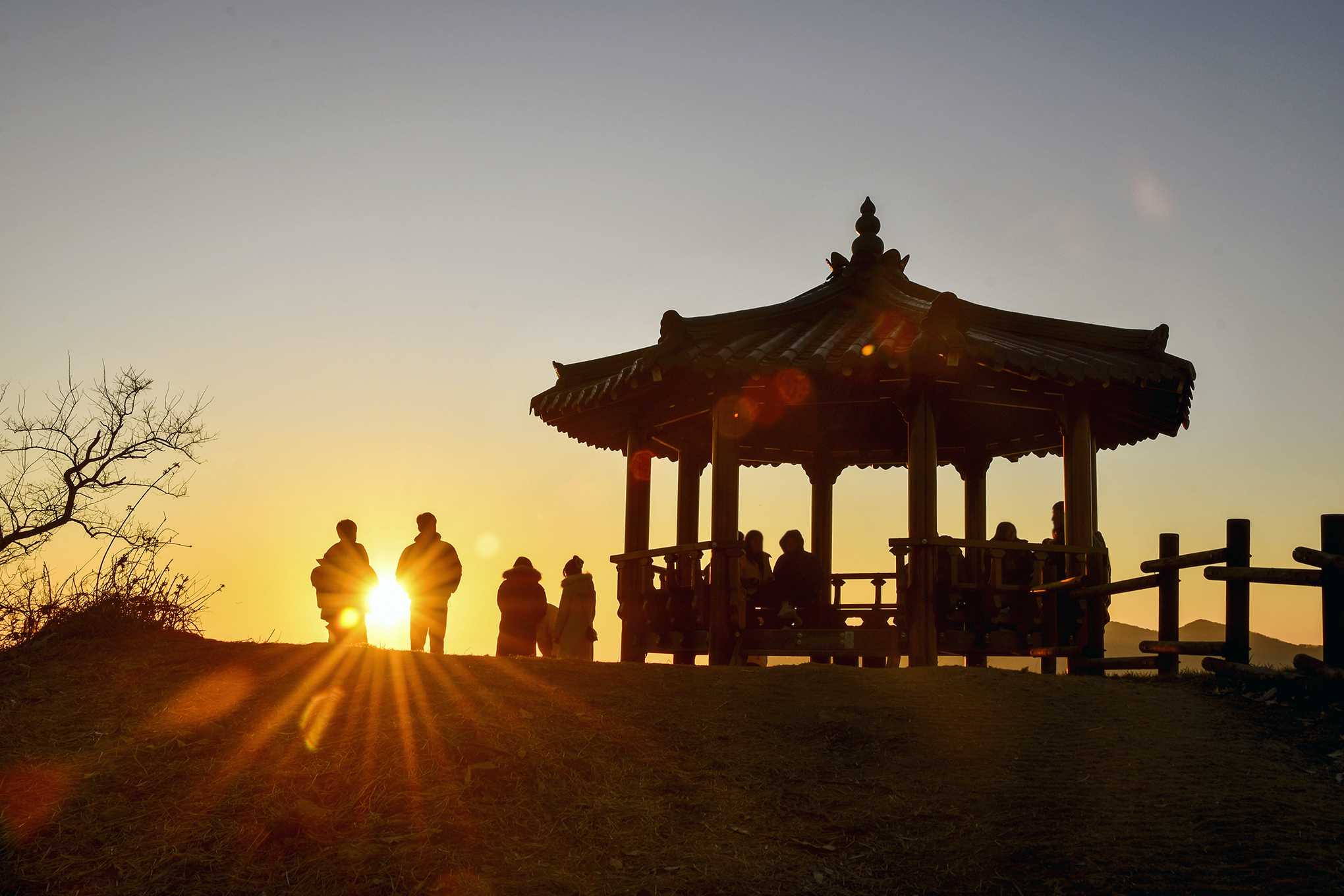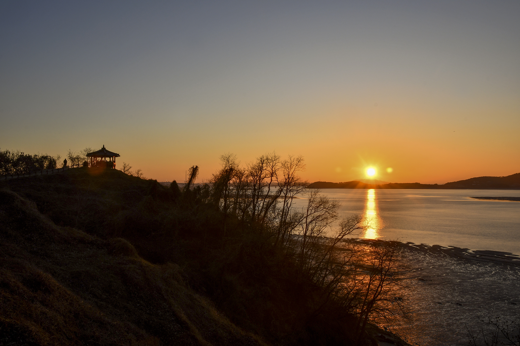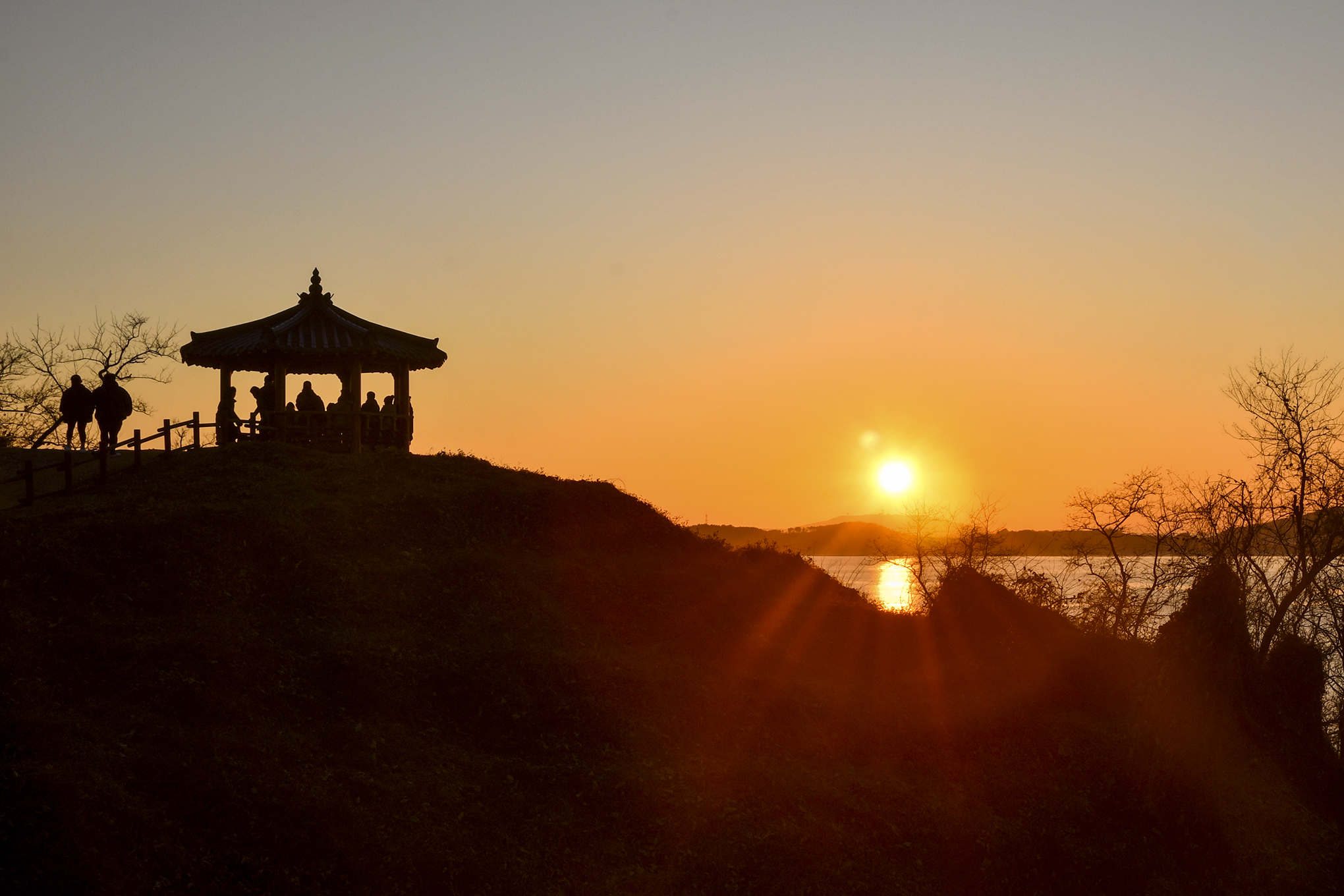 정자 앞에서 맞이하는 노을