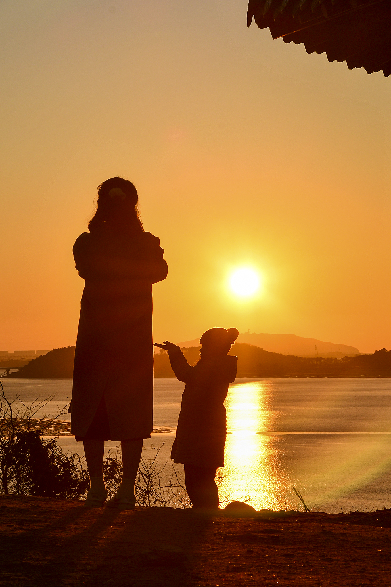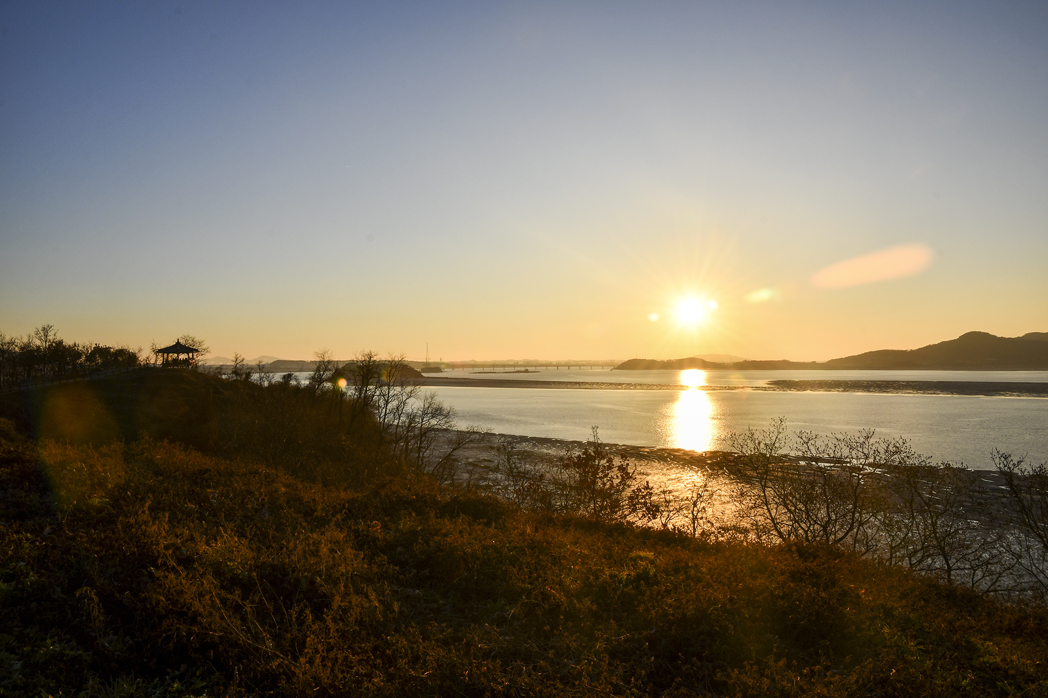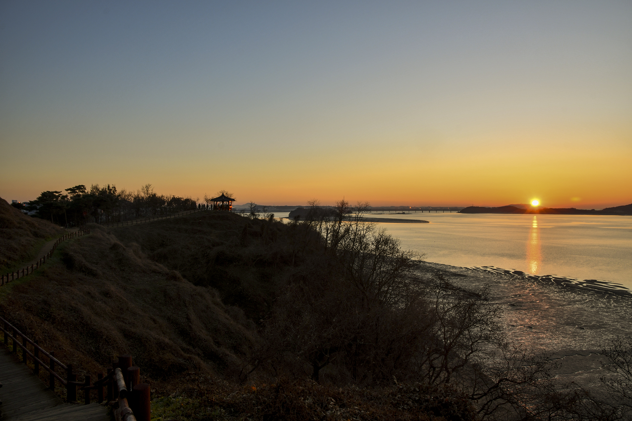 정자 앞에서 맞이하는 노을