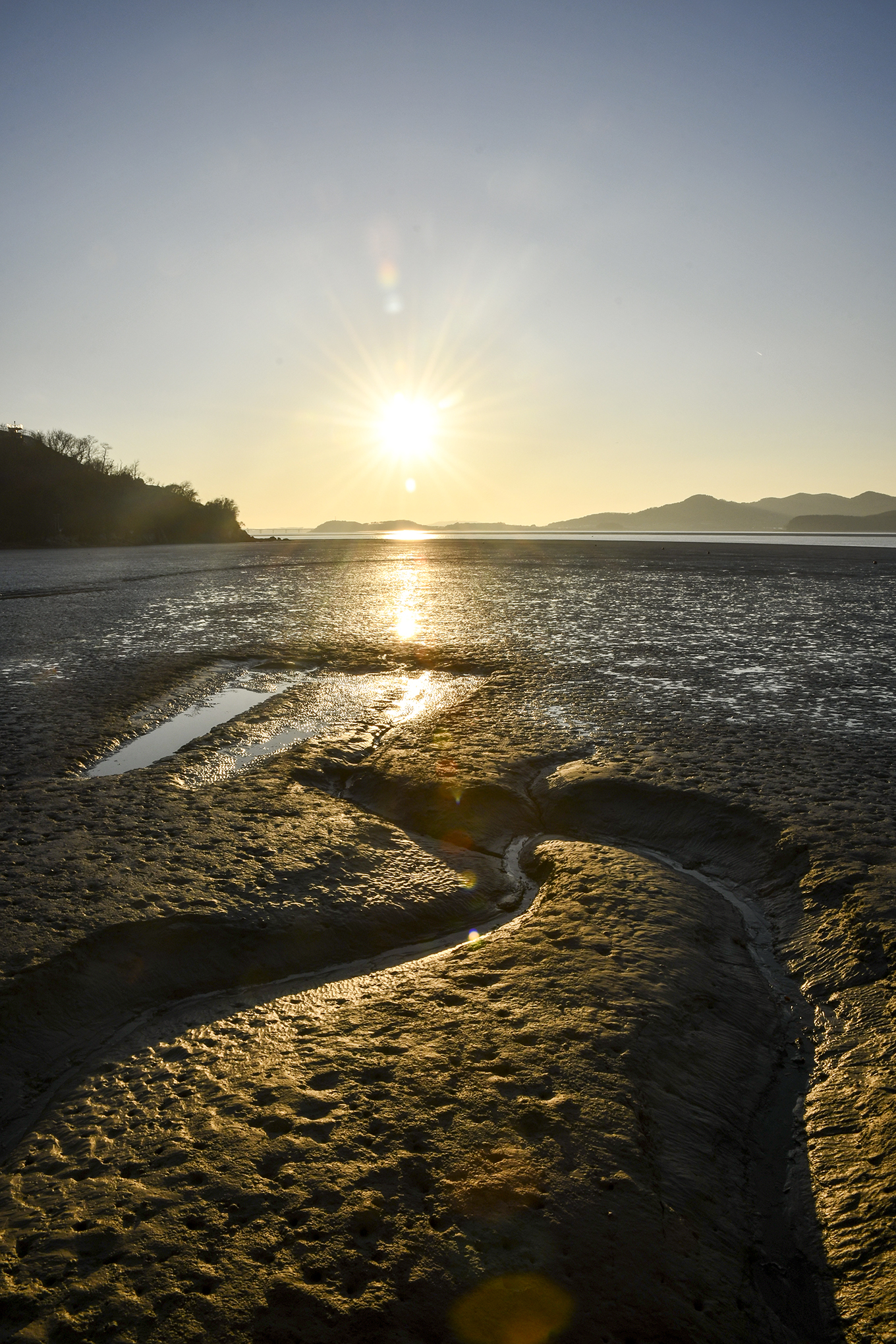 물 빠진 갯벌 위로 노을빛이 예쁜 시간이다.