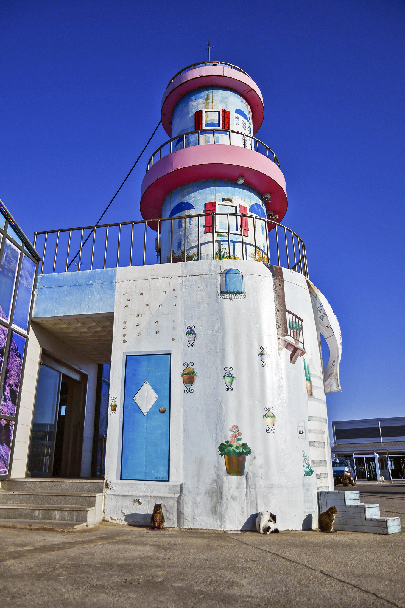 주차장에서 바라보는 이 등대 건물은 바로 화장실~