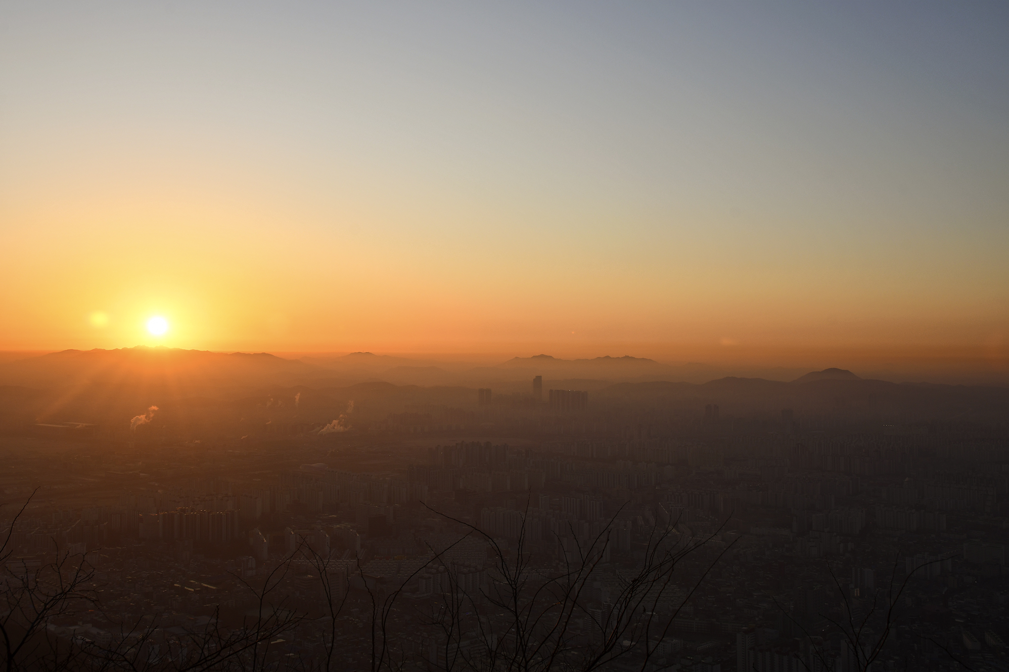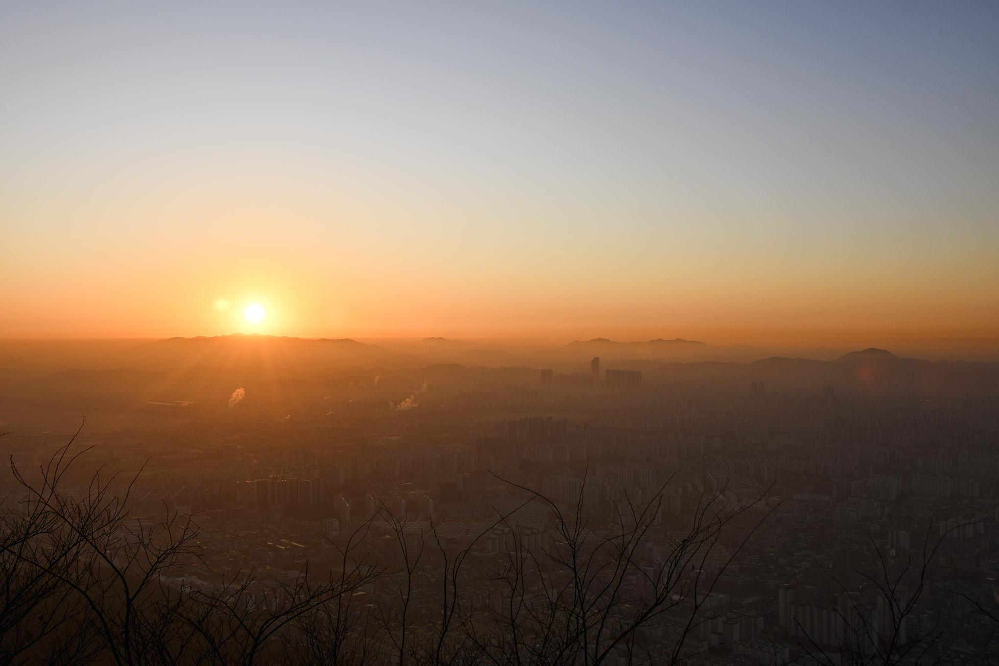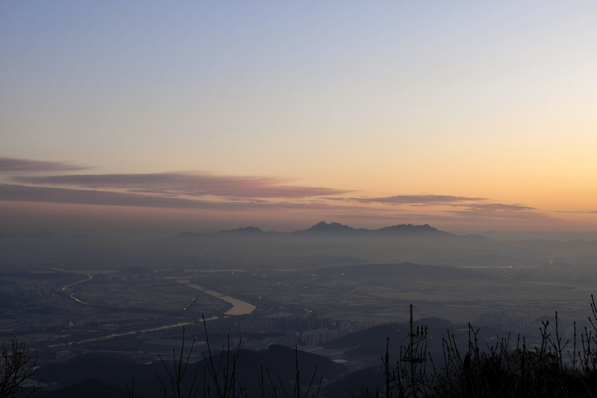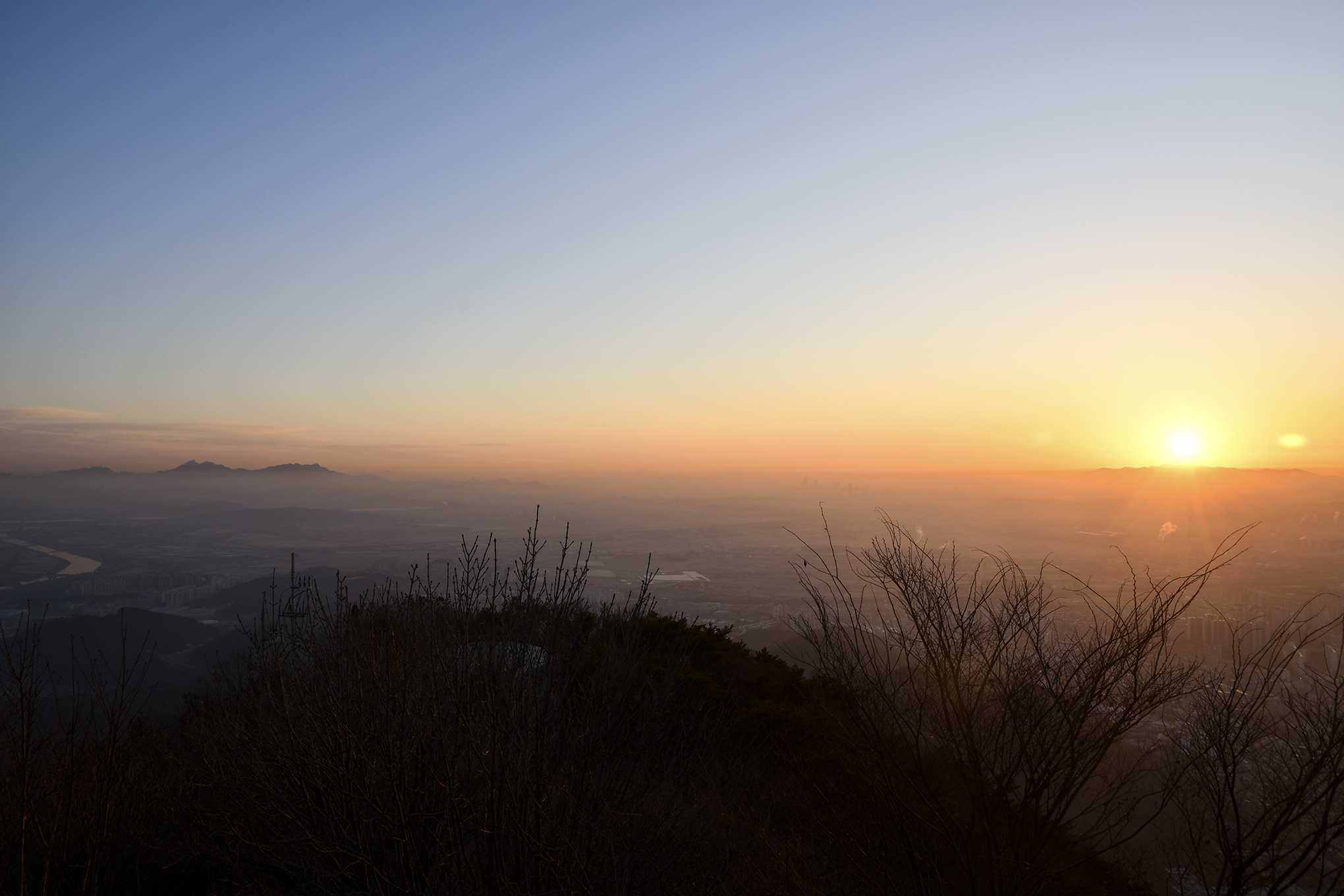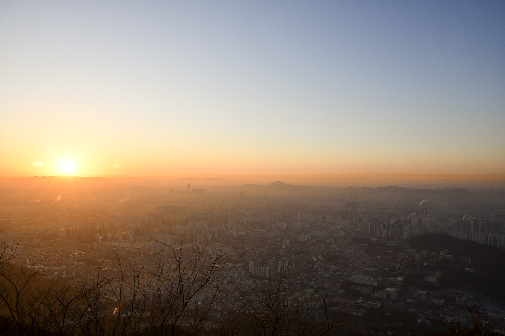 여명이 밝아오는 시간, 저 멀리 관악산에서 해가 떠오를 모양이다.