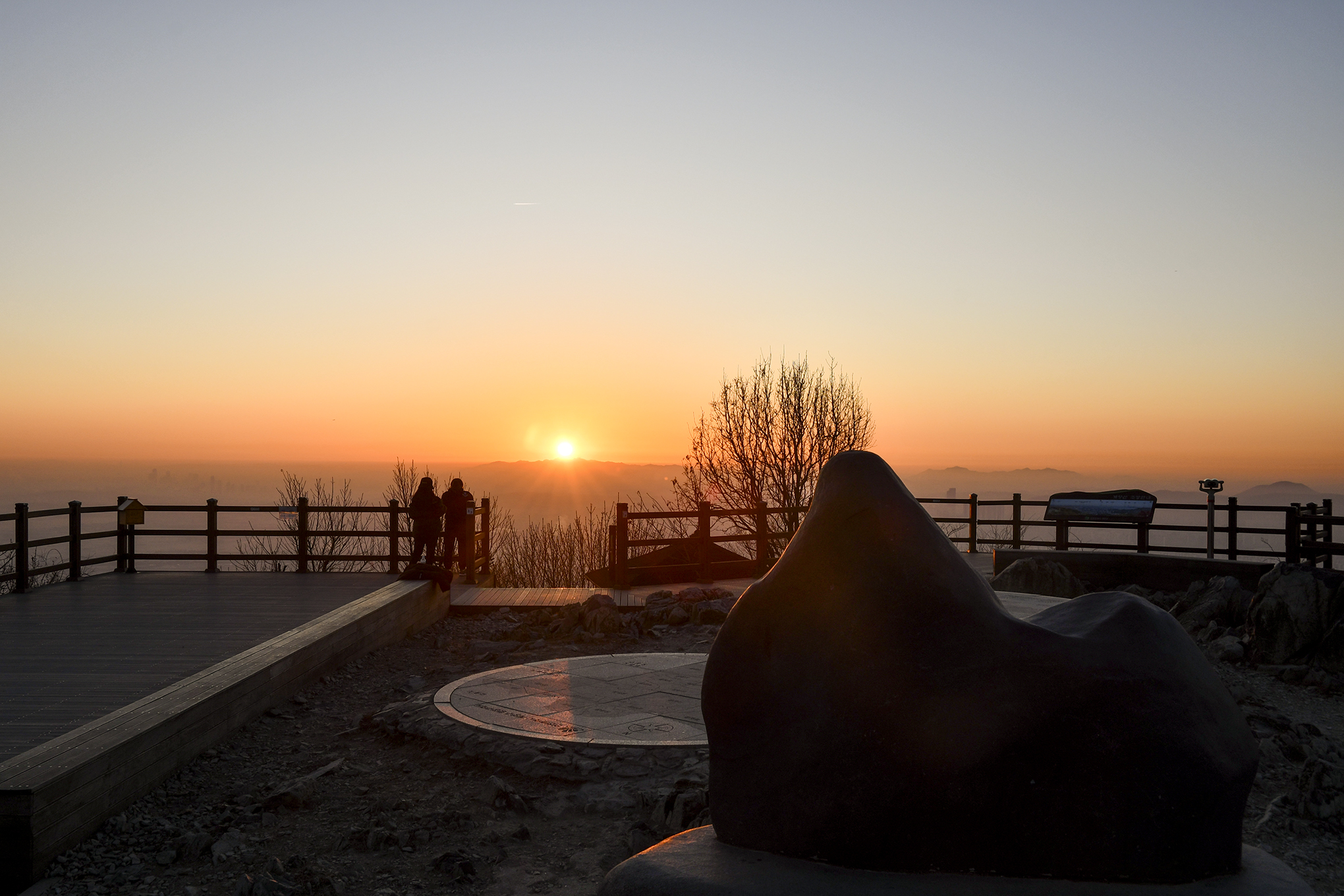 계양산 일출은 정상석을 뒷면에서 바라보는 방향으로 해가 떠오른다.
