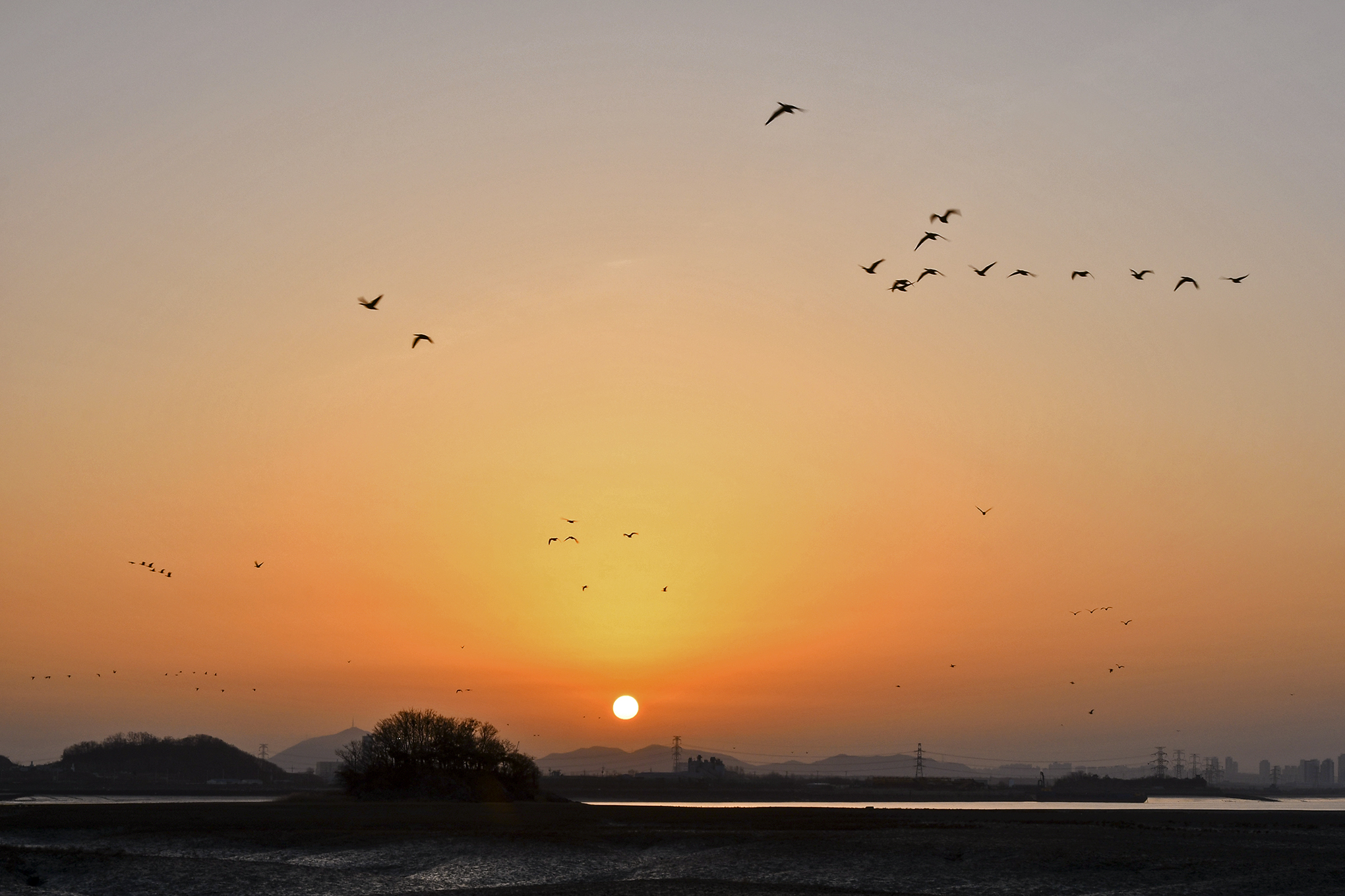 일출을 보러 온건지, 철새 탐방을 온건지,, 둘 다 할수 있으니 이보다 더 좋을수는 없다.