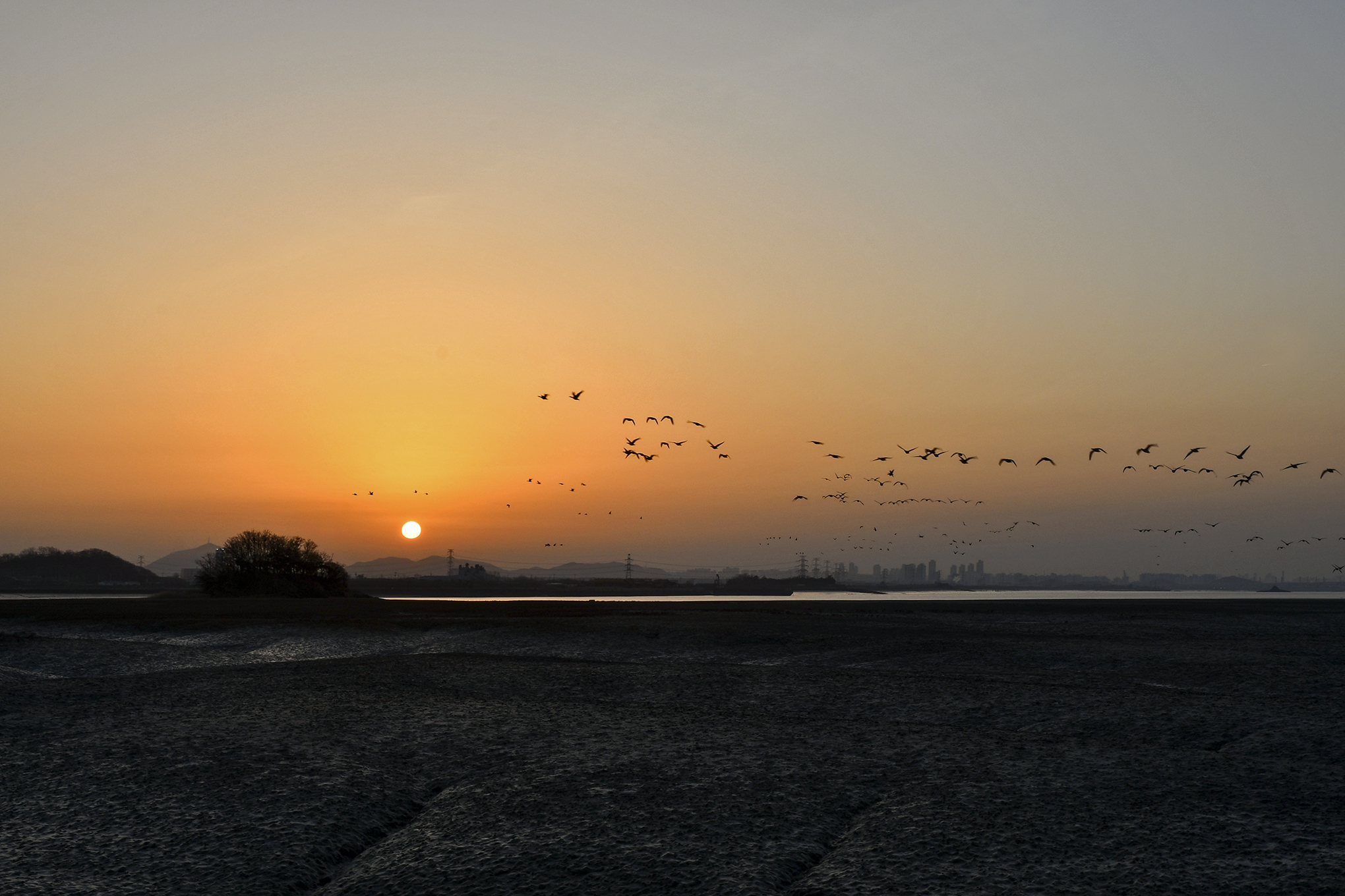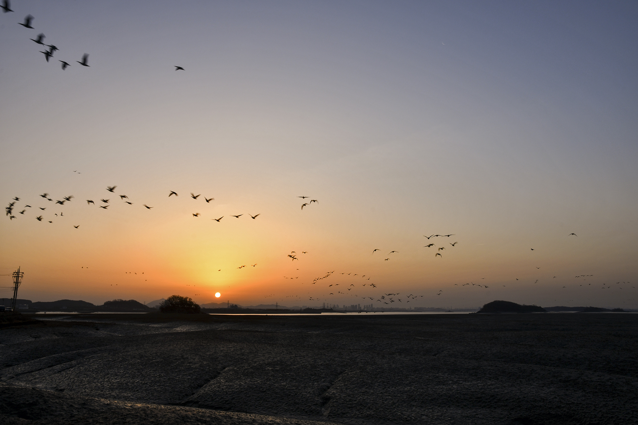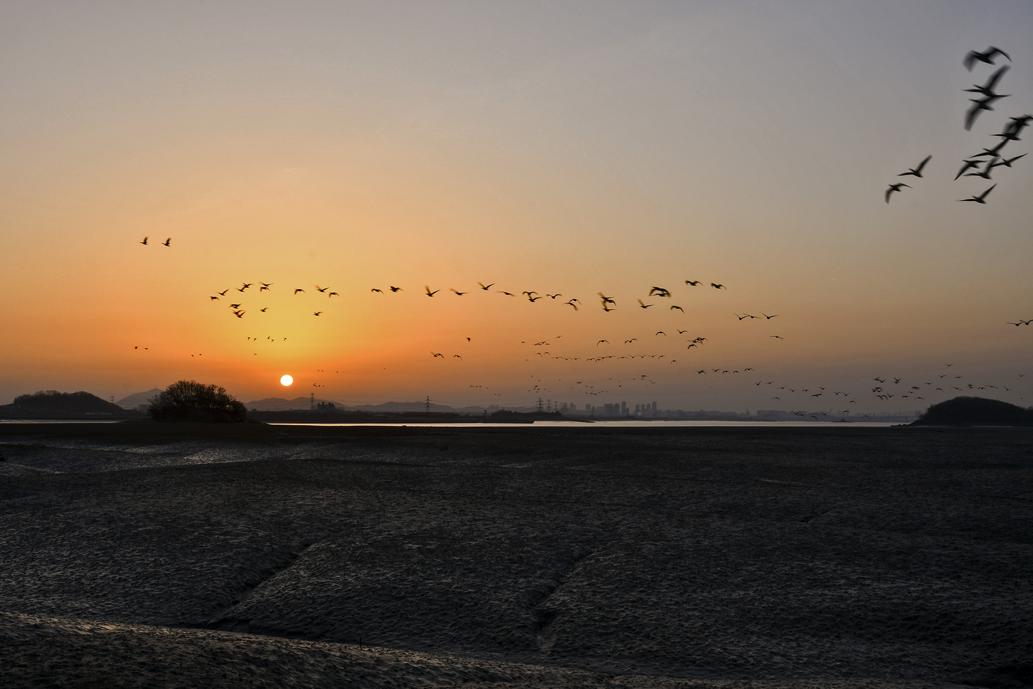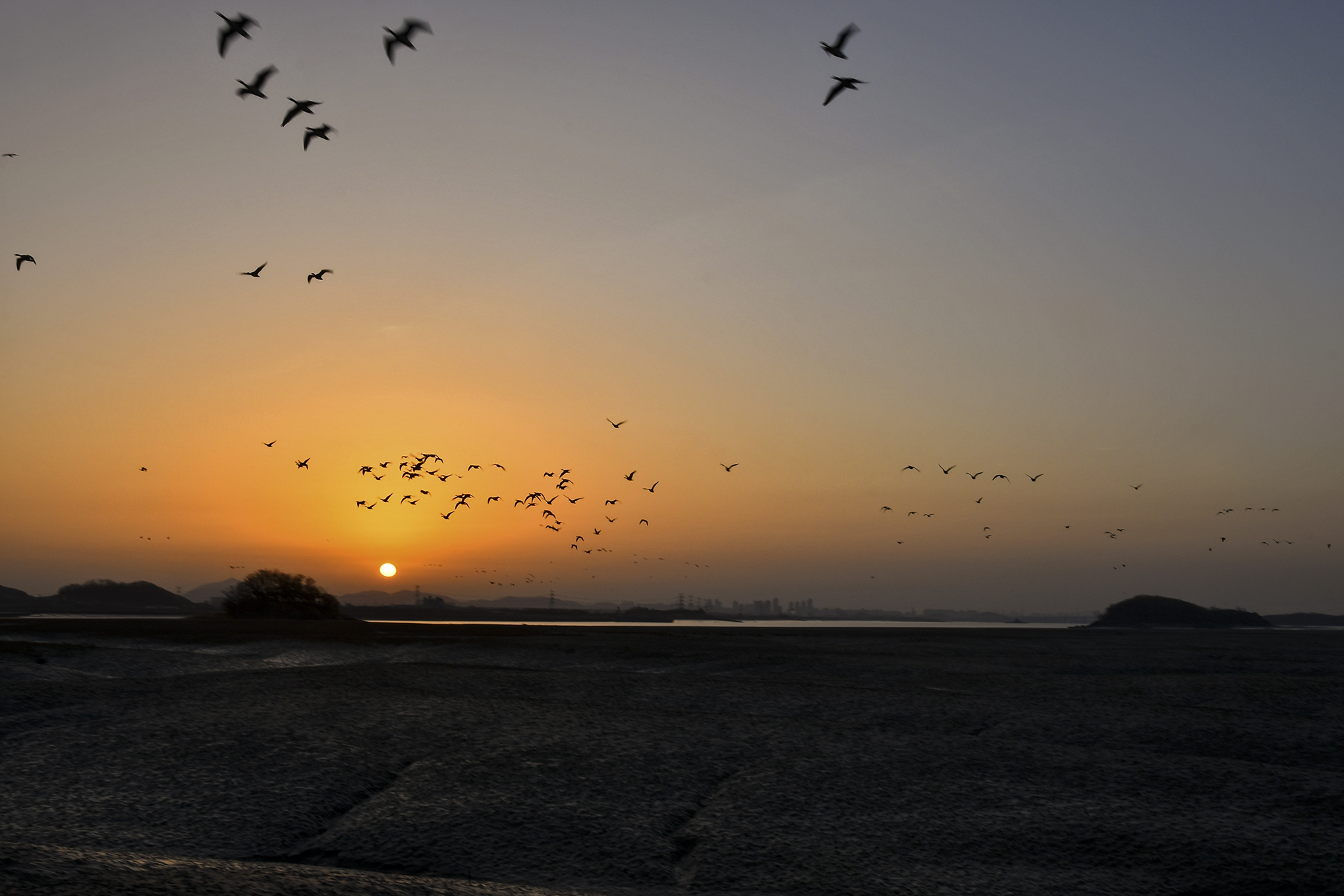 일출과 함께 철새들의 이동이라니, 급히 변경된 일정치고는 운이 제법 따르는것 같다.