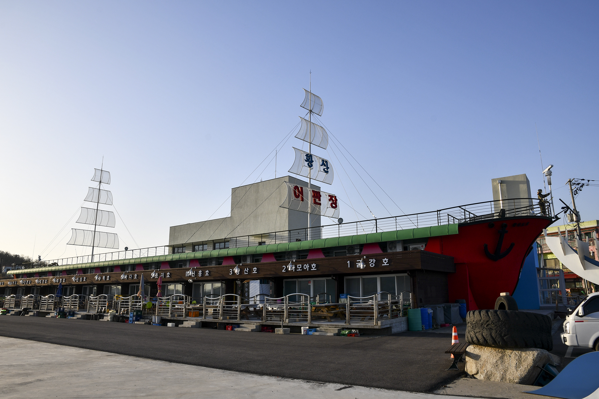 황산도 어판장에는 이렇게 많은 식당들이 줄지어 위치해 있다.