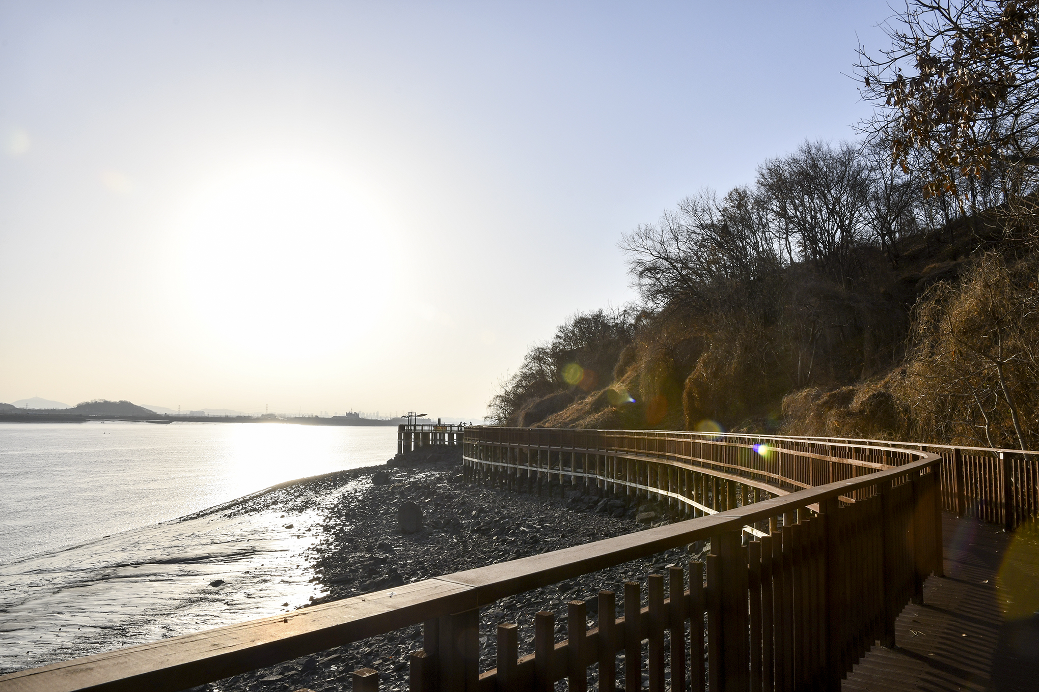 일출도 보고, 철새도 보고, 황산도항까지 20~30분정도 소요되는 해안산책로도 걸어 보았다.