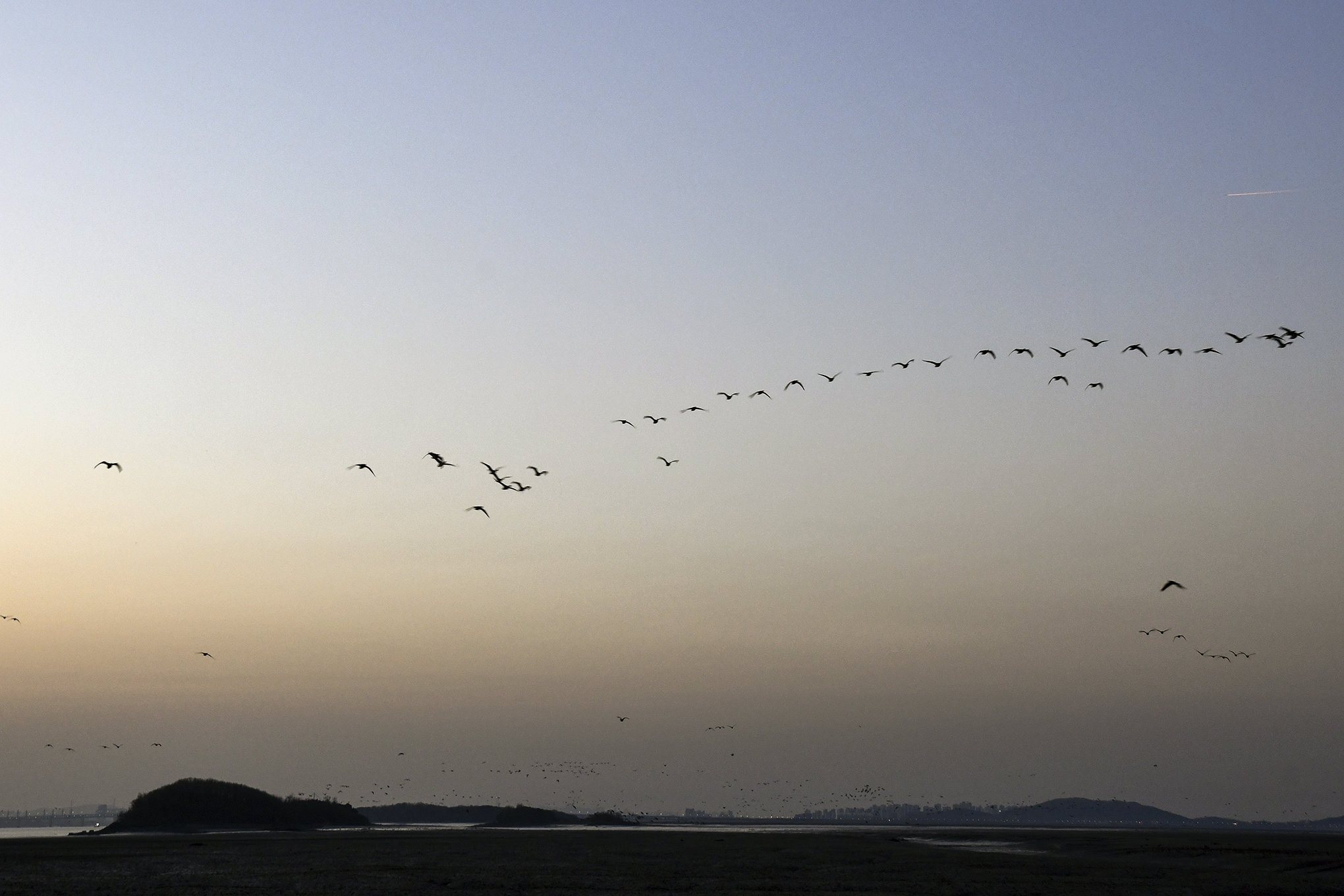마니산을 가려다가 행선지를 바꾼 탓에 일출 시간까지 지루한 기다림이 이어지던 참에 마침 쇠기러기 떼가 고요한 아침을 깨워준다.