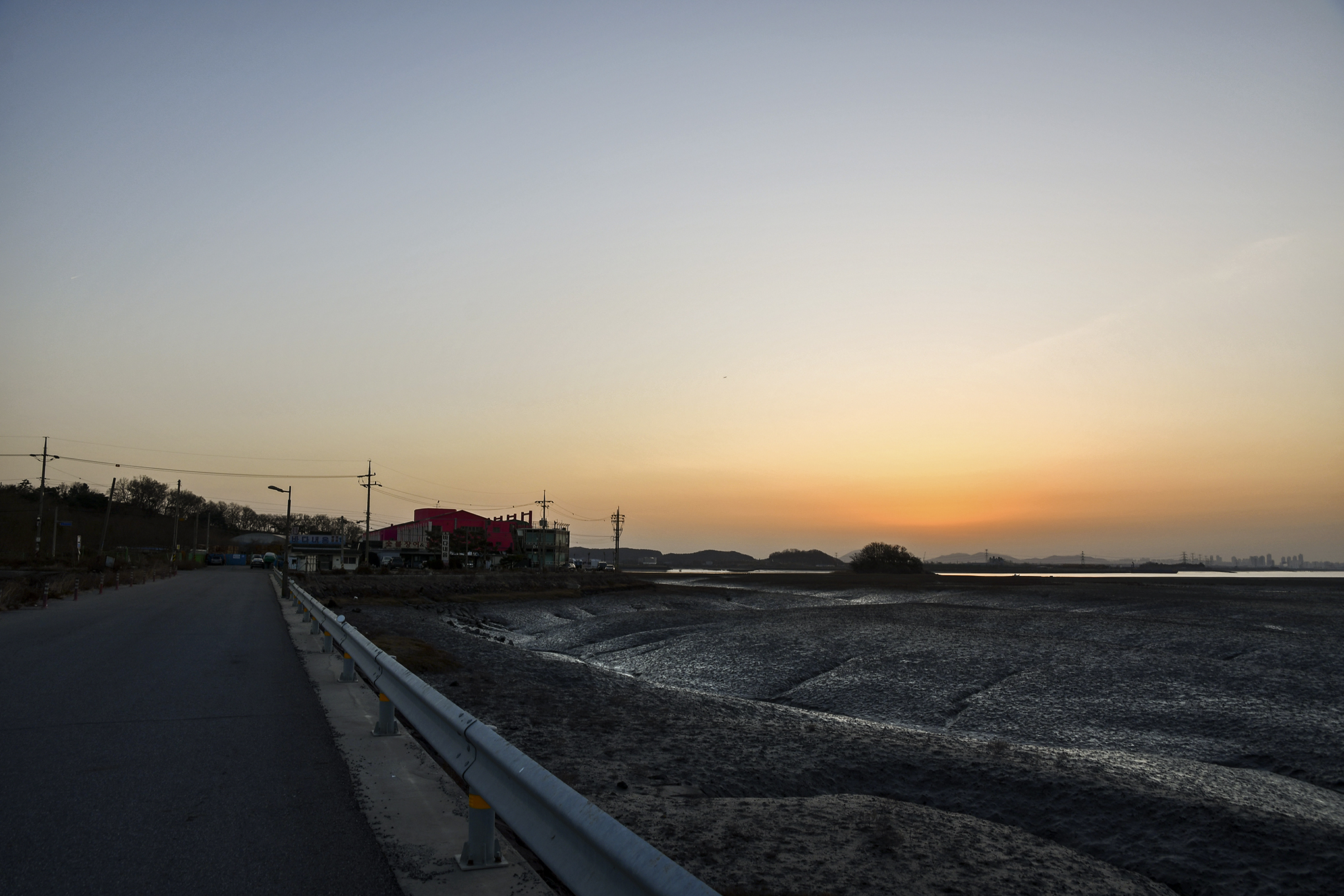 황산도의 주요 촬영장소는 갯벌둑에서 바라보는 저 작은 섬을 위주로 일출 촬영이 이루어지고, 이후에는 길을 따라 해안산책길을 걸어 황산도항까지 아침 풍경을 담아볼 예정이다.
