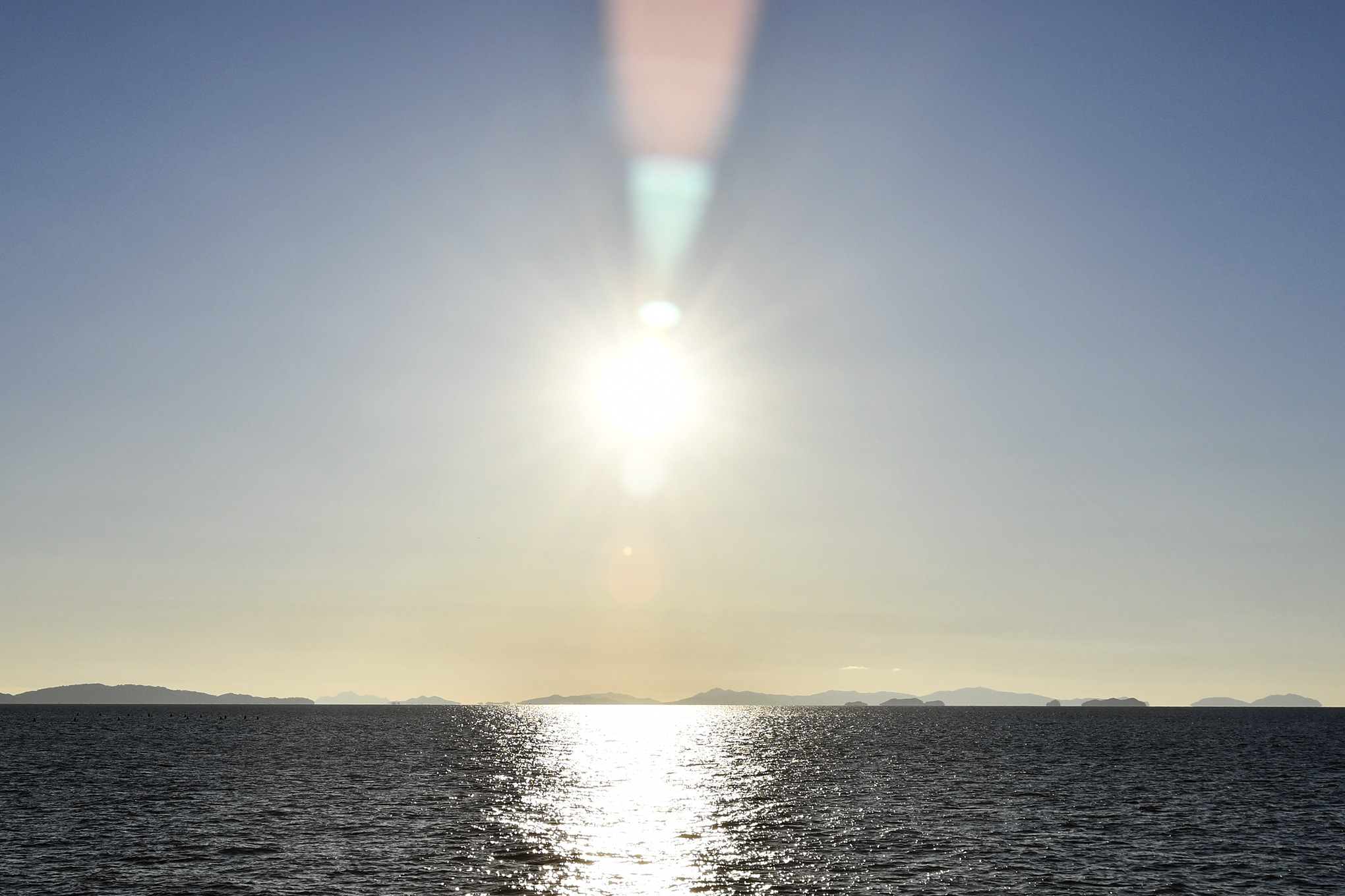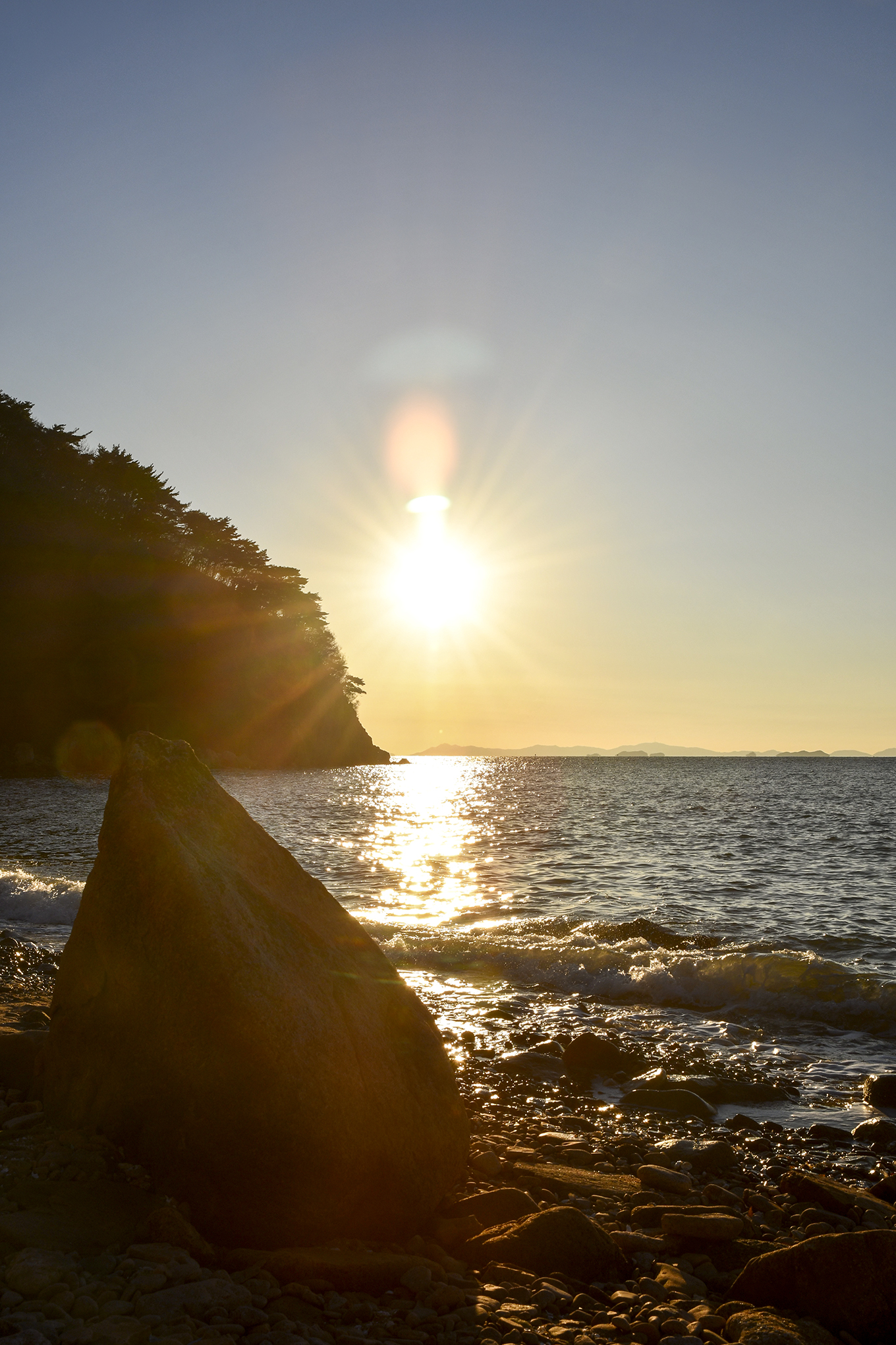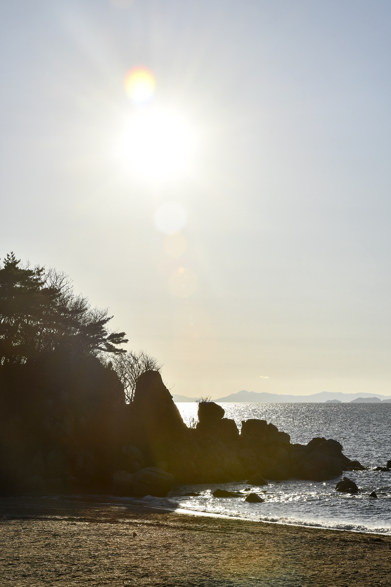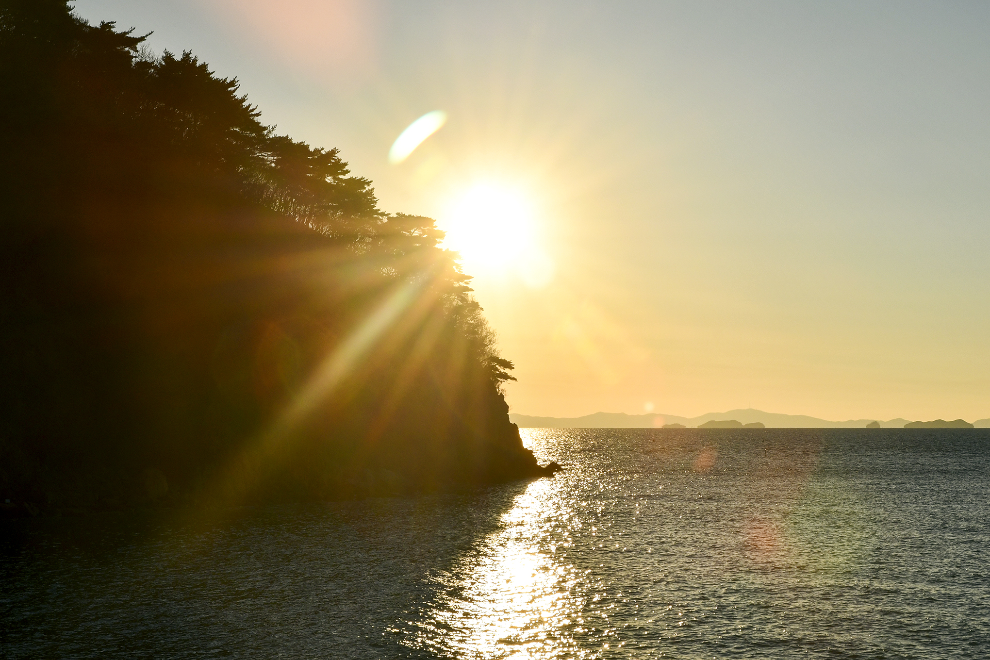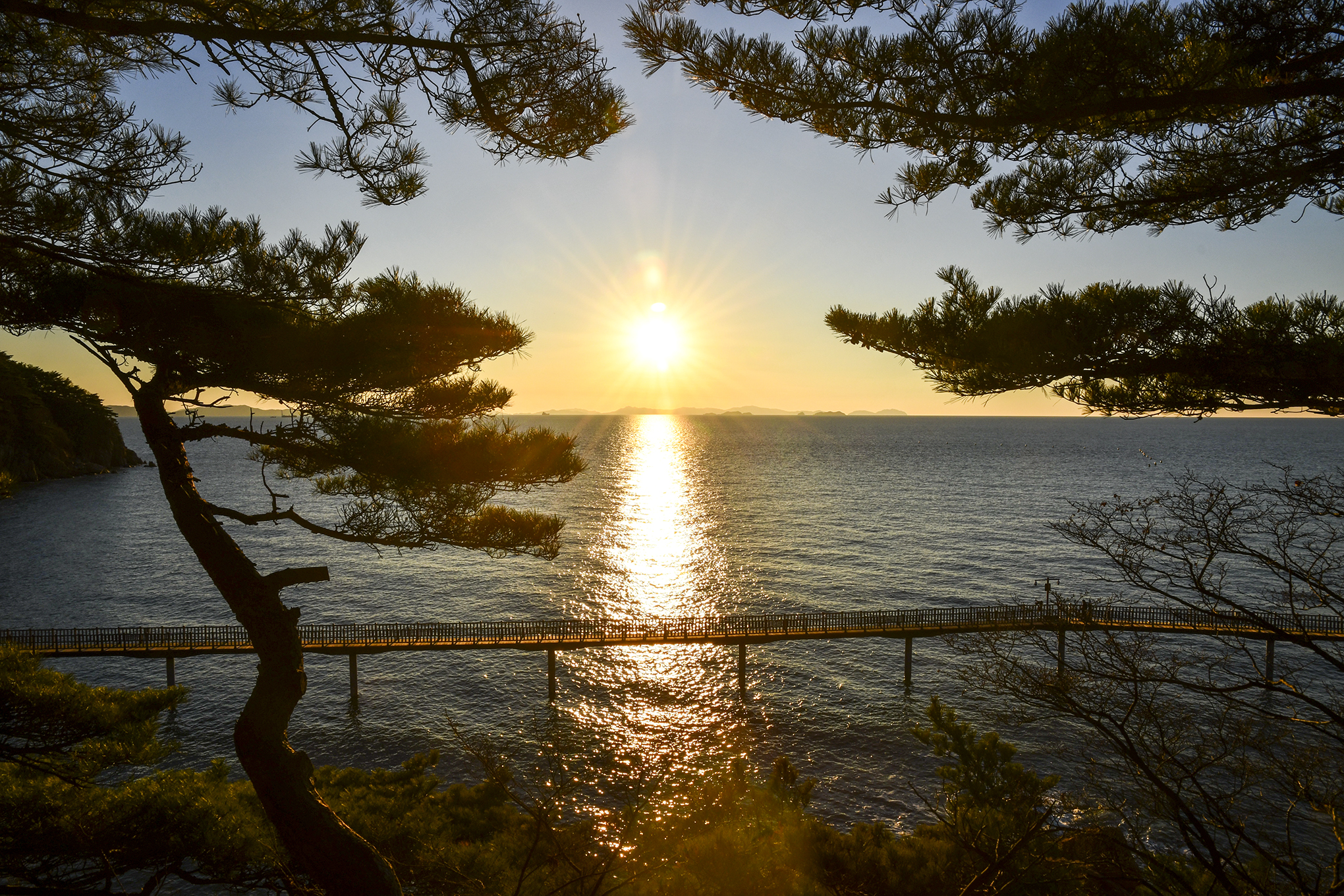 숲길로 들어서는 지점에서는 좌측의 섬 일부가 해넘이에 간섭하는 일몰각이다.