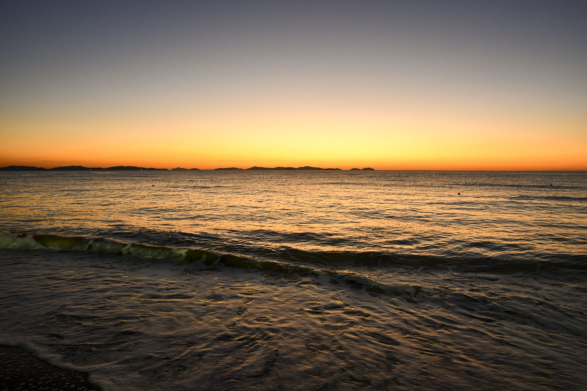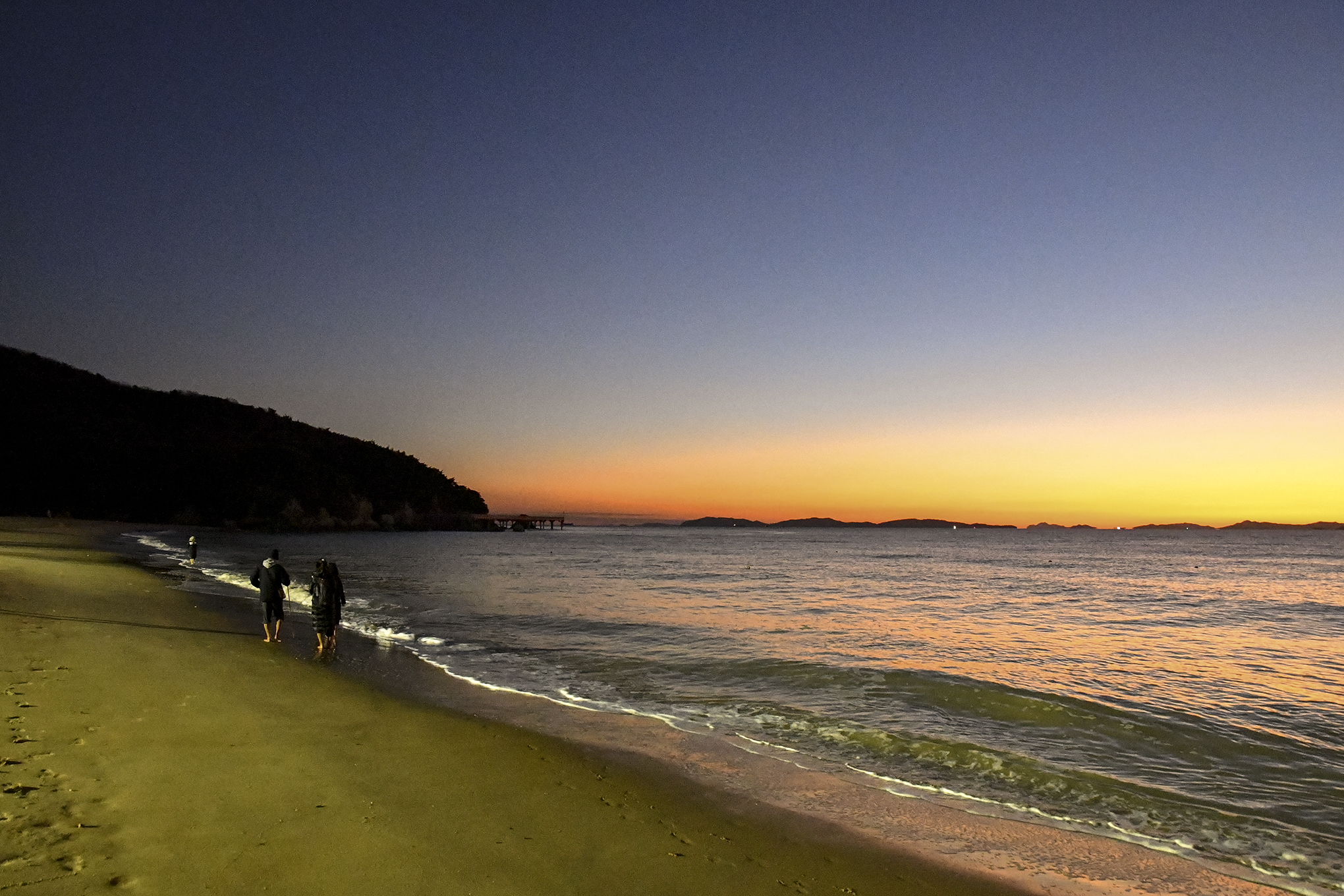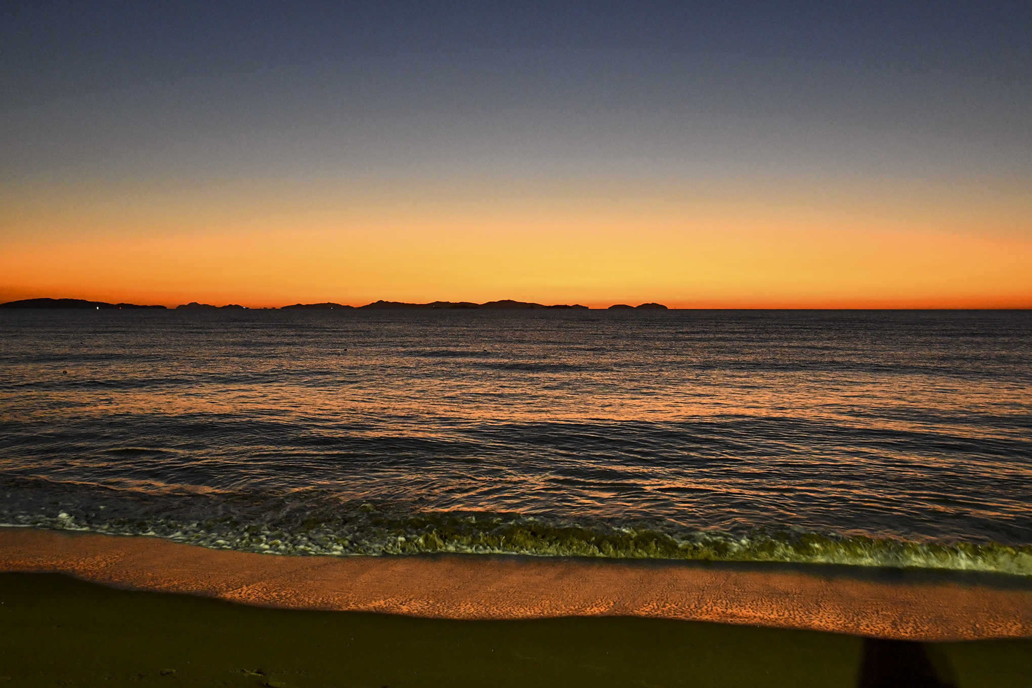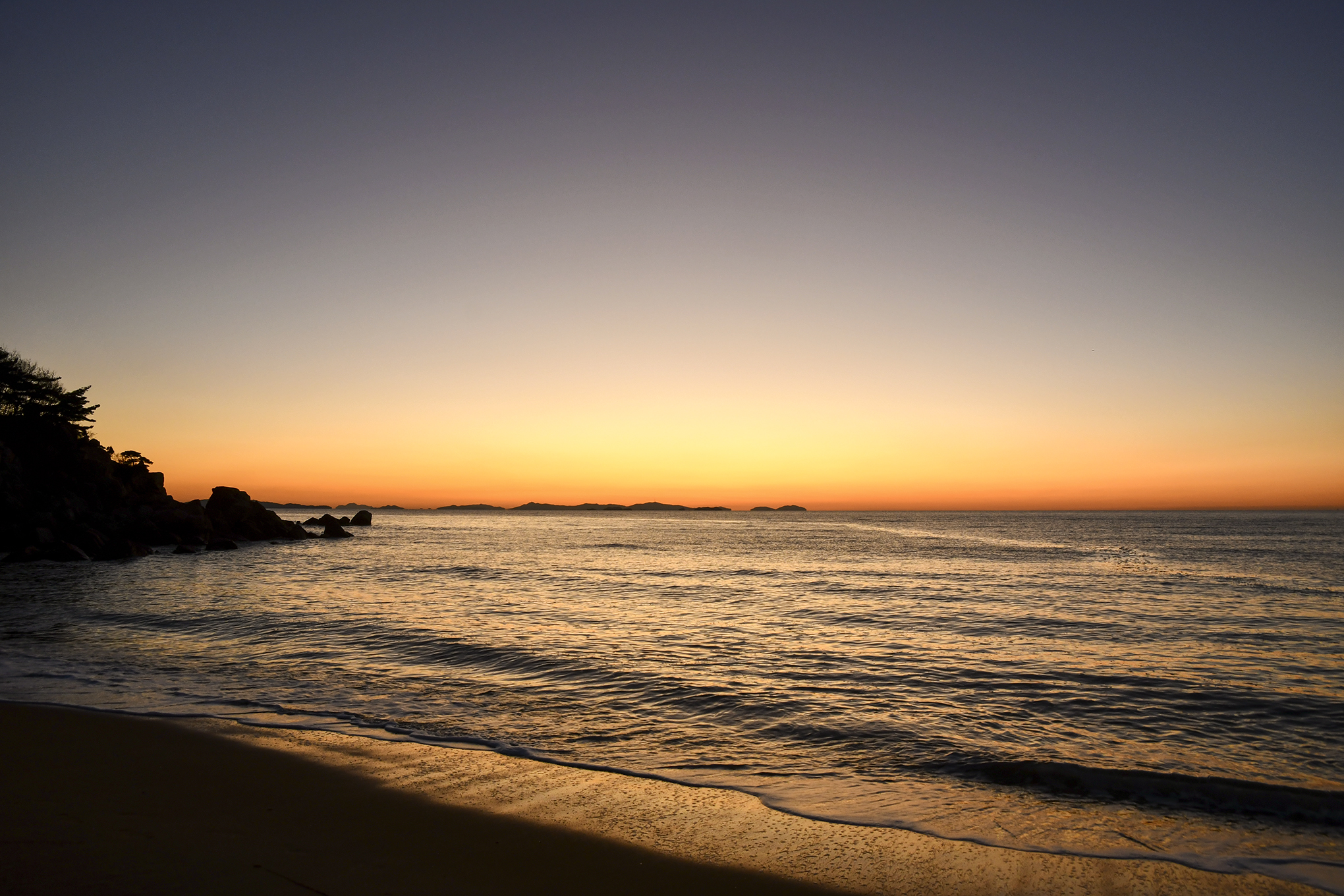 하늘도, 바다도, 해변도 온통 아름답게 물드는 신비한 빛의 시간이다.