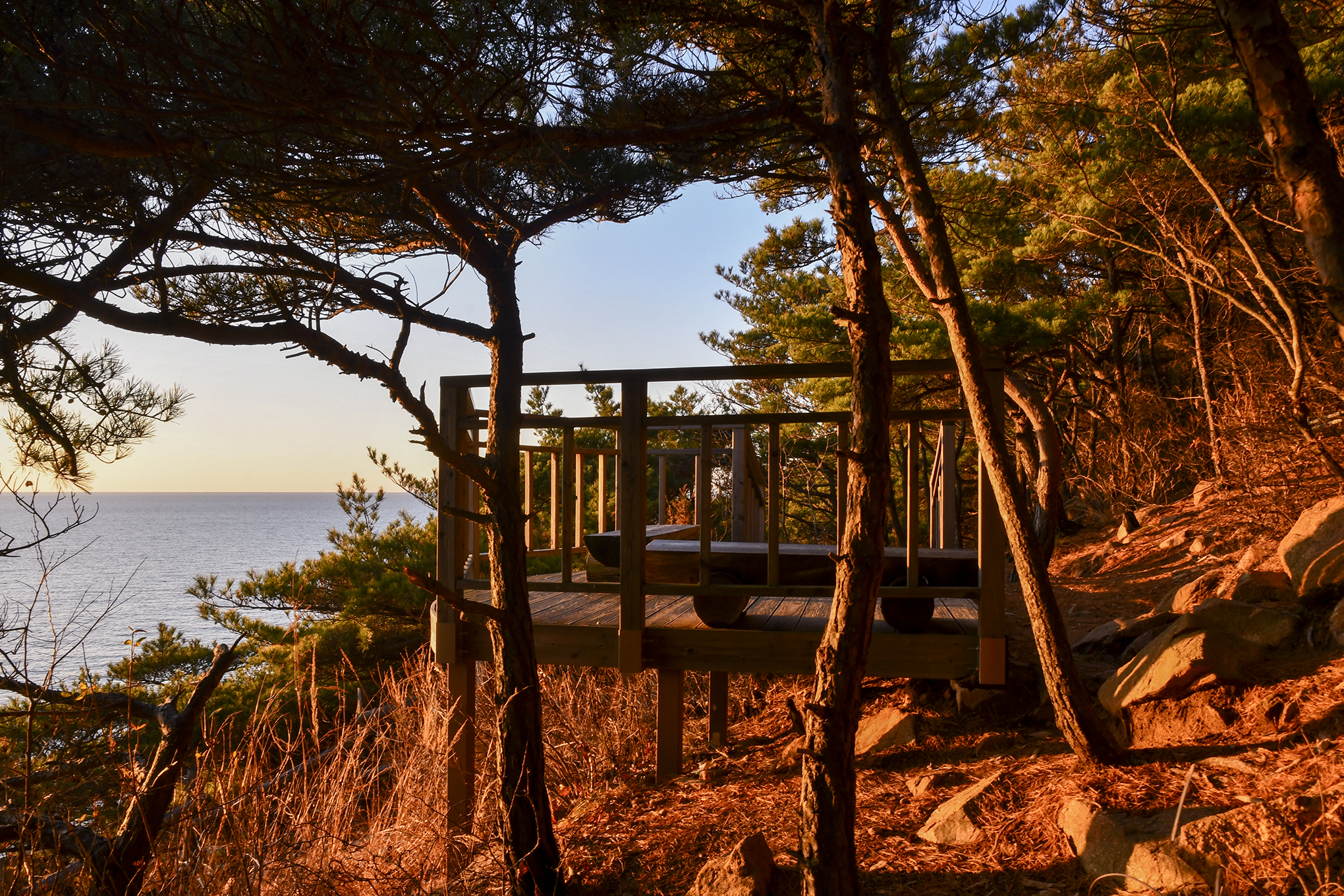 데크로 만들어진 전망대로 통나무 의자가 있어 앉아서 무의도 앞바다를 막힘없이 조망할 수 있다.