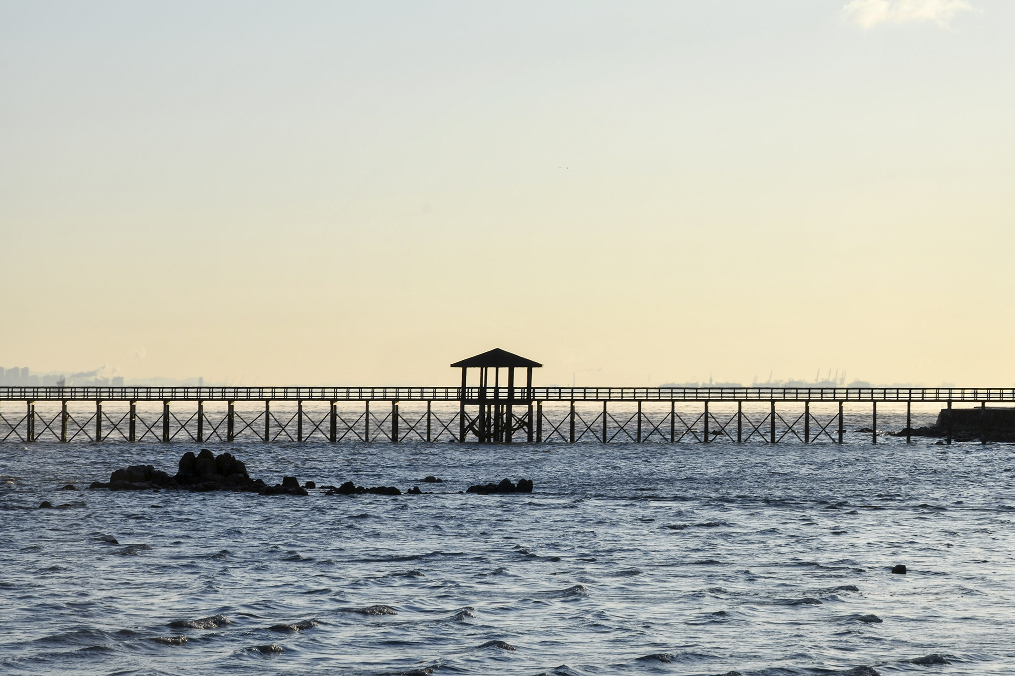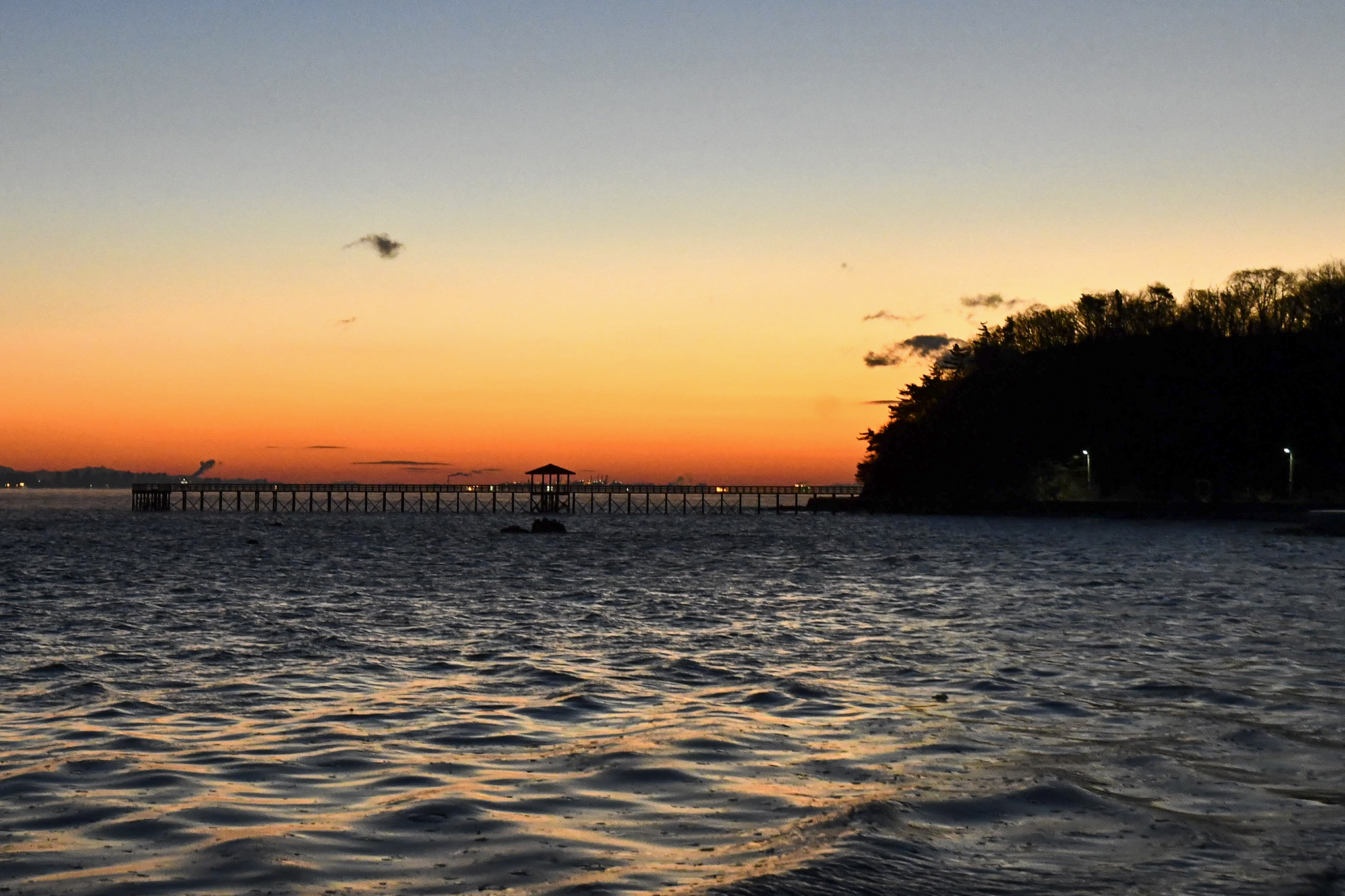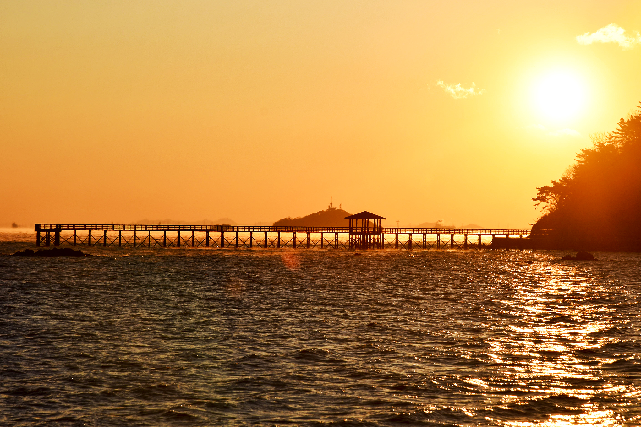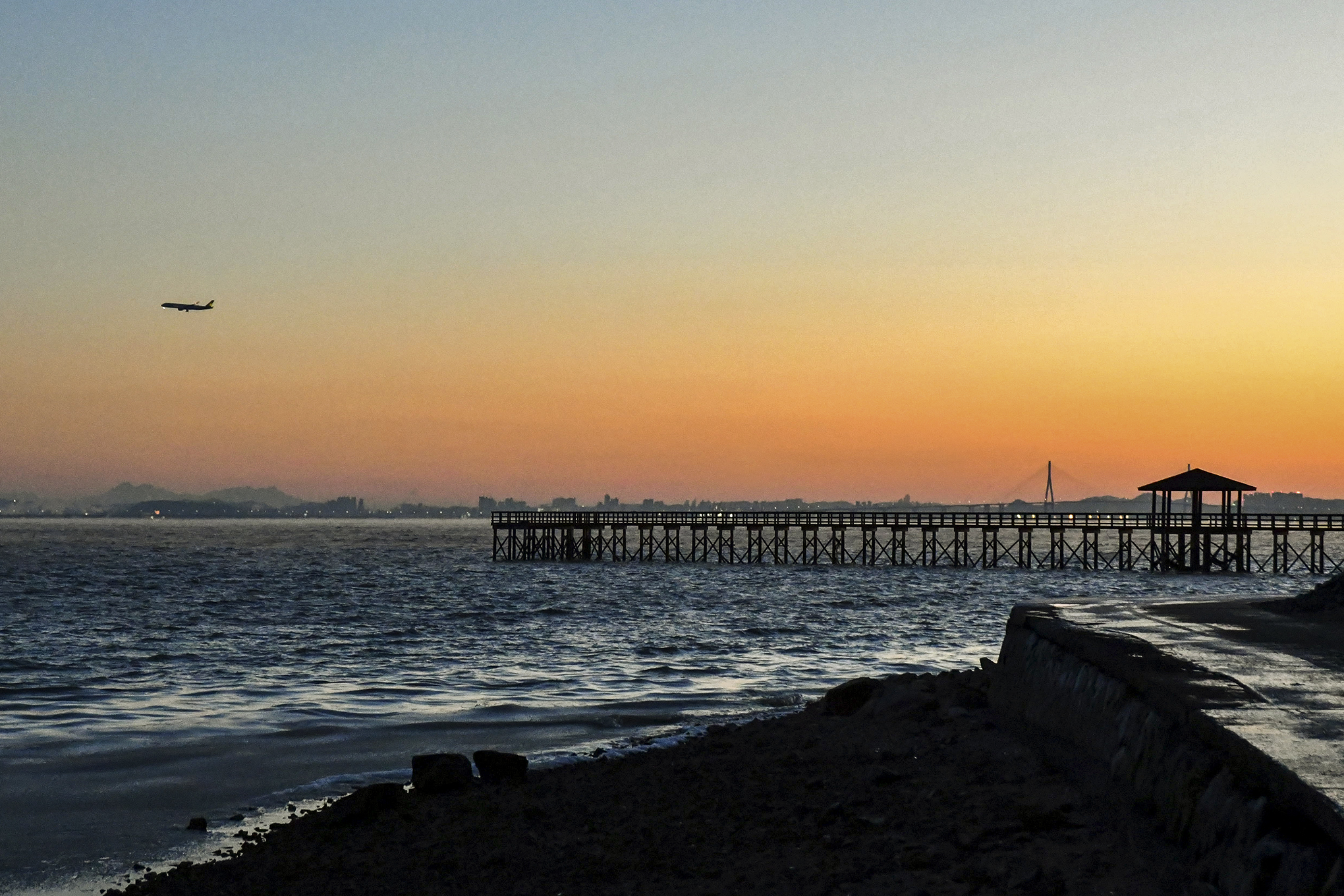 해안방조제를 따라 더 뒤로 물러나 선착장과 전망데크를 함께 담아보자.