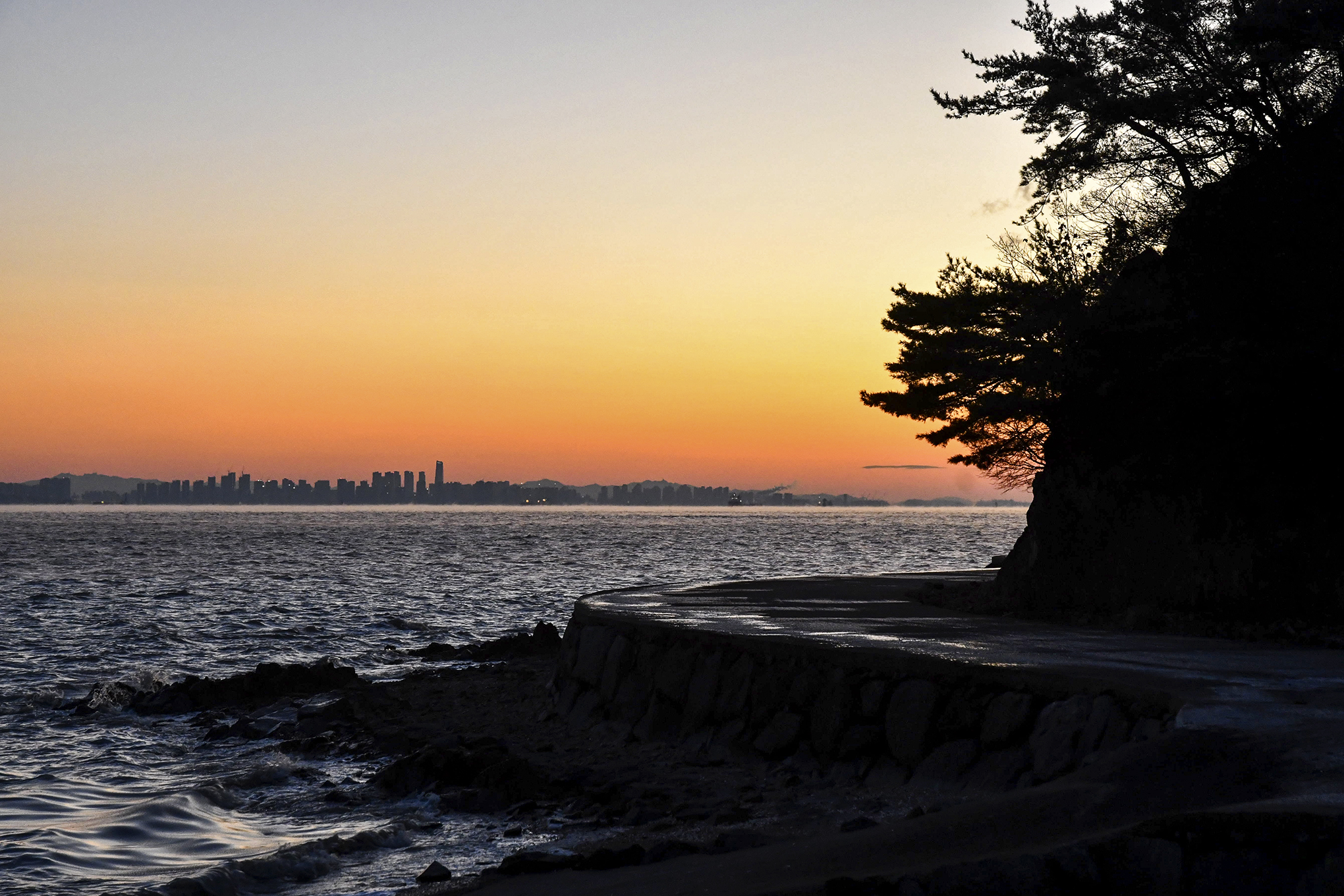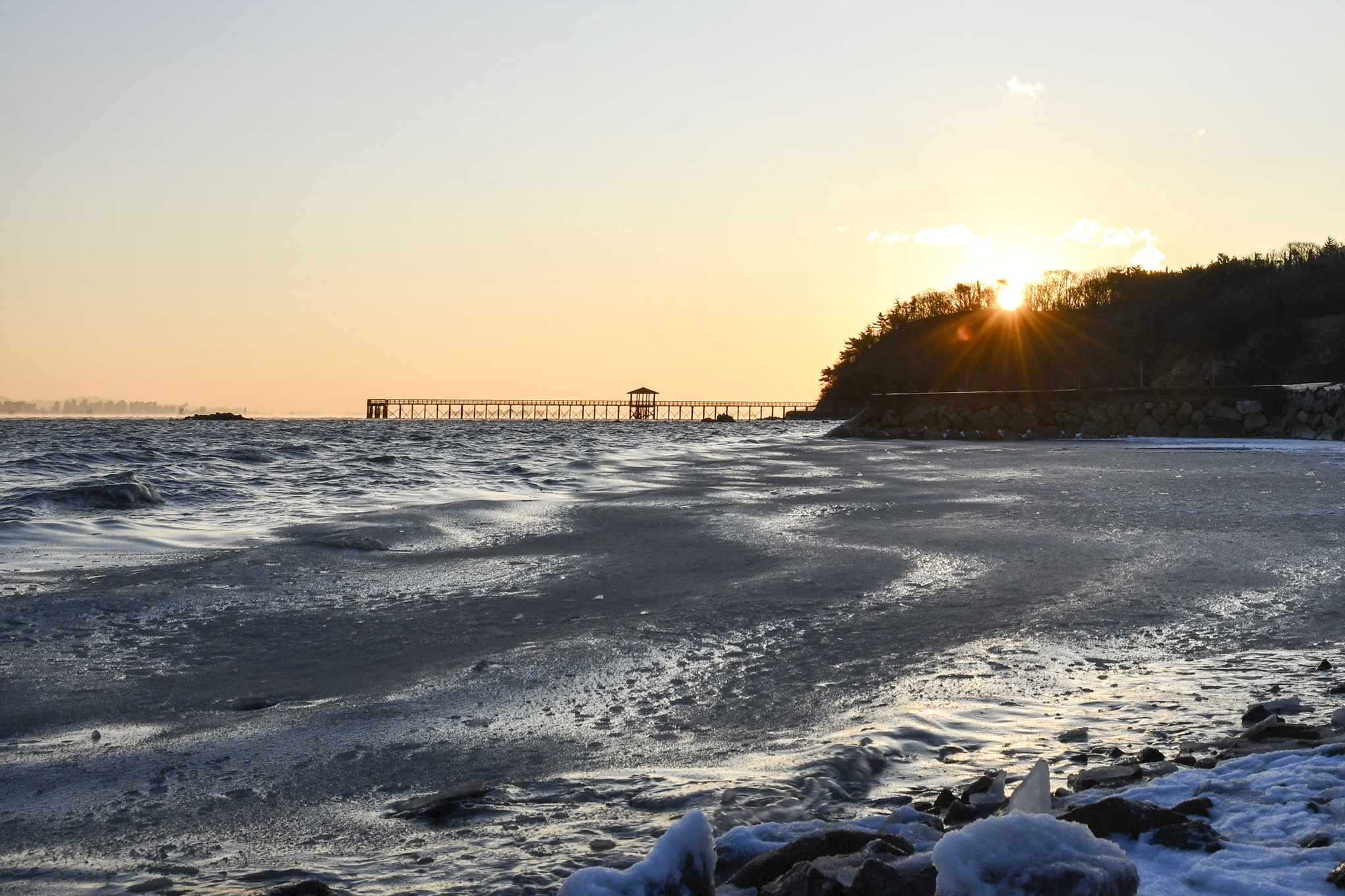 바람이 너무 세 물결마저 춤을 추고, 해안 가까이로는 서서히 얼기 시작하는 중이다.