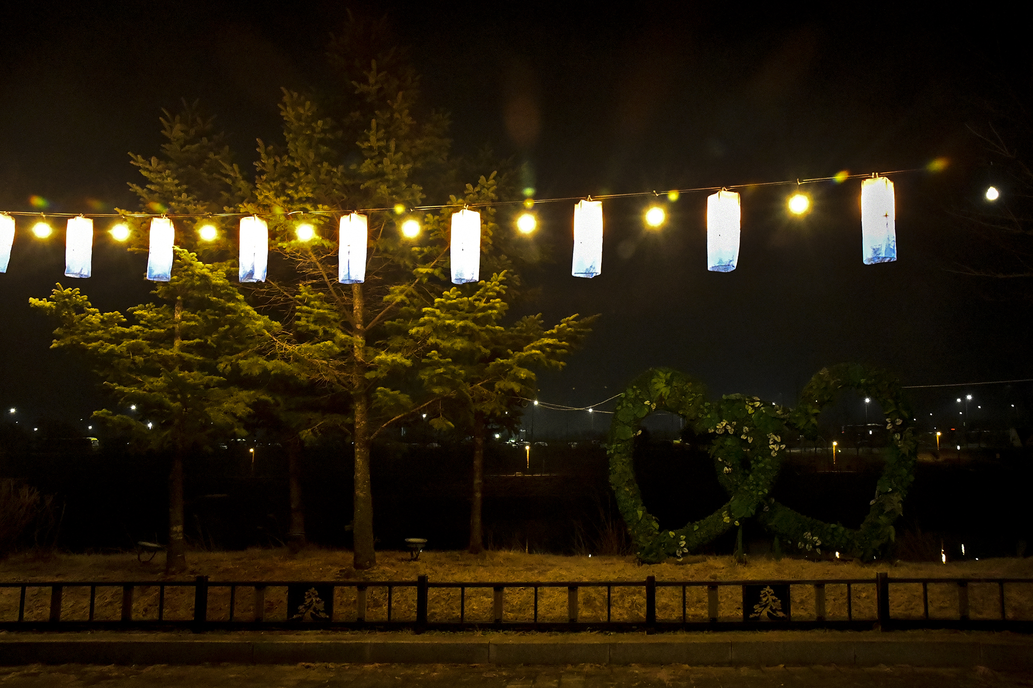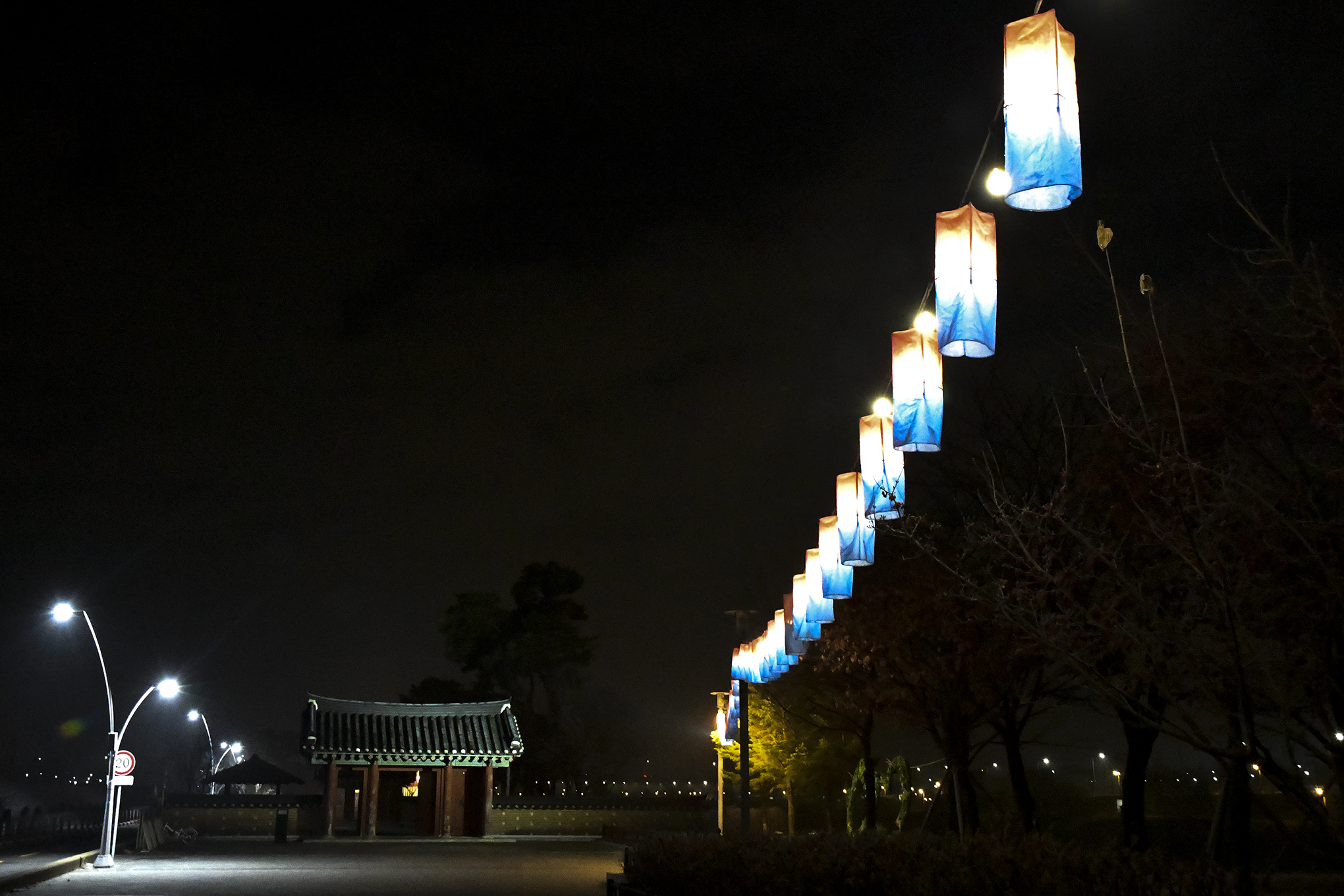 계양대교를 건너 수향원에 도착, 청사초롱이 불을 밝히고 있다.