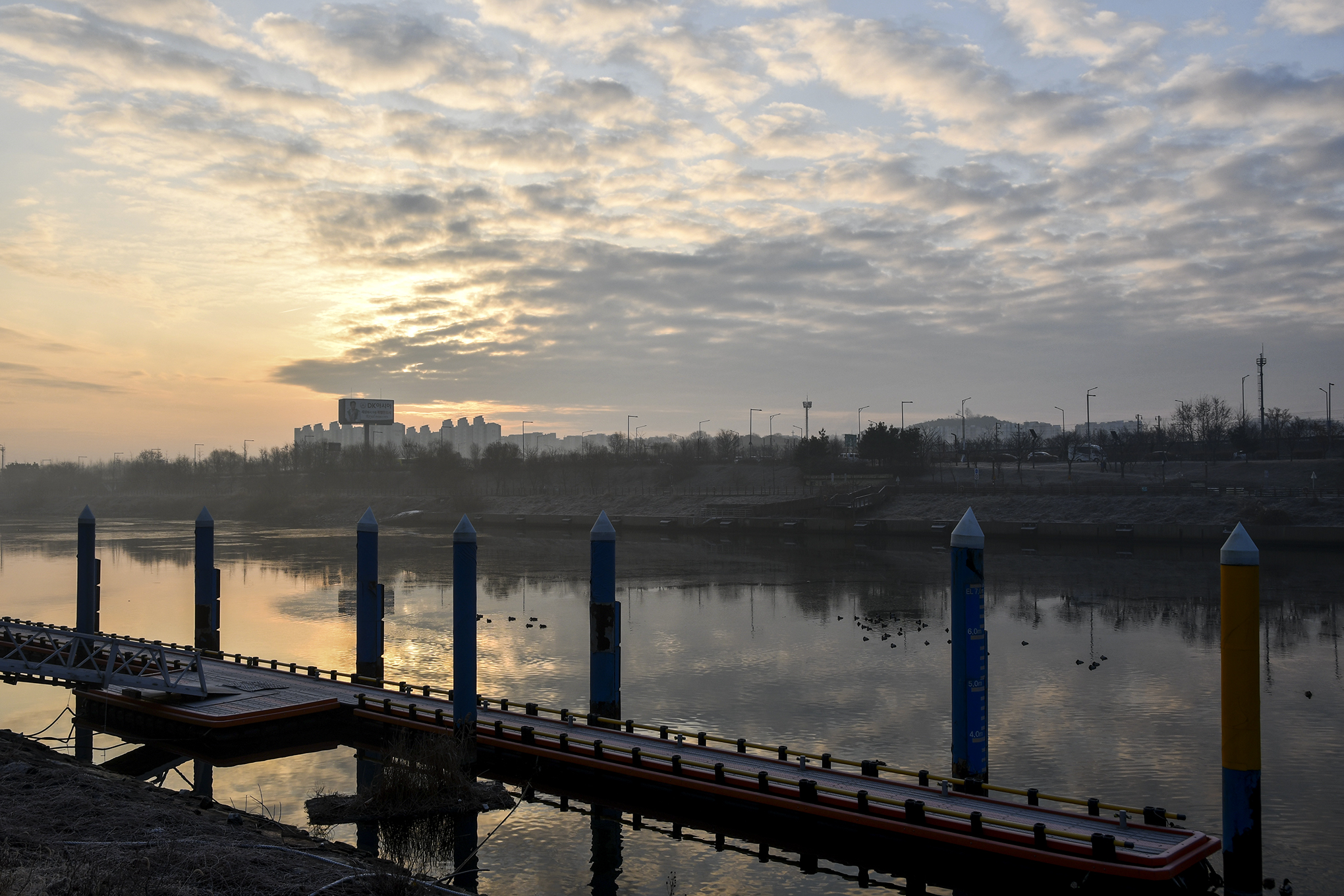 첫날부터 멀리는 못가고 가까운 경인 아라뱃길 수향원에서 해돋이로 새해를 맞이한다.