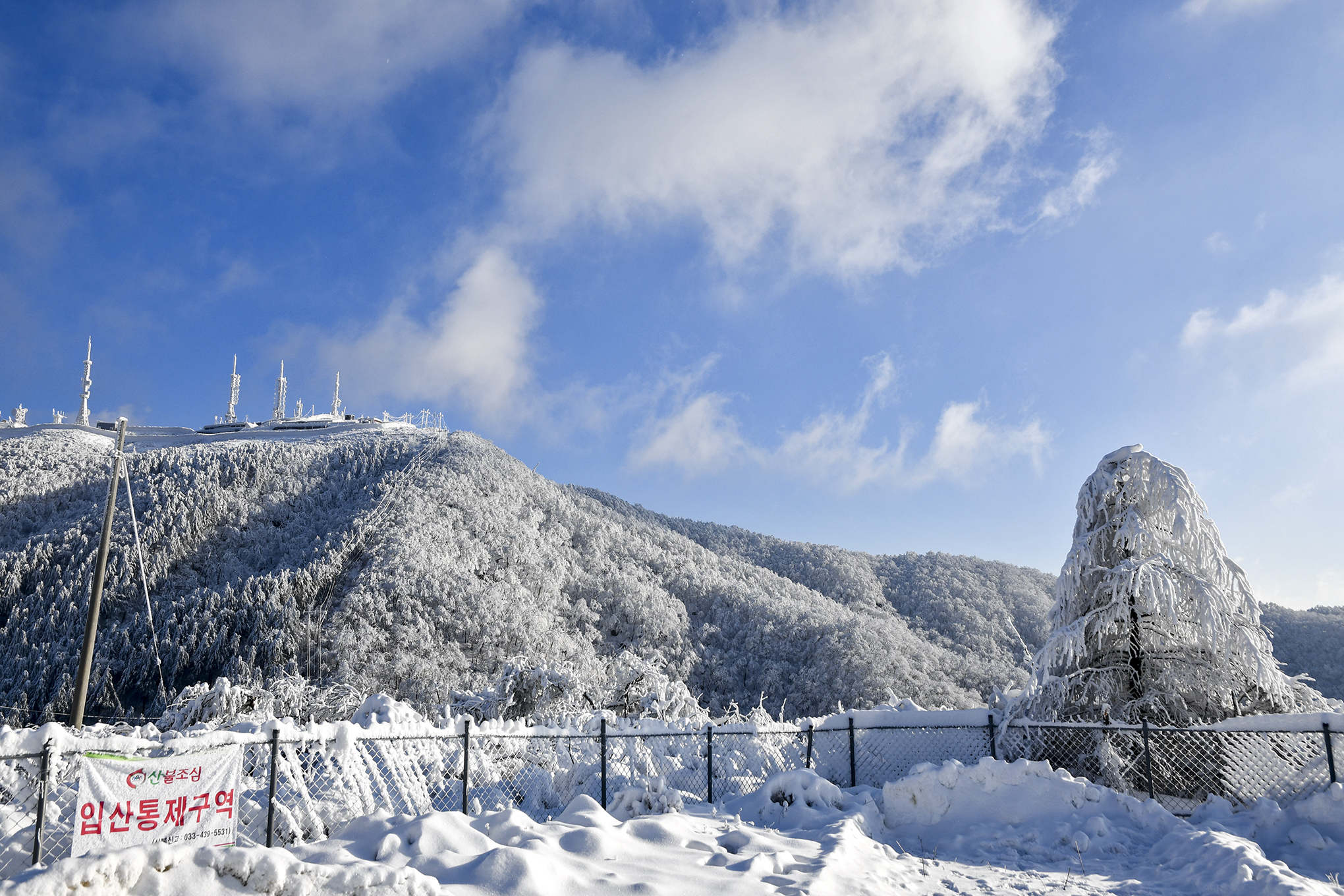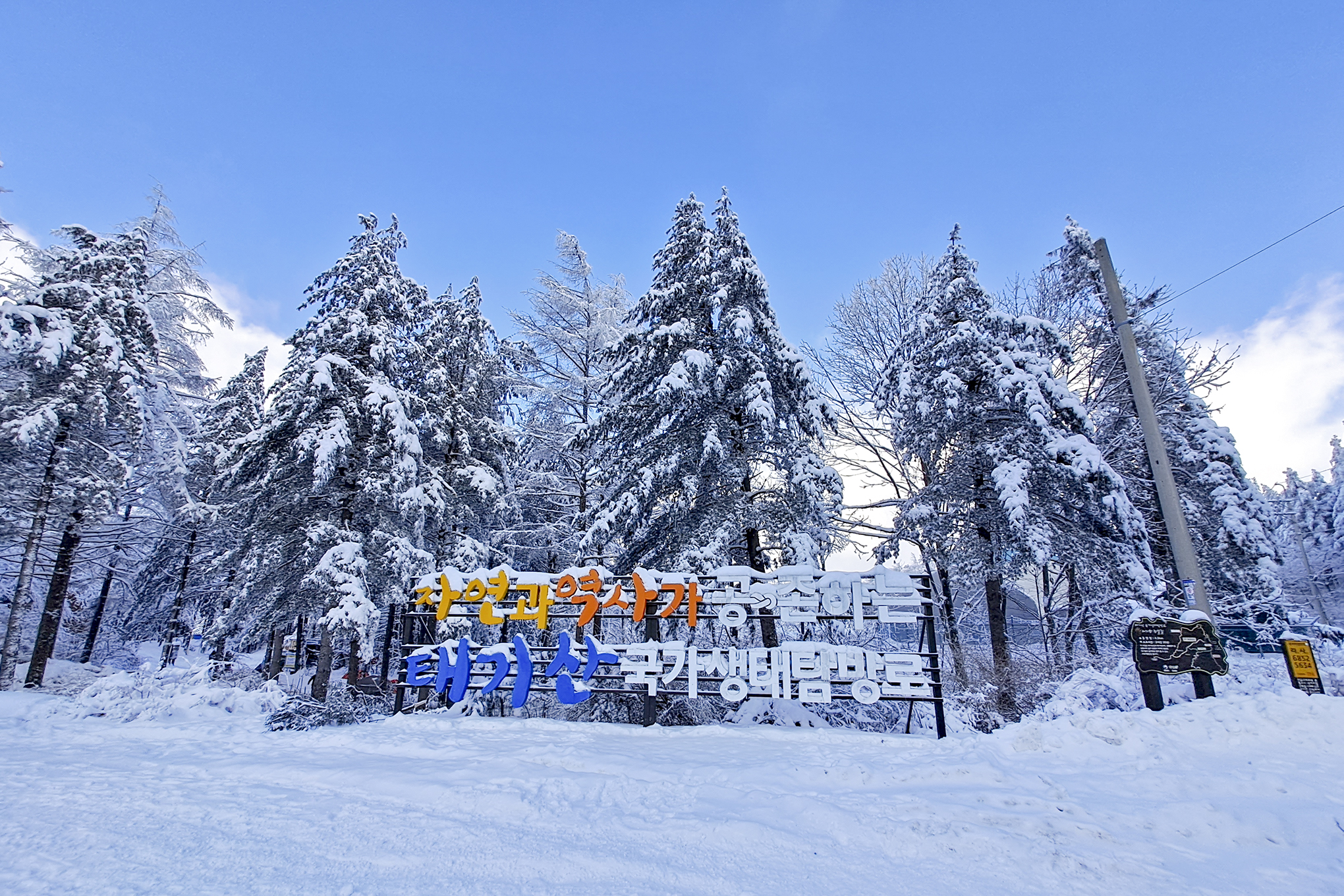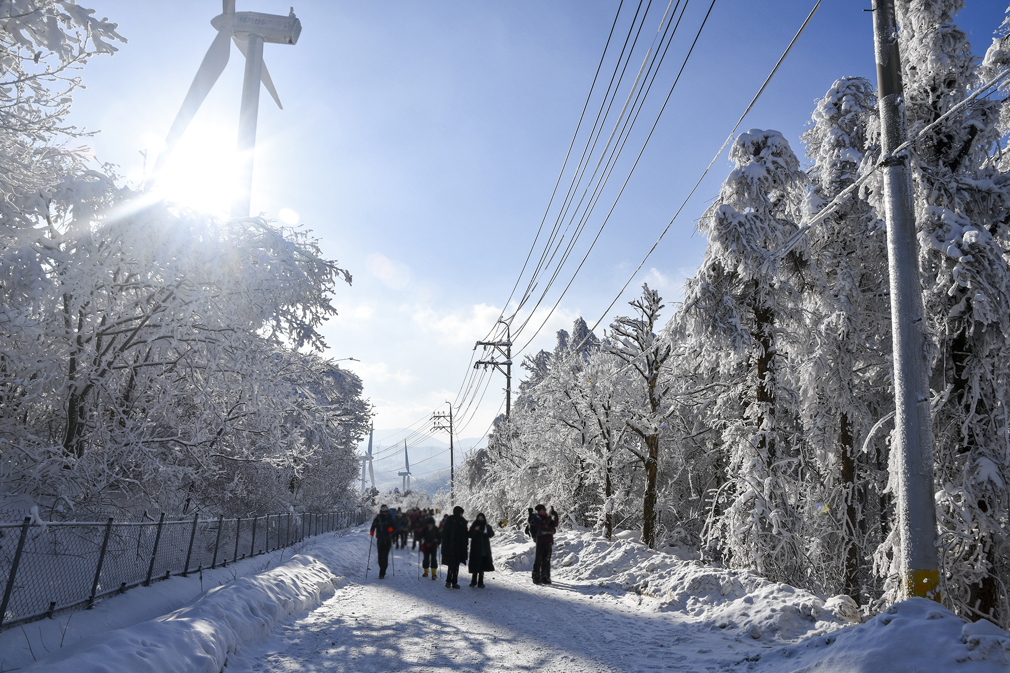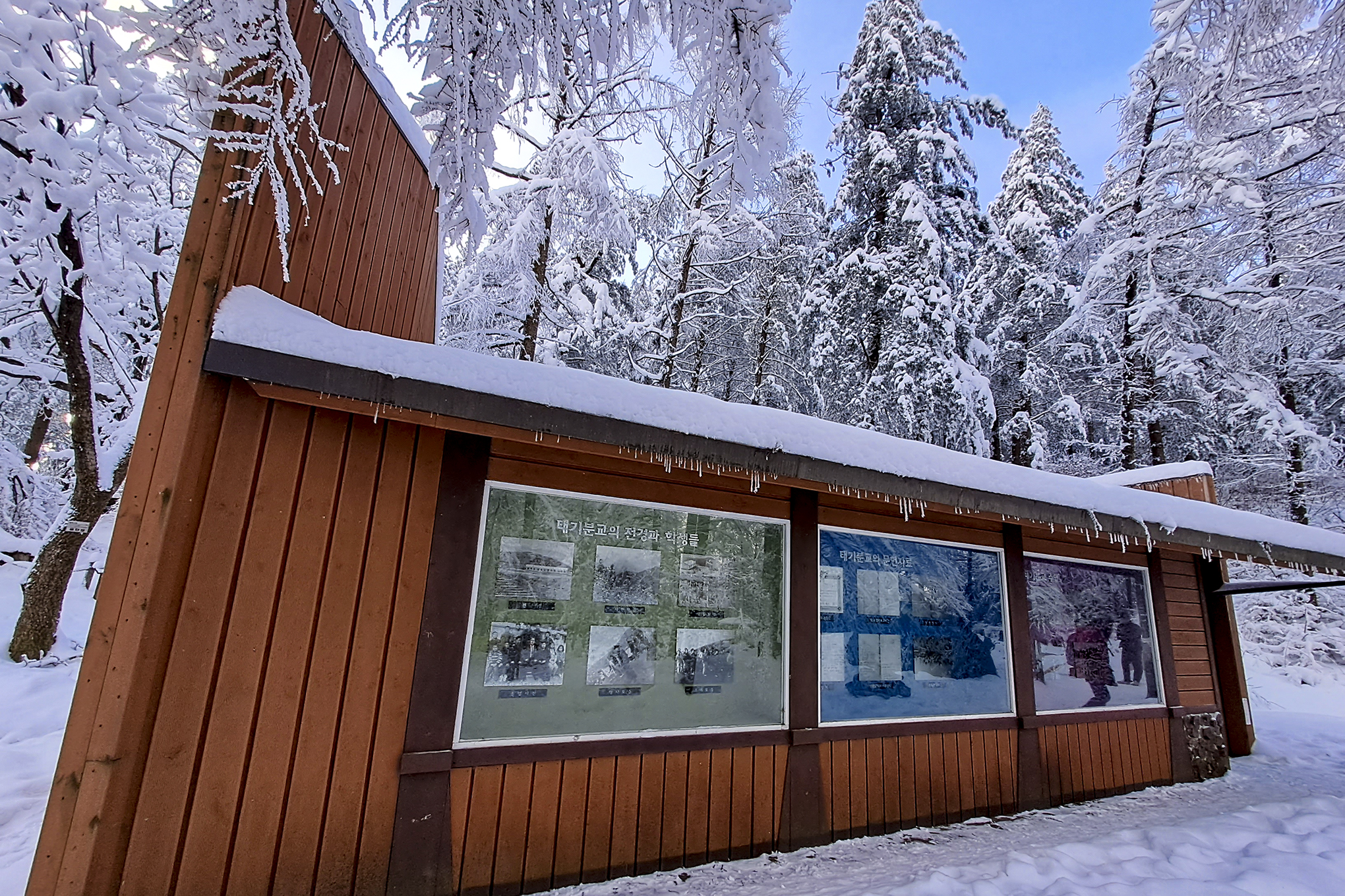 꽁꽁 얼어붙은 나무들은 내린 눈에 그 무게를 이기지 못하고 휘어지고 부러져 있을 정도니 태기산의 겨울을 짐작하고도 남는다.