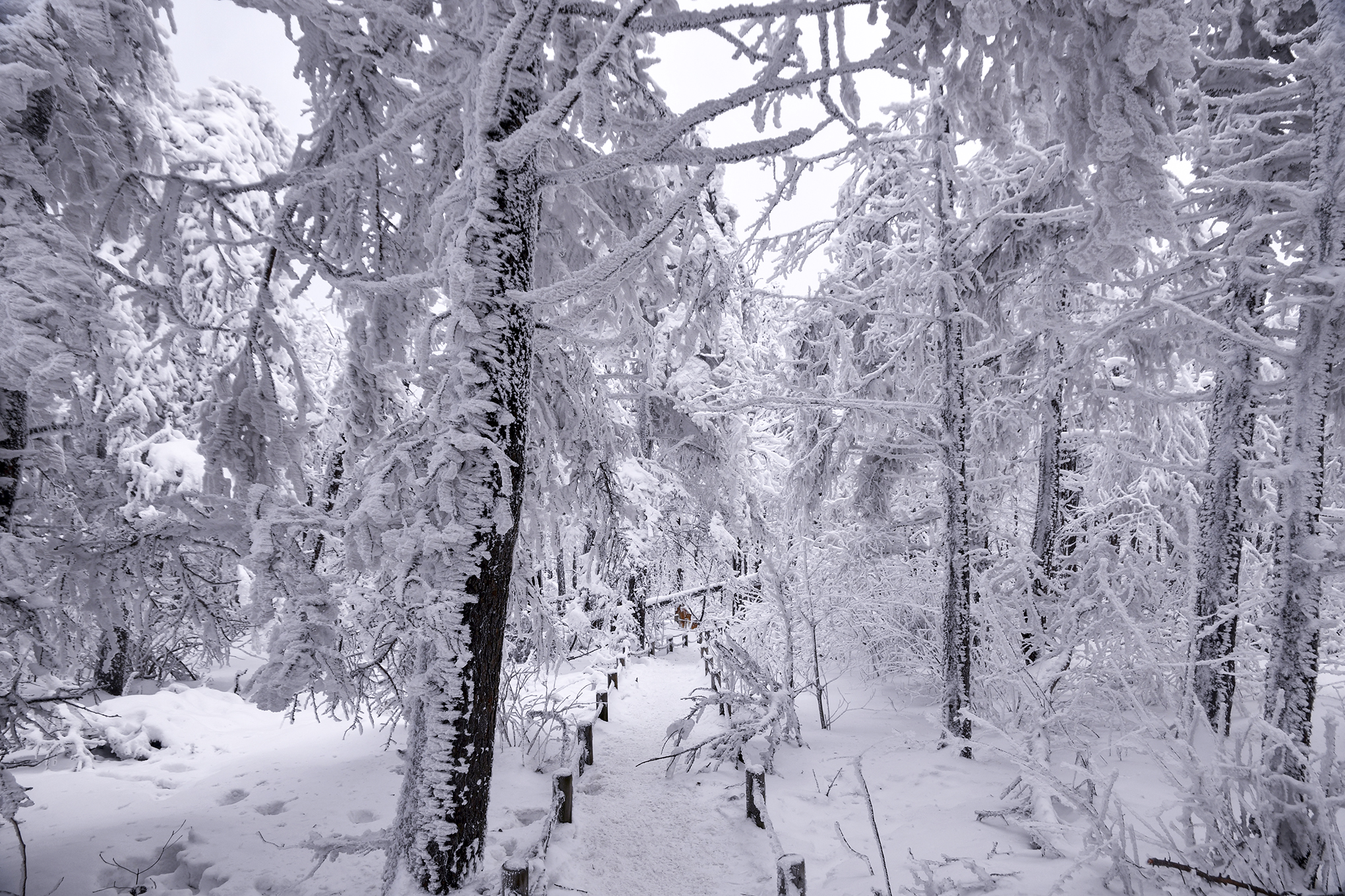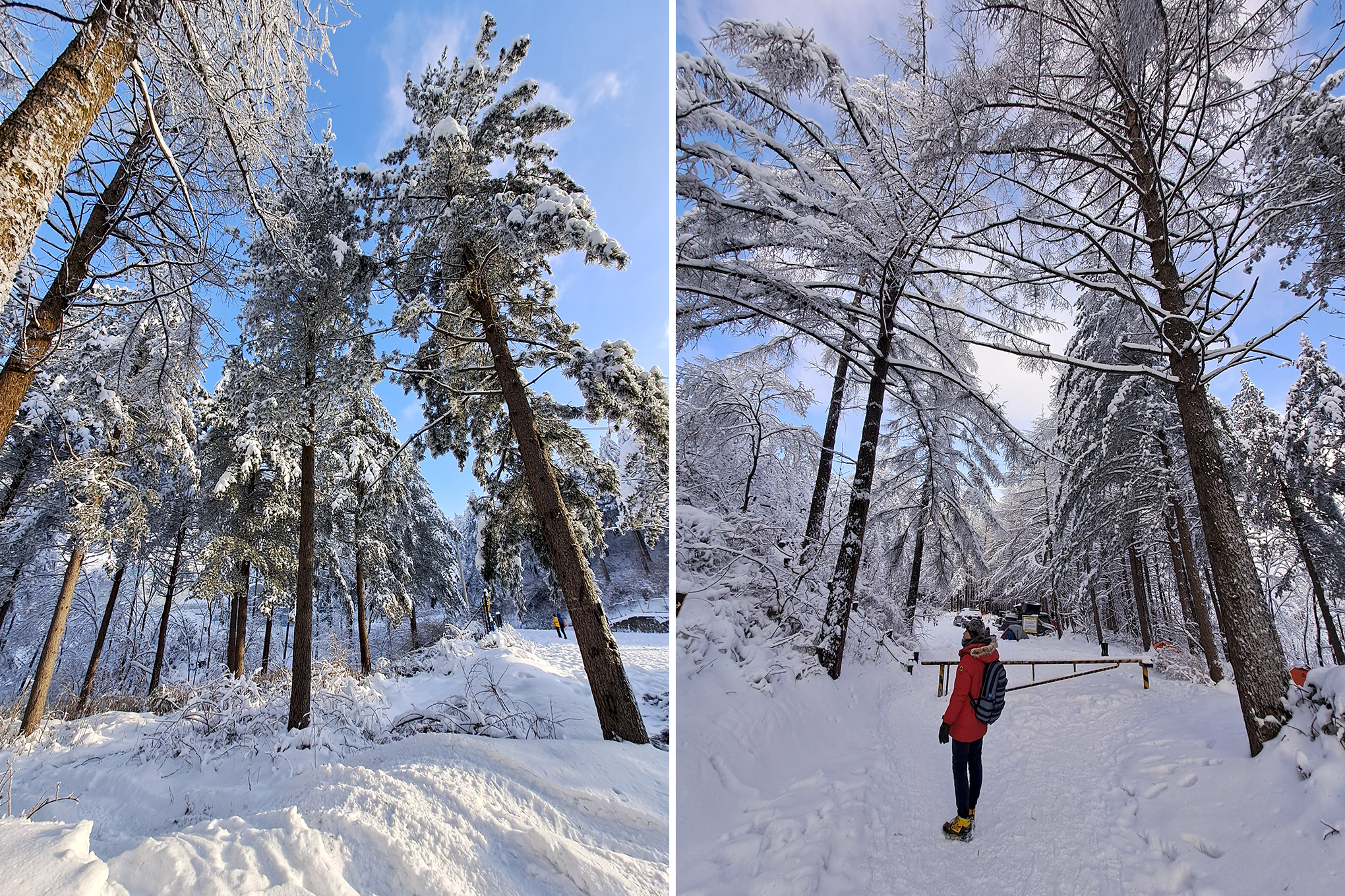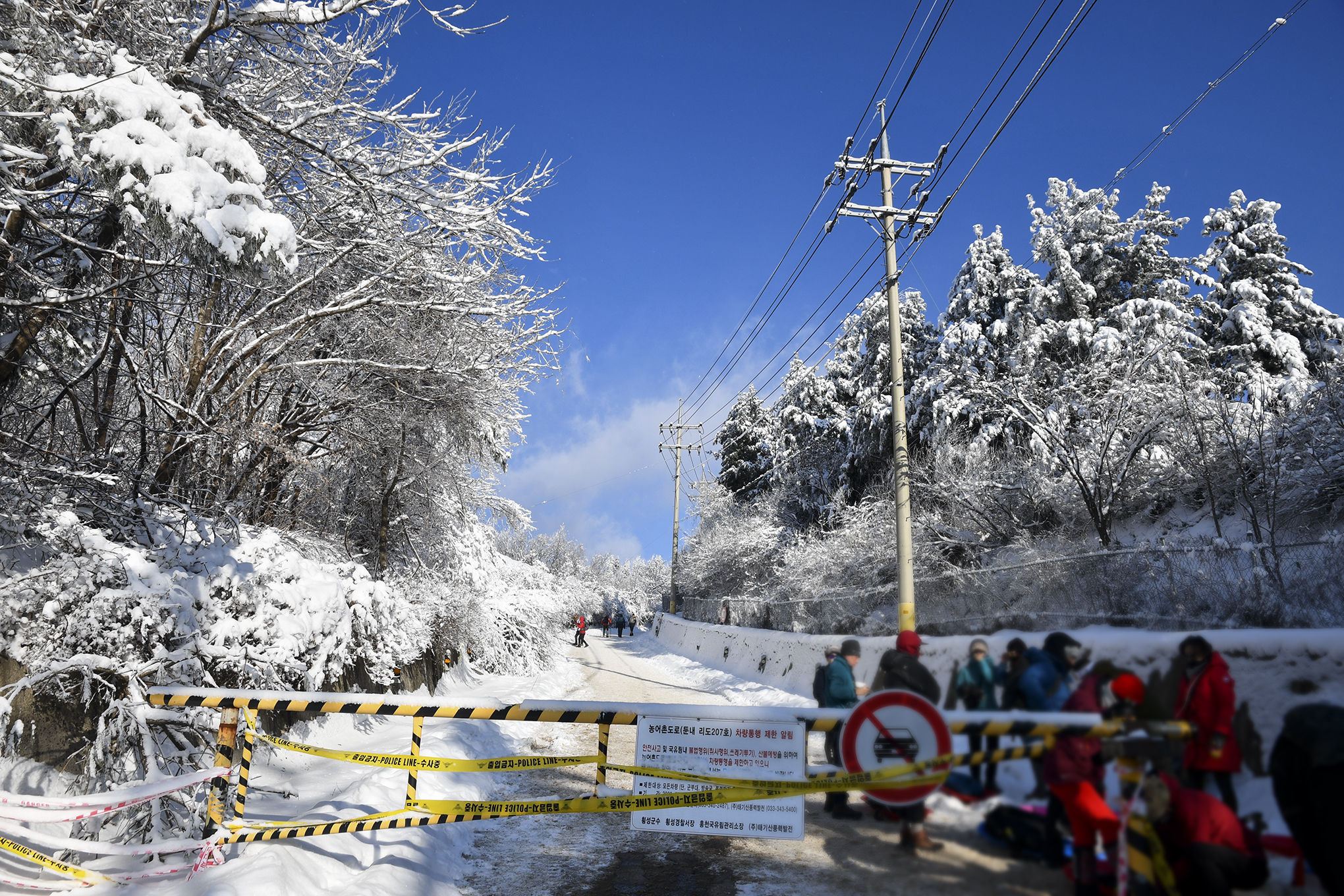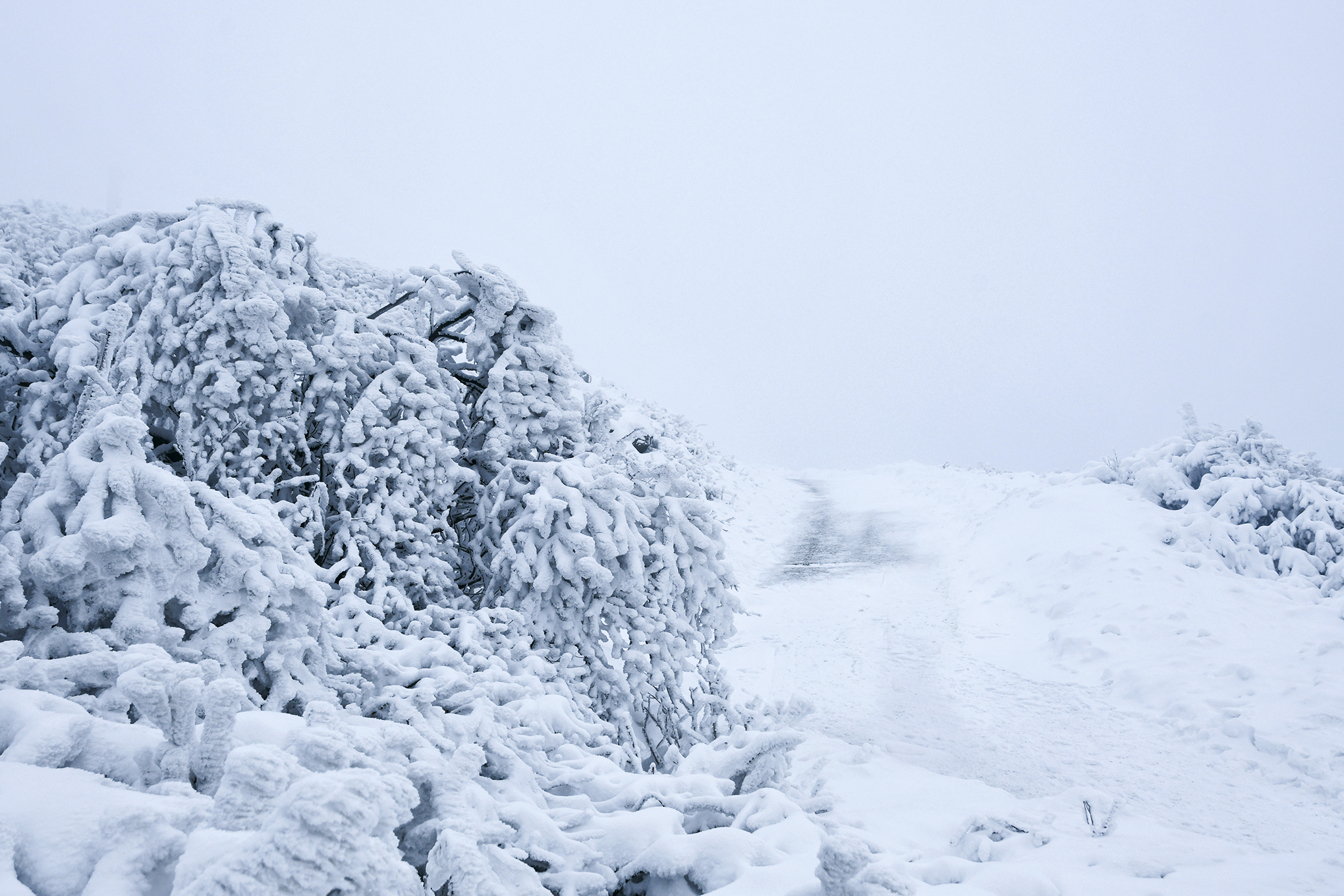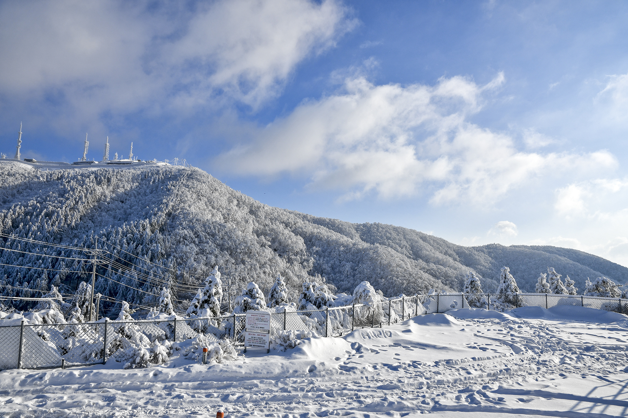 꽁꽁 얼어붙은 나무들은 내린 눈에 그 무게를 이기지 못하고 휘어지고 부러져 있을 정도니 태기산의 겨울을 짐작하고도 남는다.