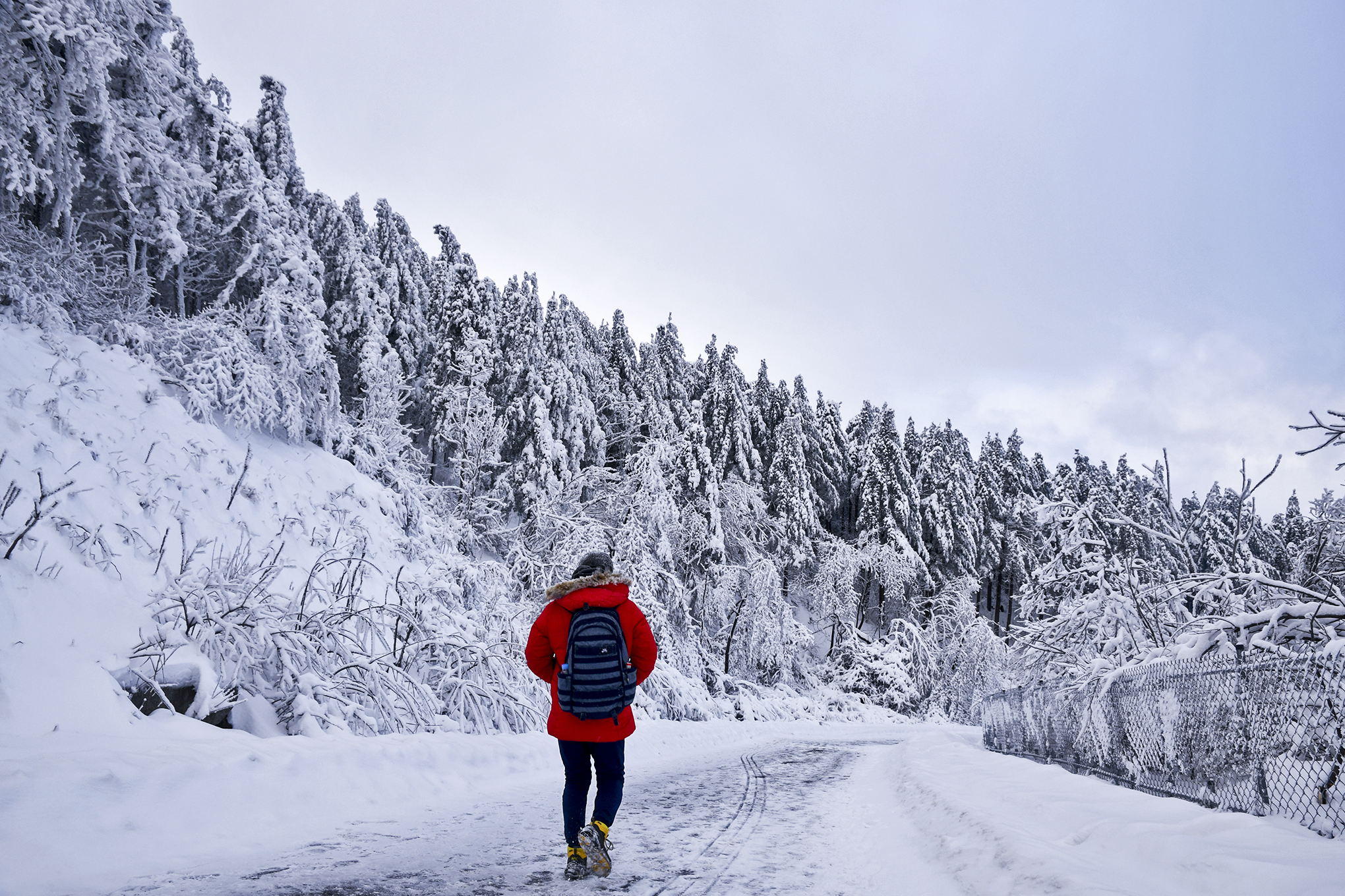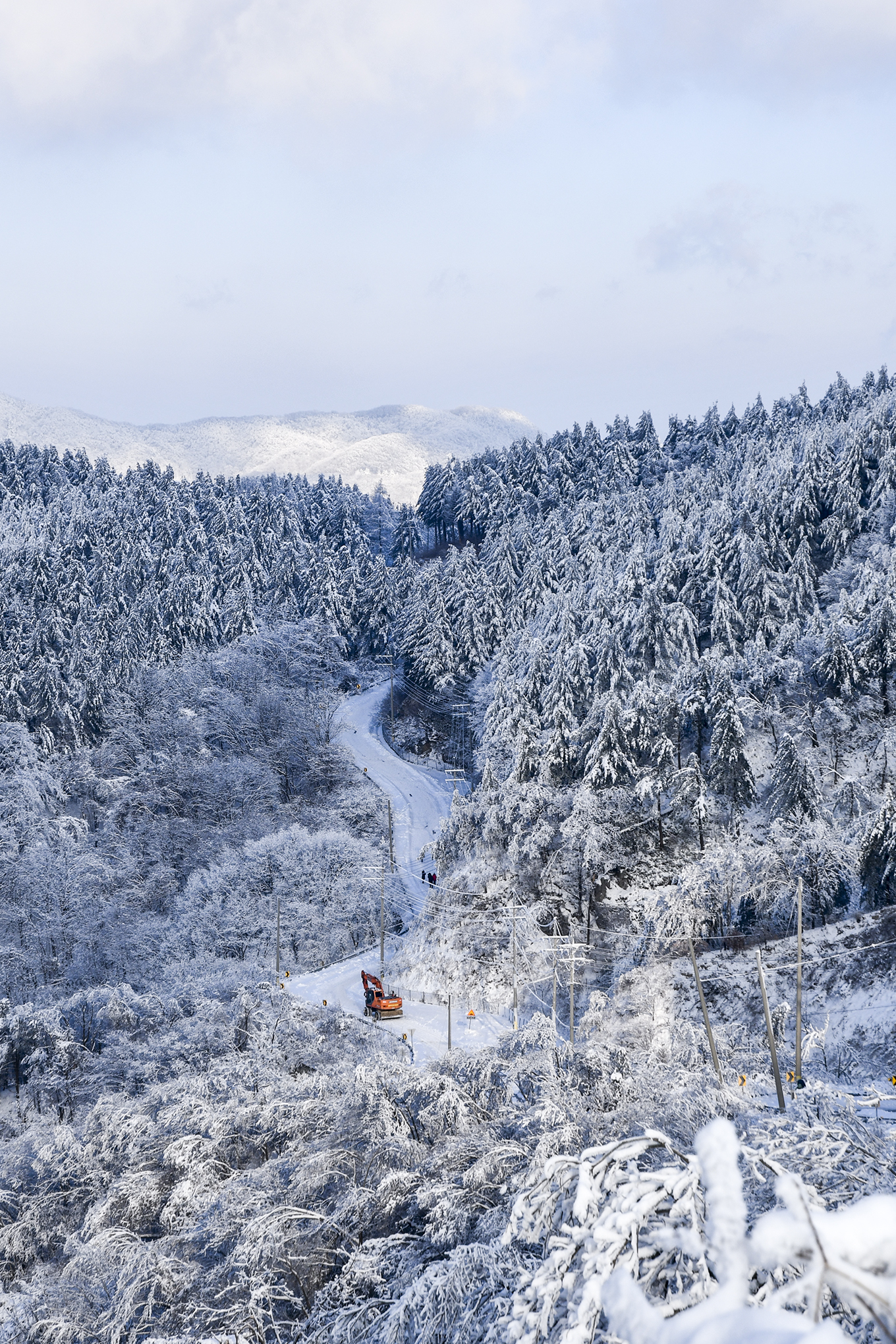 빼곡한 숲 위로 태기산의 겨울에 빠져들다 보면,