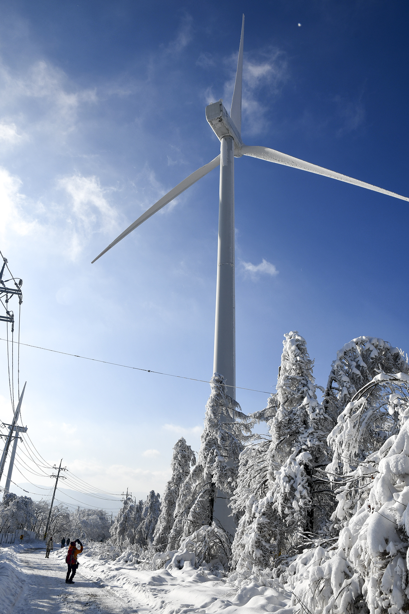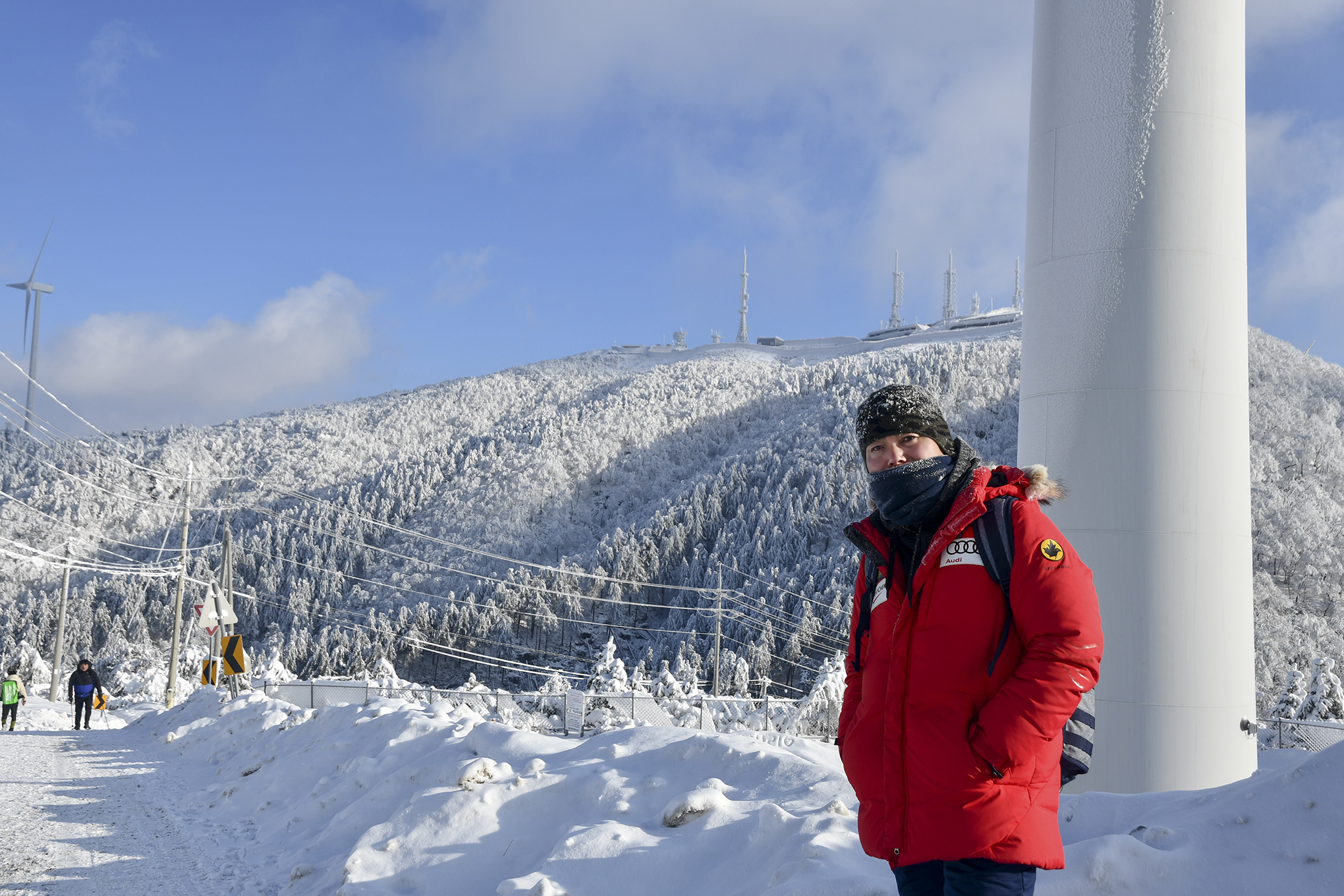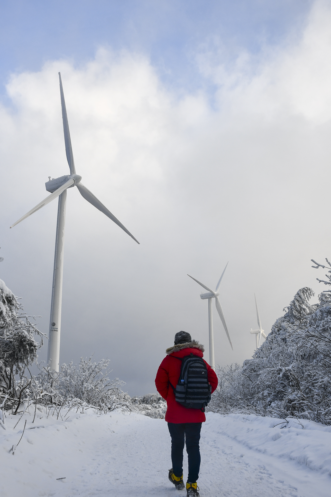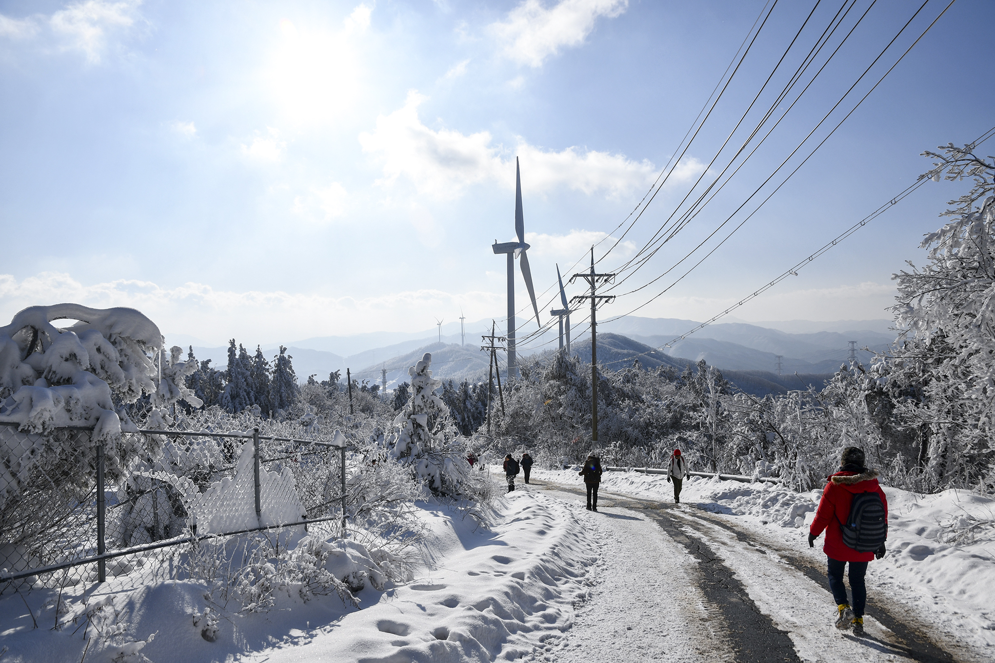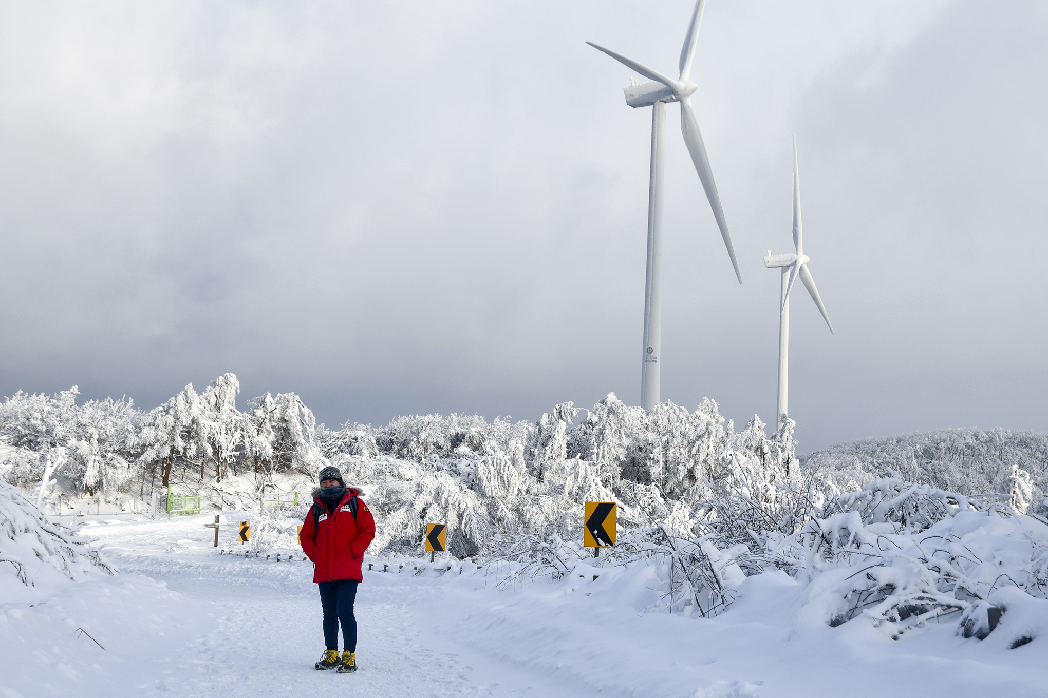 태기산에는 풍력발전단지가 있는데 설경과 너무도 잘 어울리는 풍경이다.