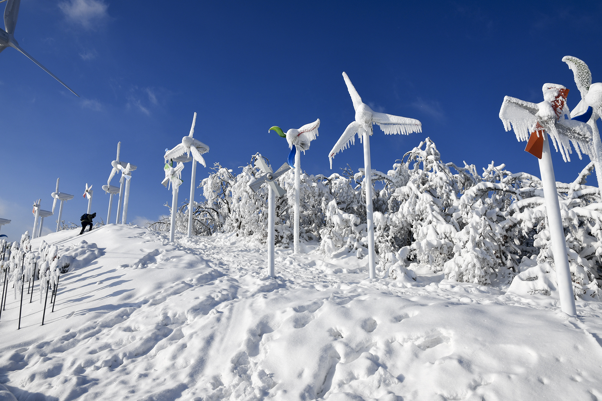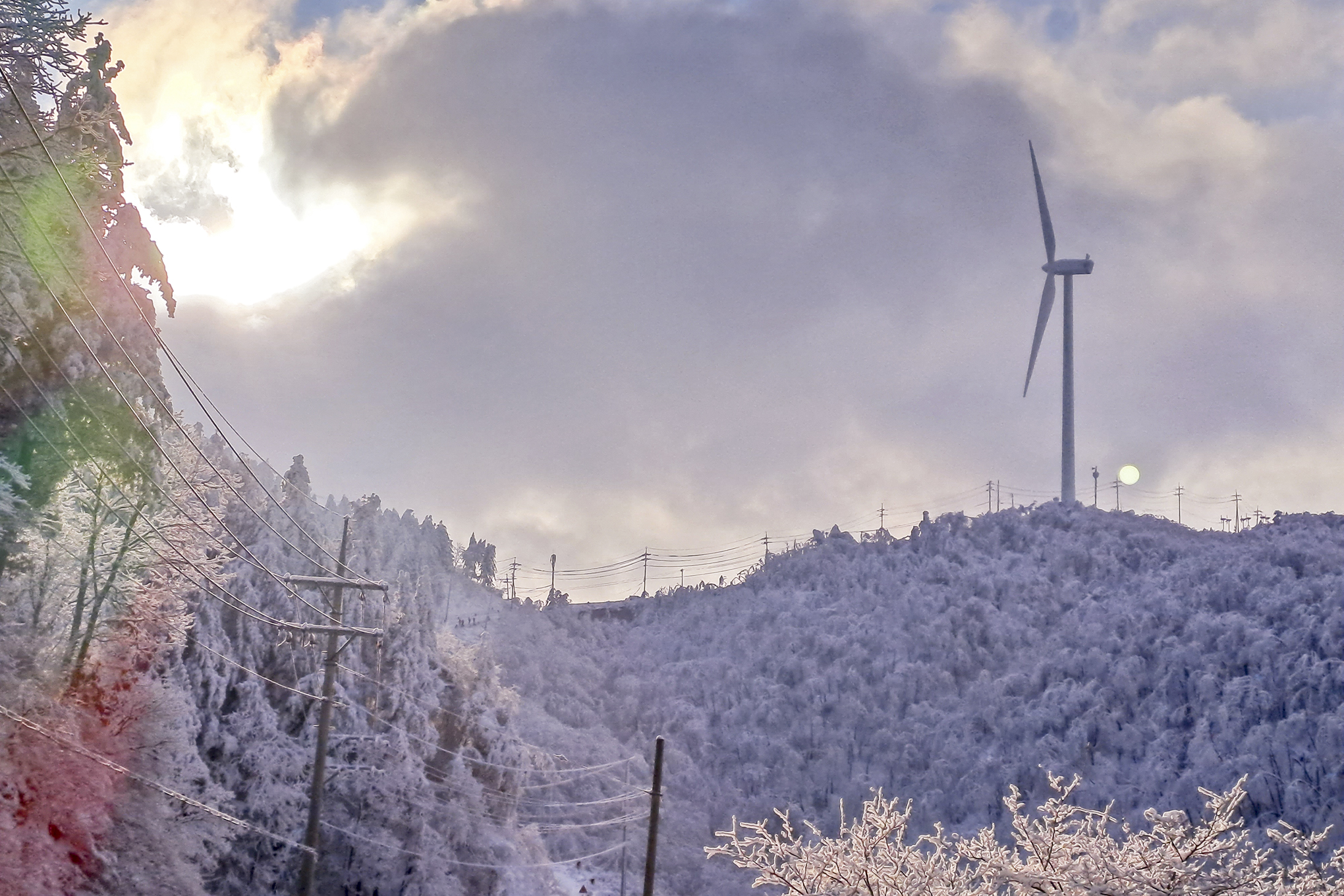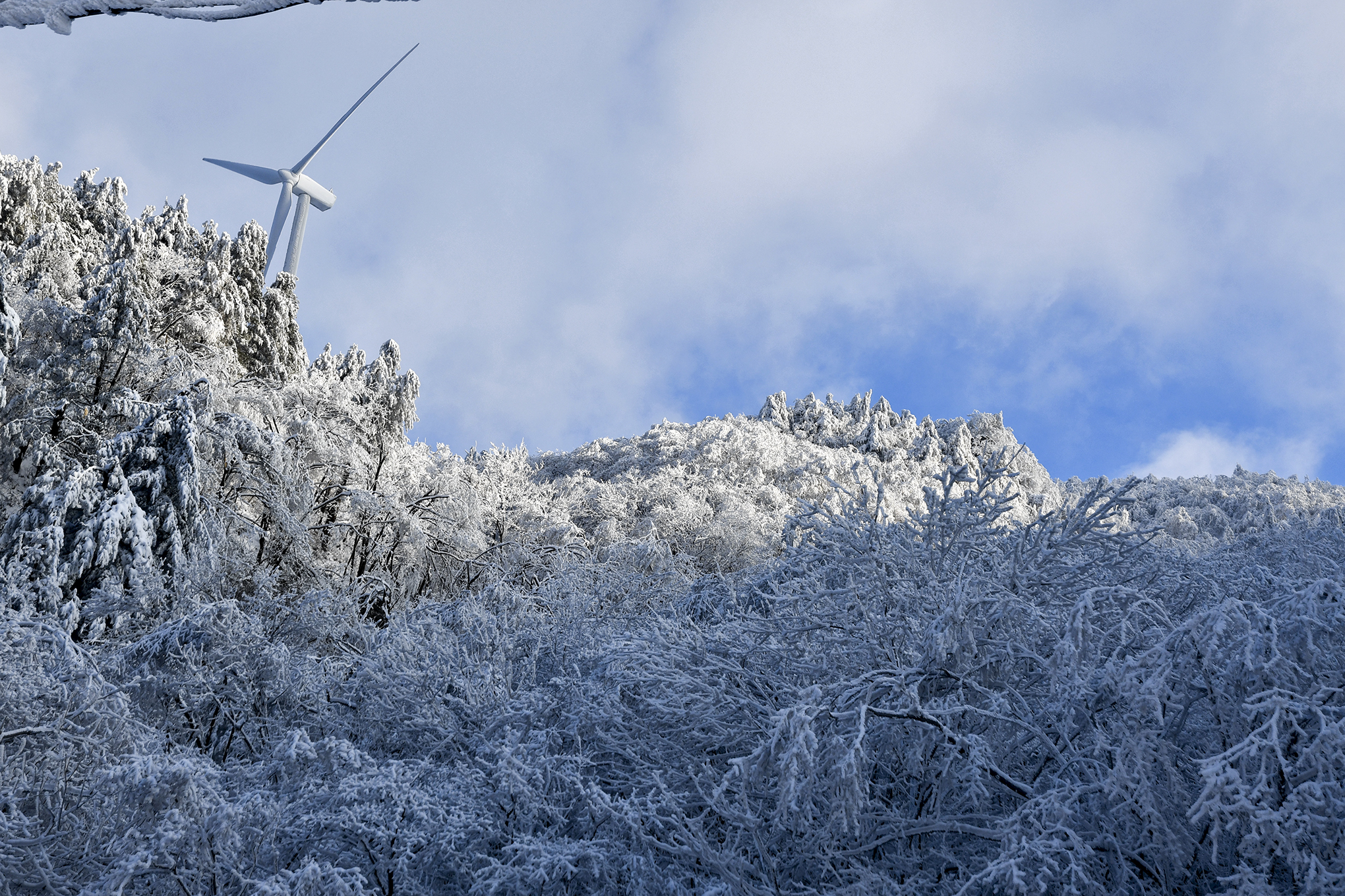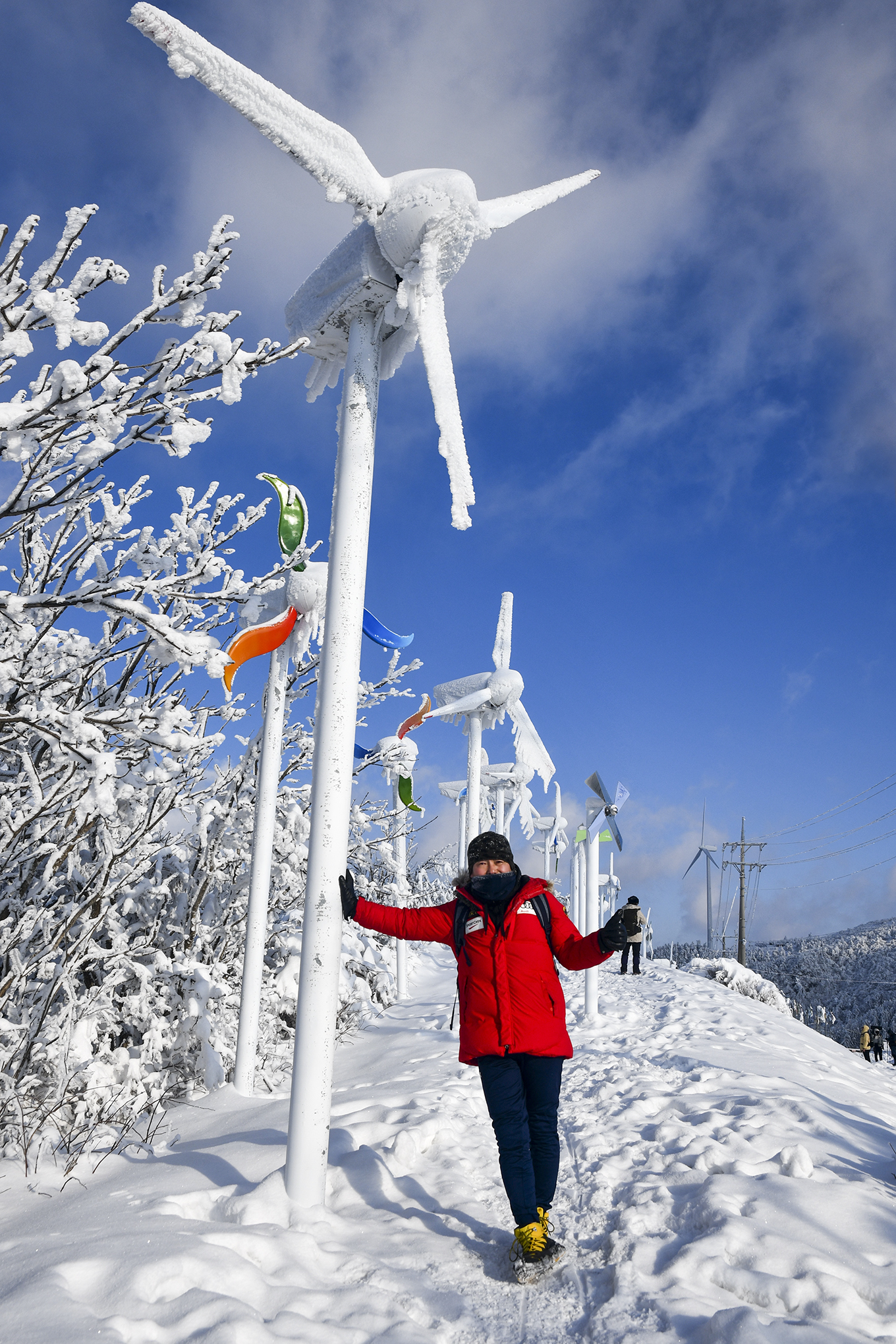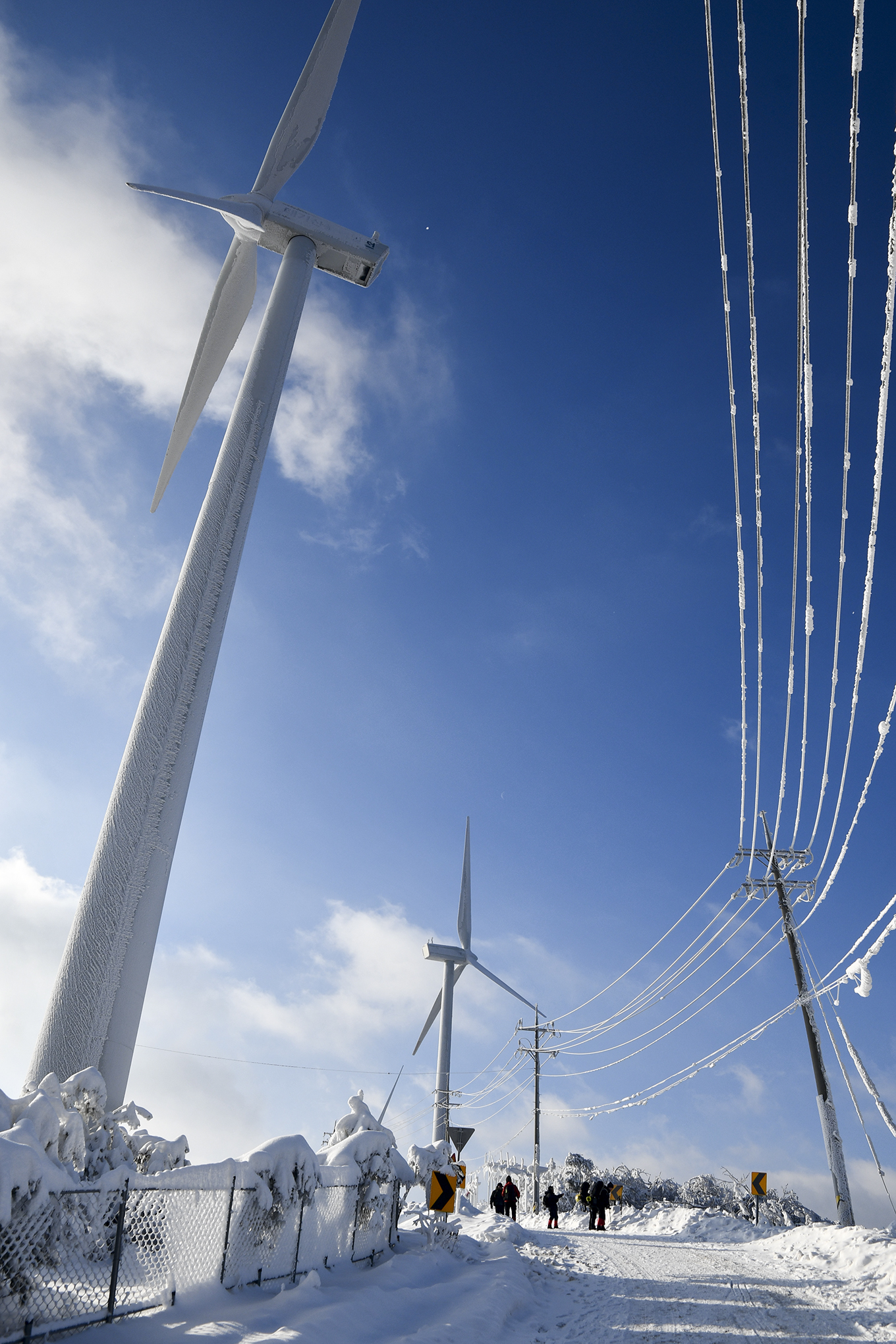 태기산에는 풍력발전단지가 있는데 설경과 너무도 잘 어울리는 풍경이다.