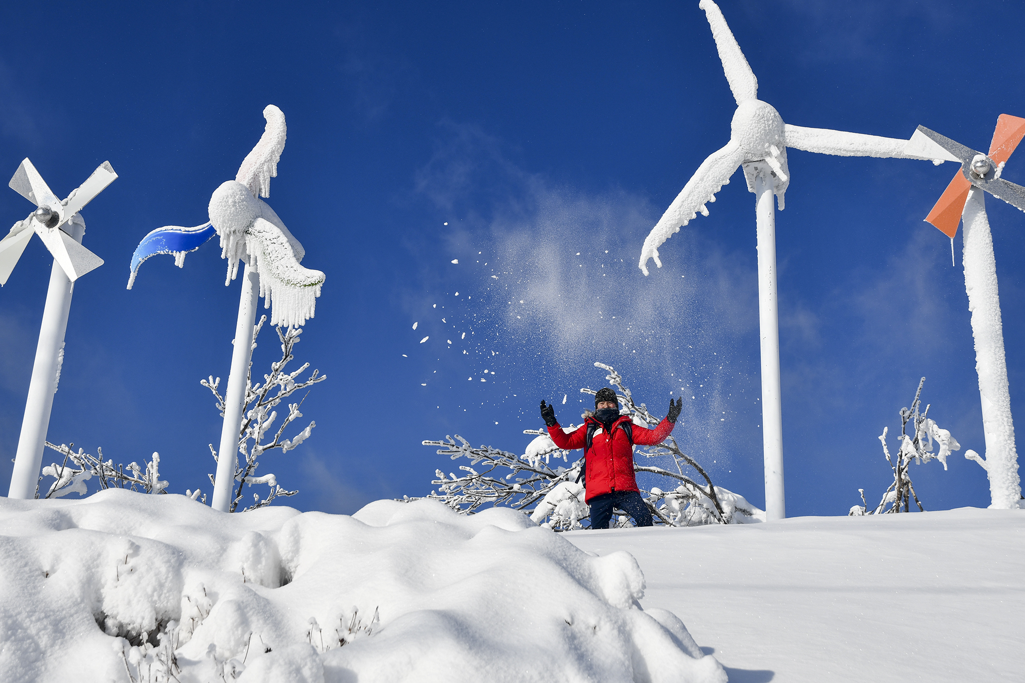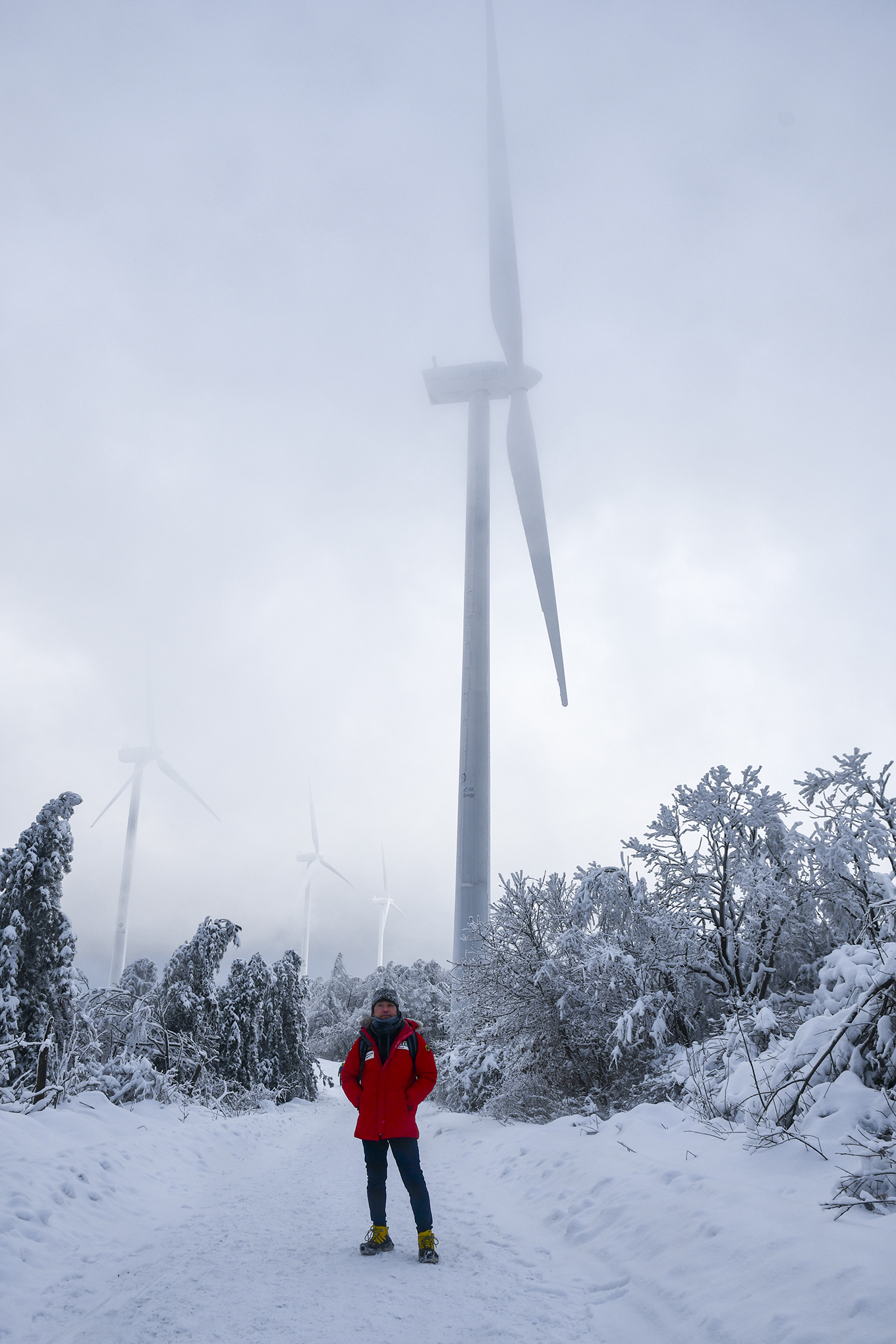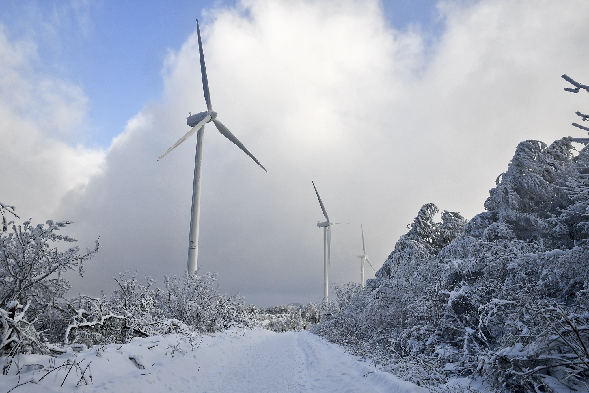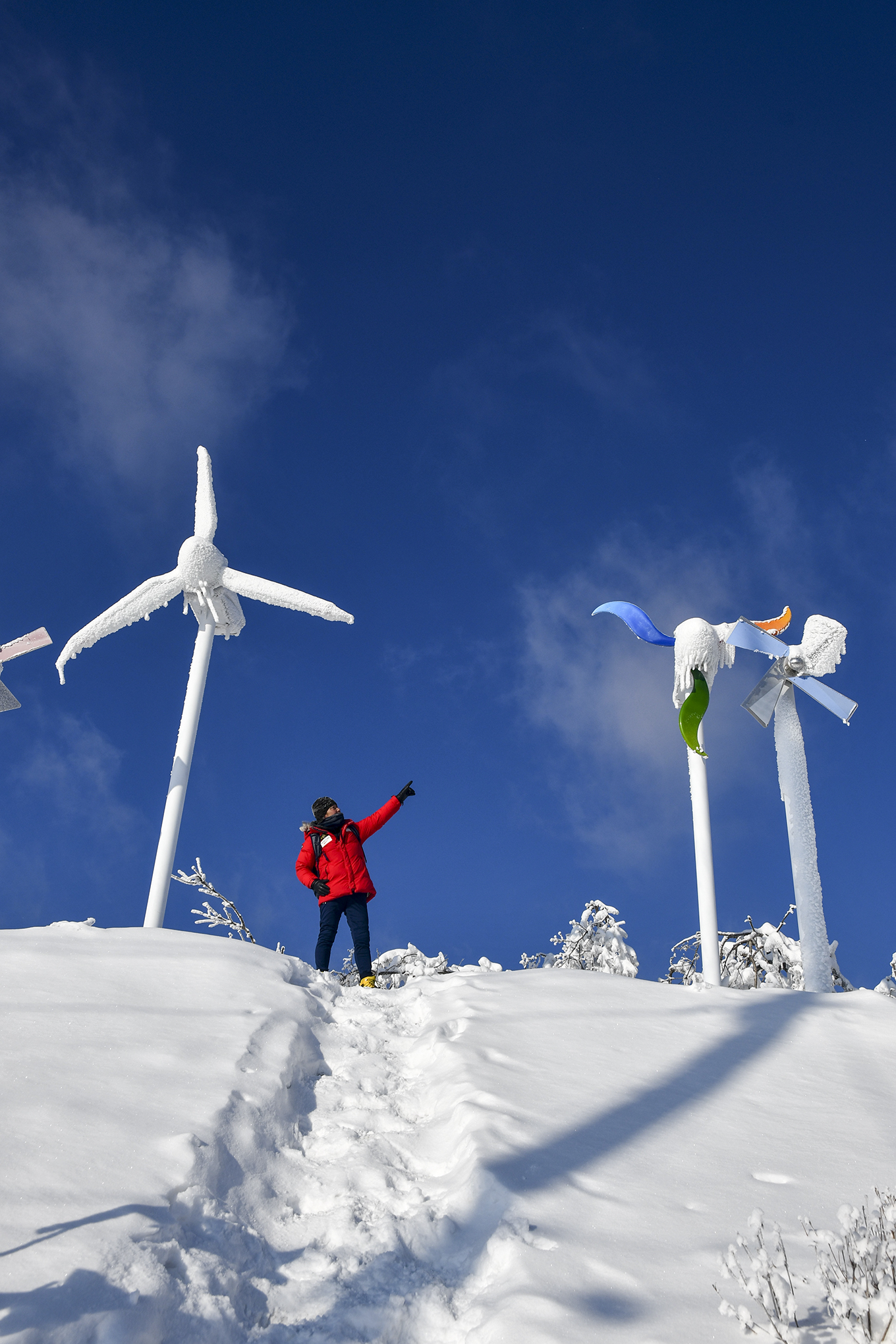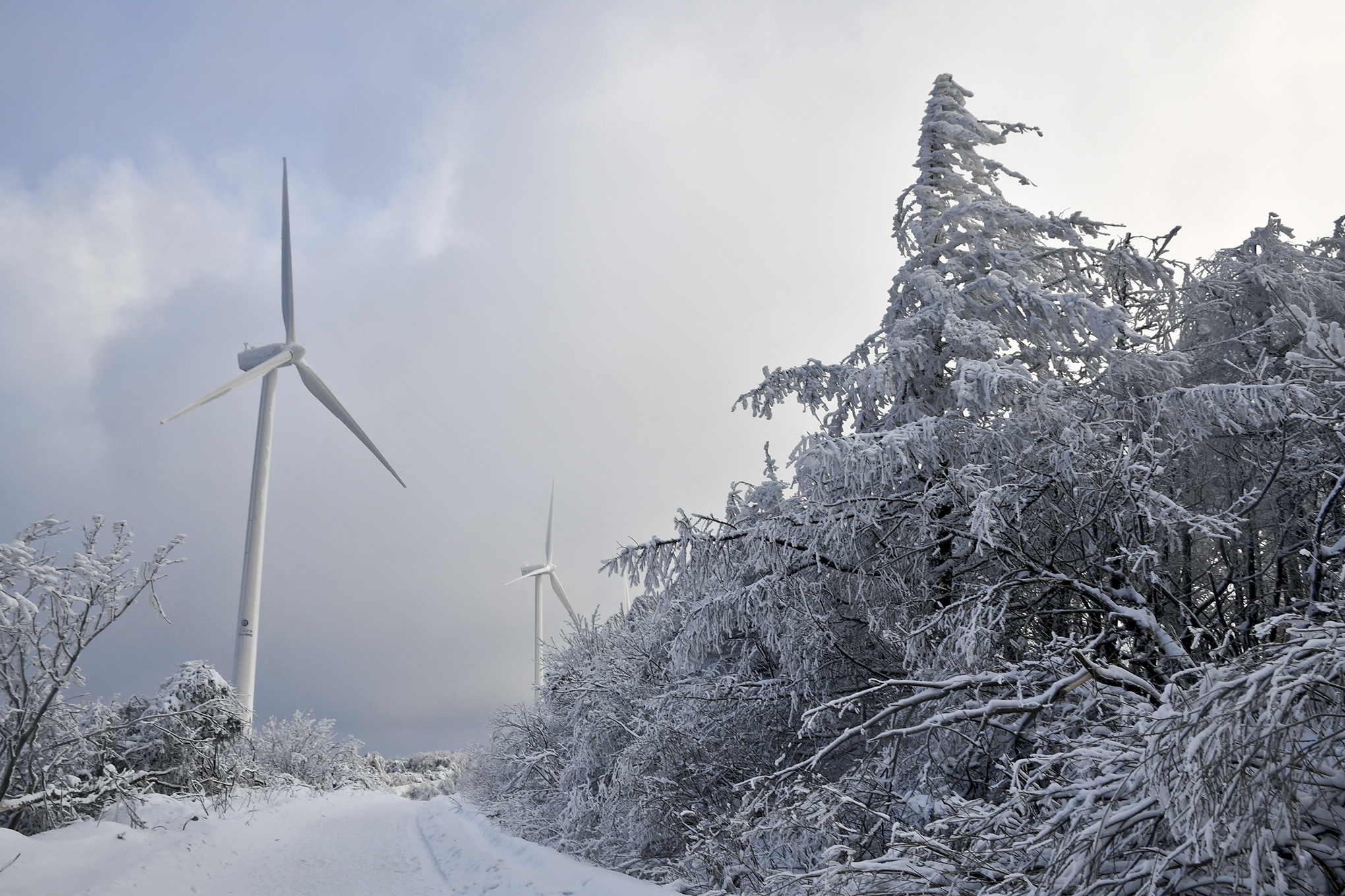 태기산에는 풍력발전단지가 있는데 설경과 너무도 잘 어울리는 풍경이다.