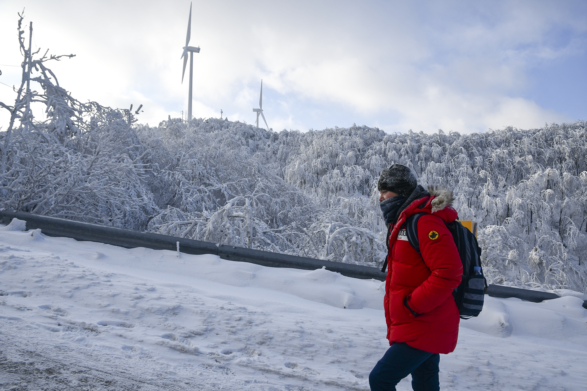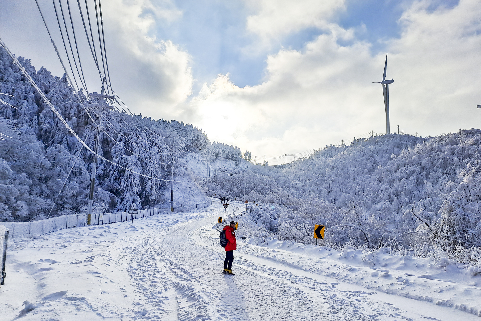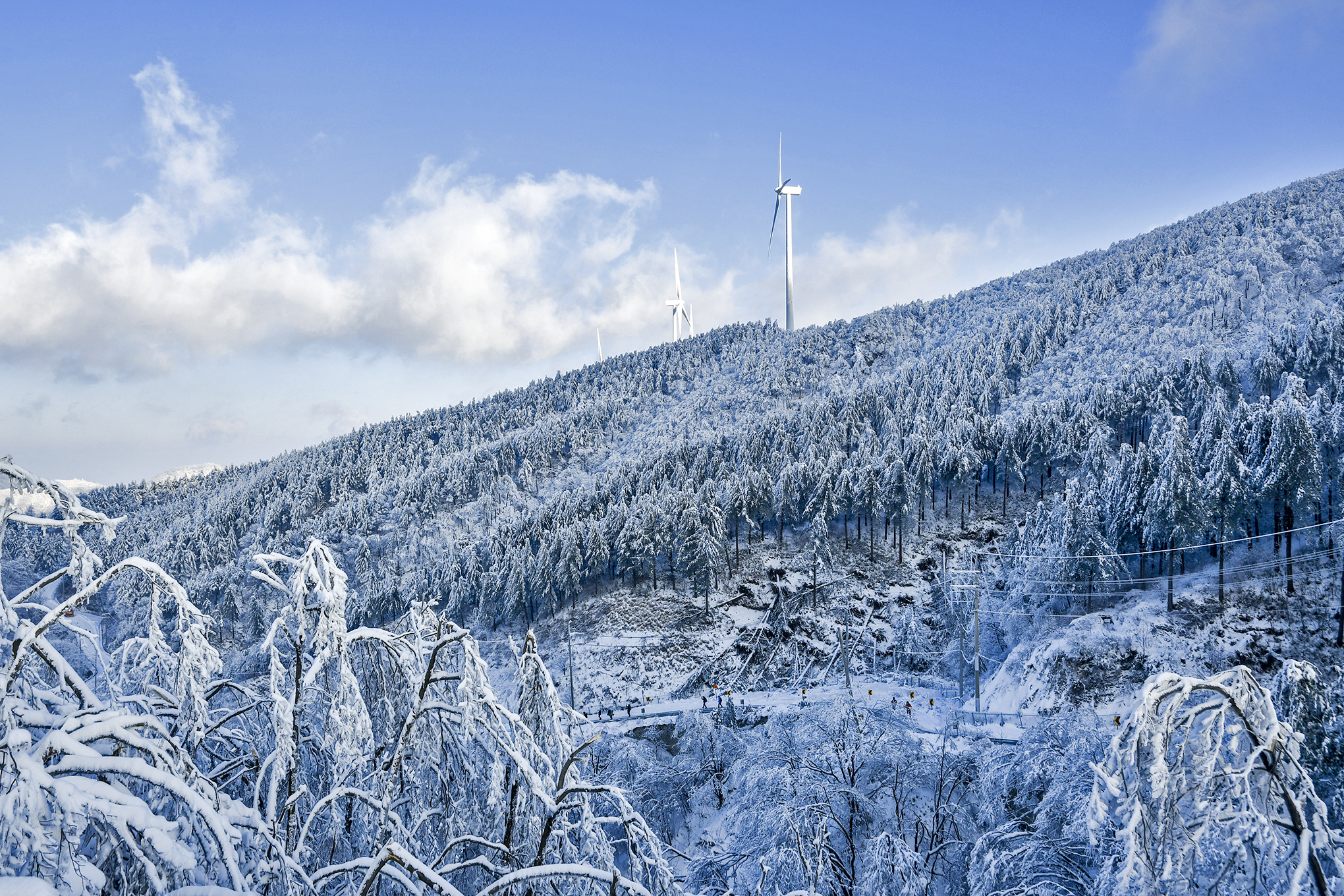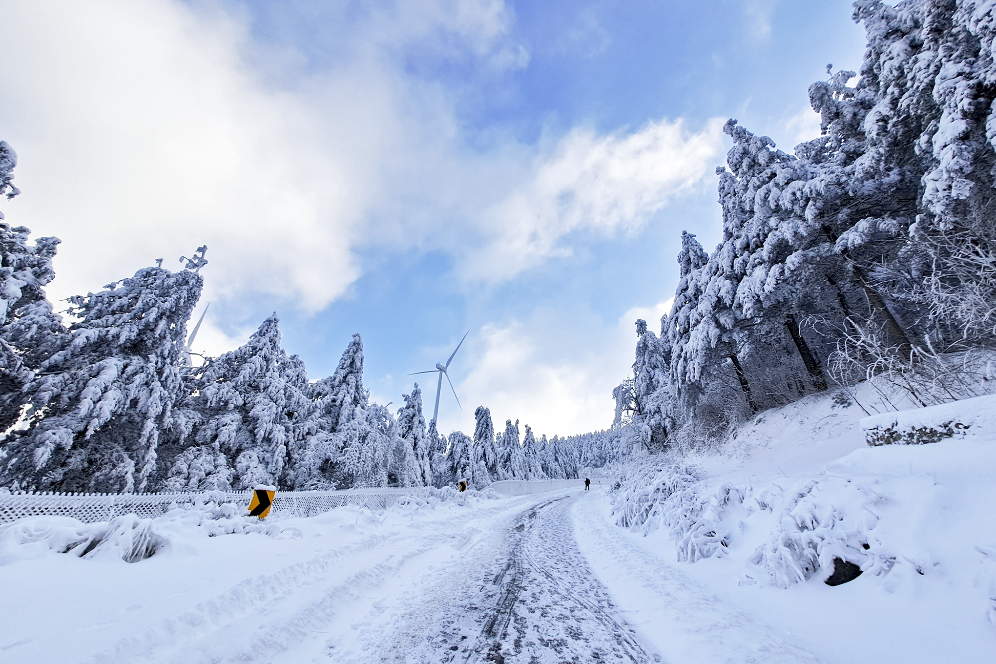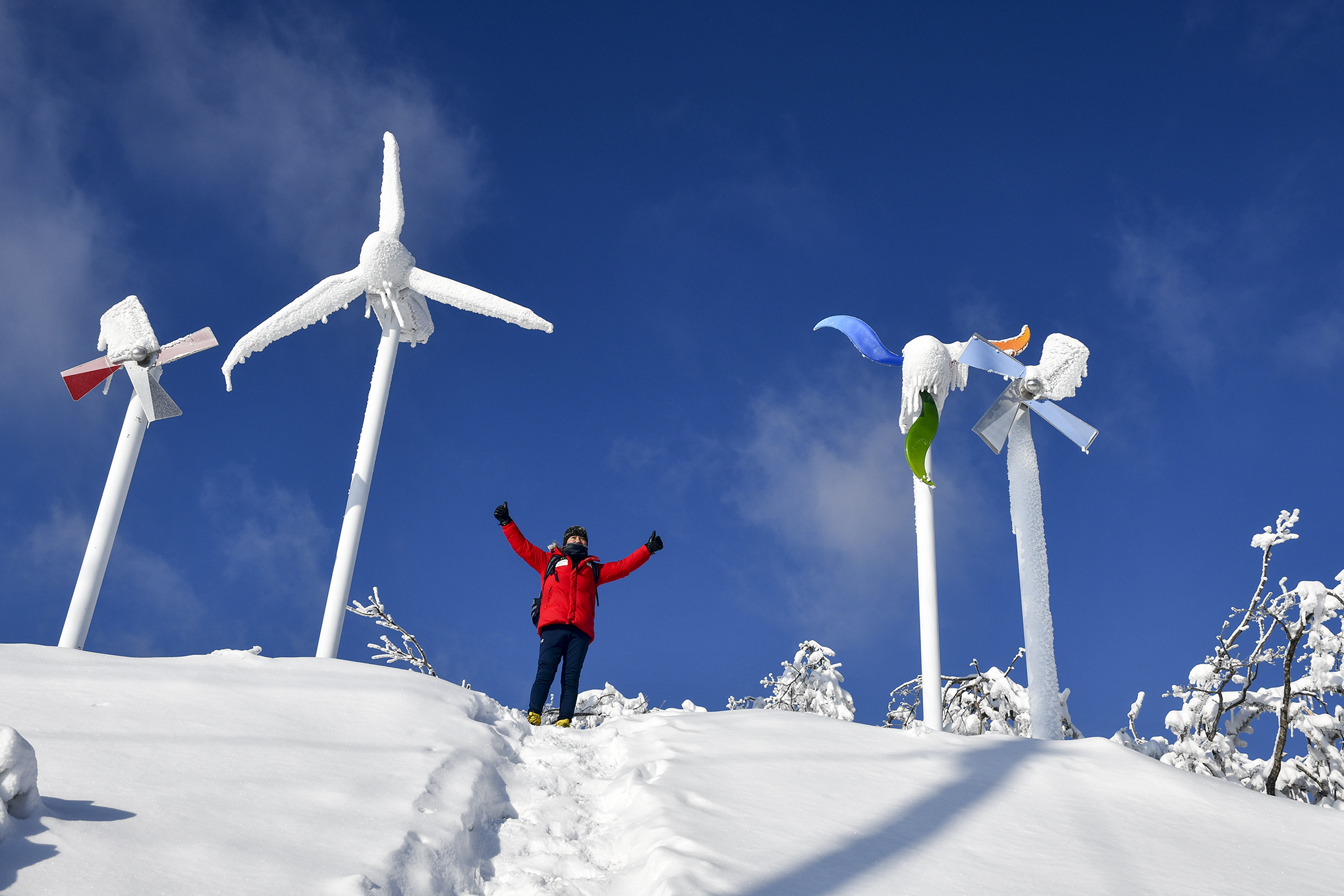 태기산에는 풍력발전단지가 있는데 설경과 너무도 잘 어울리는 풍경이다.