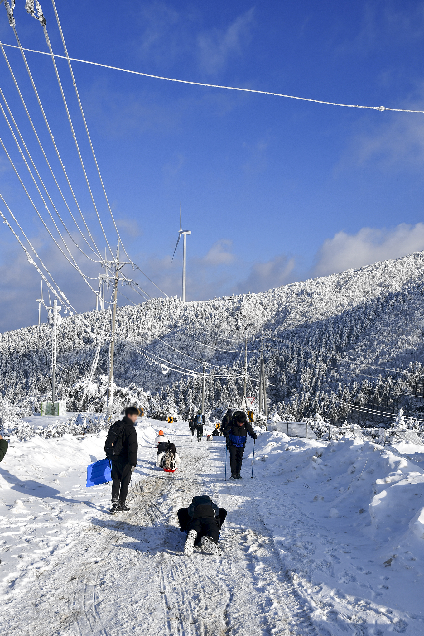 내려가는 길에서는 이렇게 썰매를 타는 사람들도 꽤 된다. 태기산에 썰매를 매고 올라오는 풍경은 이제 흔하게 볼수 있다.