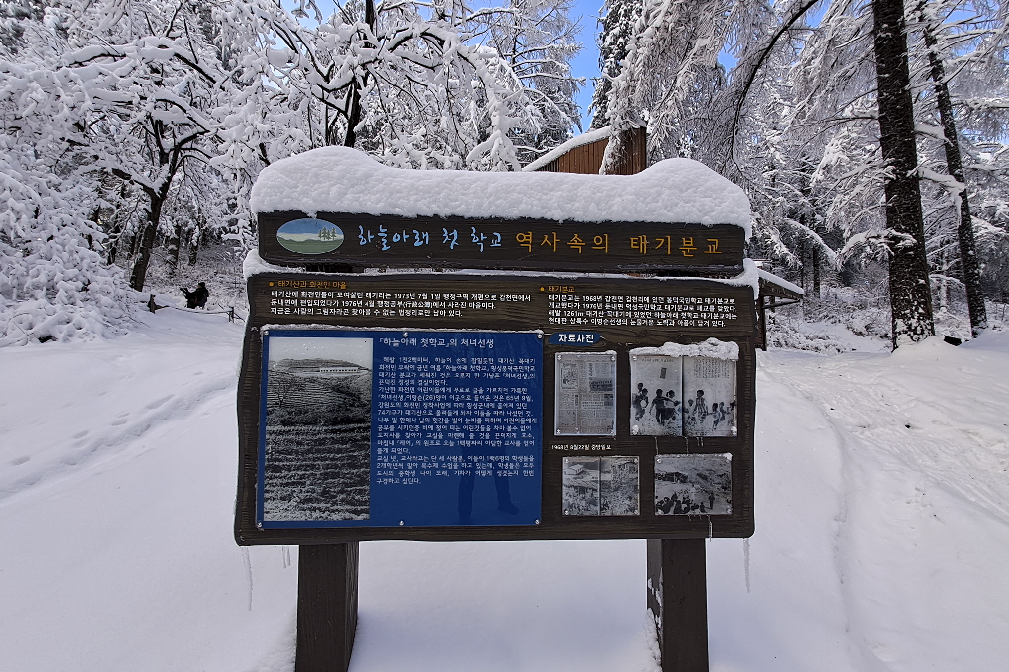 해발 1200m 하늘이 손에 잡힐듯한 태기산 꼭대기 화전민 부락에 세워진 이 분교는, 당시 26세였던 현대판 상록수 이명순 선생의 눈물겨운 노력으로 세워지게된 100평짜리 아담한 학교이다.