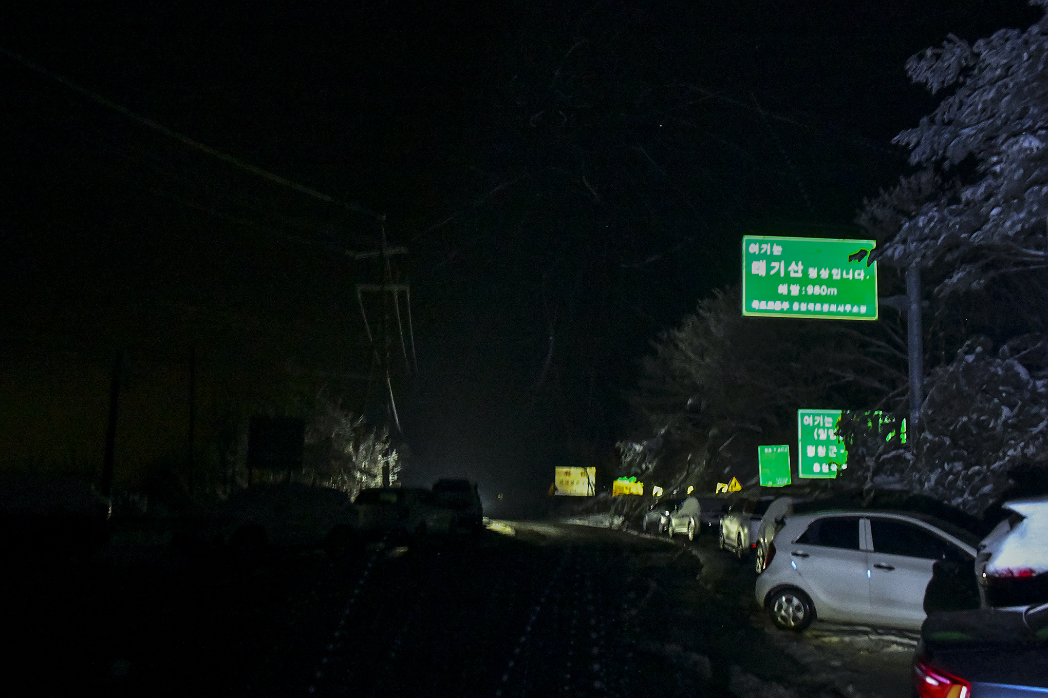 새벽까지 눈이 내렸고, 도착한 뒤에도 간간히 눈발이 날렸던 오늘 날씨, 8시부터는 해가 나와 맑음이라는 예보를 믿고 일출을 보려고 일찍 서둘렀다.