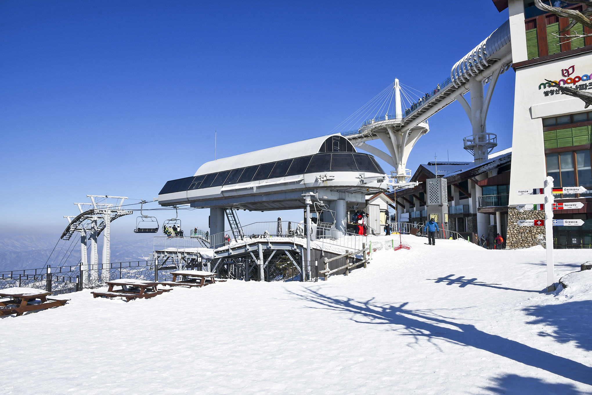 왕복 7.4km의 케이블카는 드래곤플라자 탑승장에서 출발해 발왕산 정상의 드래곤캐슬 하차장까지 18분 동안 아름다운 설경을 감상할 수 있다.