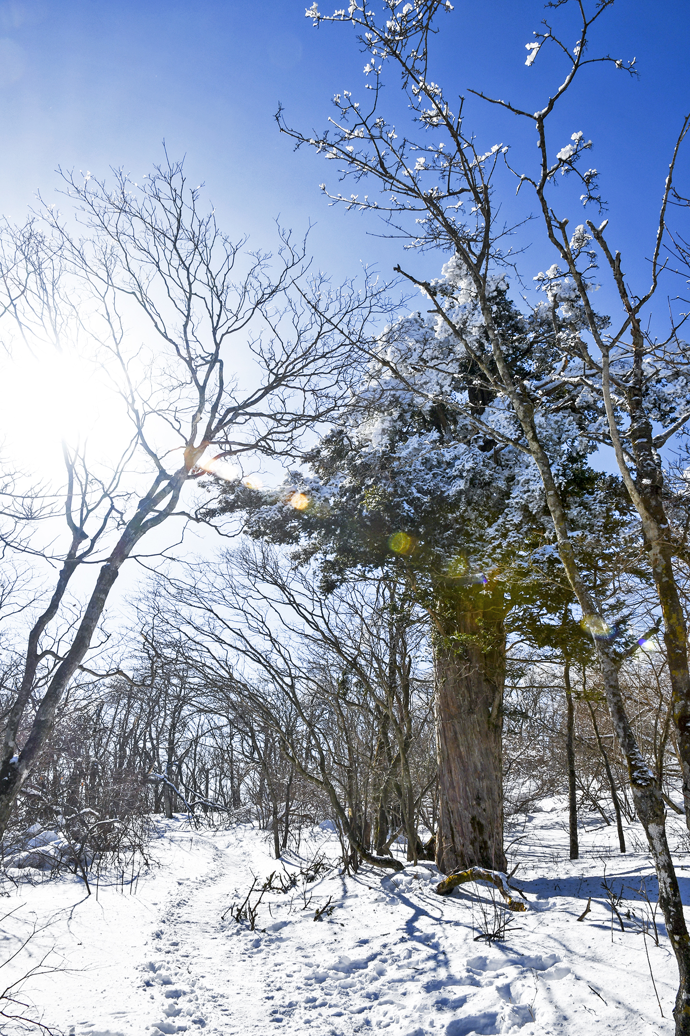 그늘이었던 구간이라 추웠던 탓인지 상고대가 만발하고 제 타이밍에 해가 정면에서 비춰주고 있다.