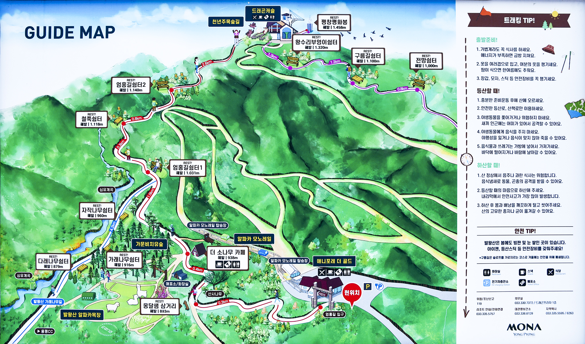 가문비숲길을 한바퀴 돌아보는데 20~30분이면 충분히 즐길수 있고, 모노레일을 이용하면 쉽게 오르고 내려갈 수 있다.