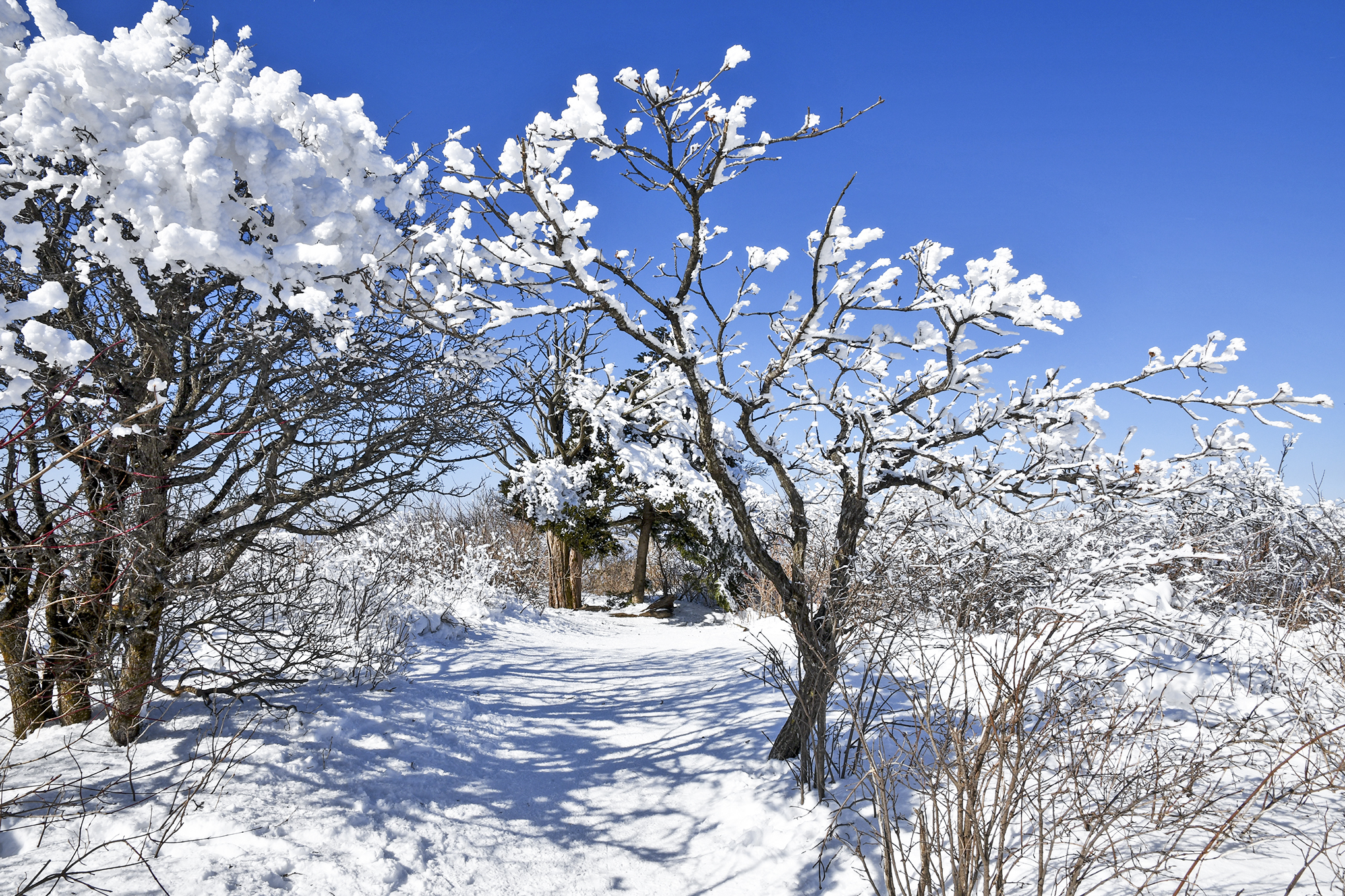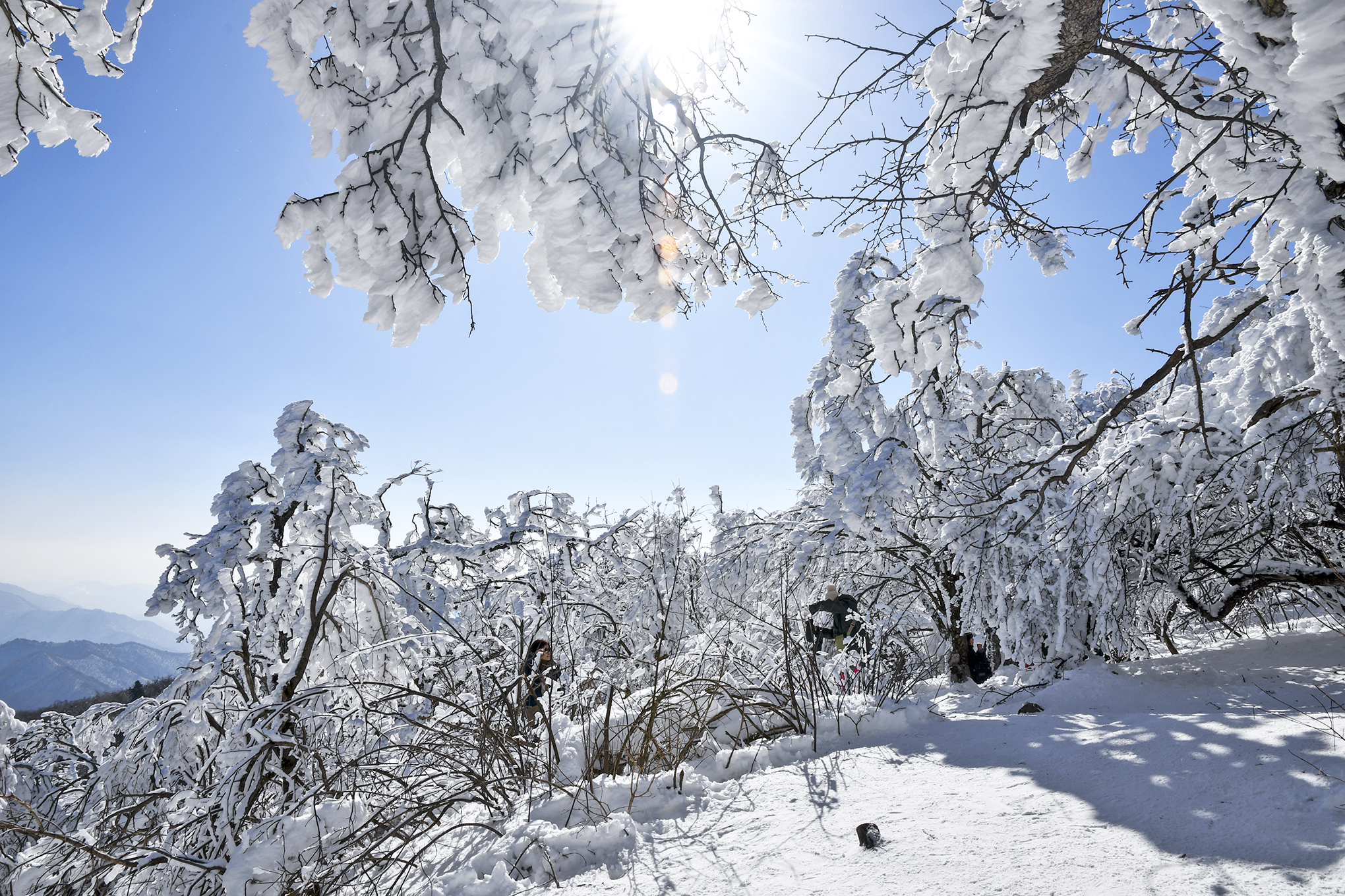 눈꽃과 상고대는 터널을 만들고, 파란하늘에 더욱 빛이 난다.