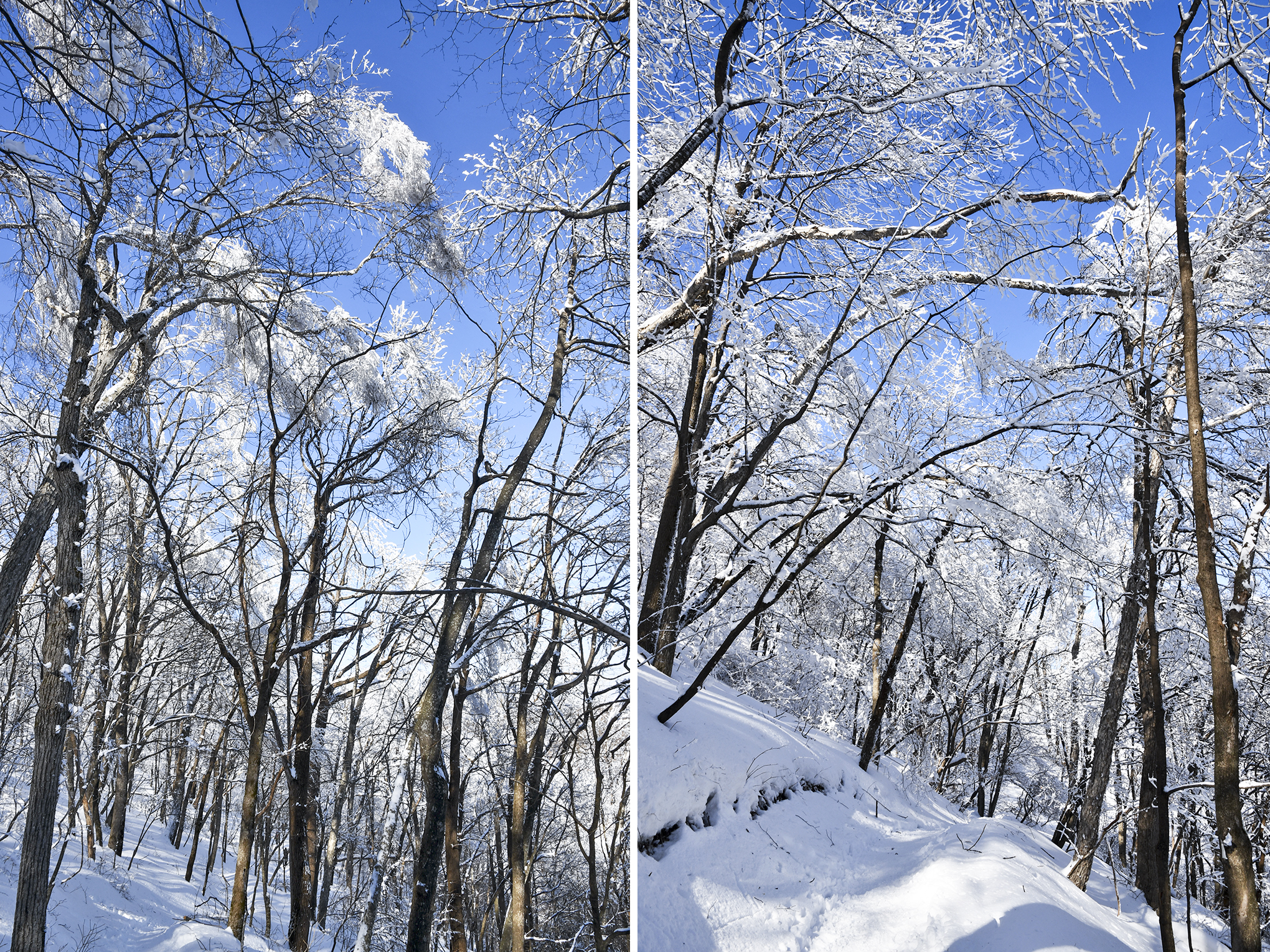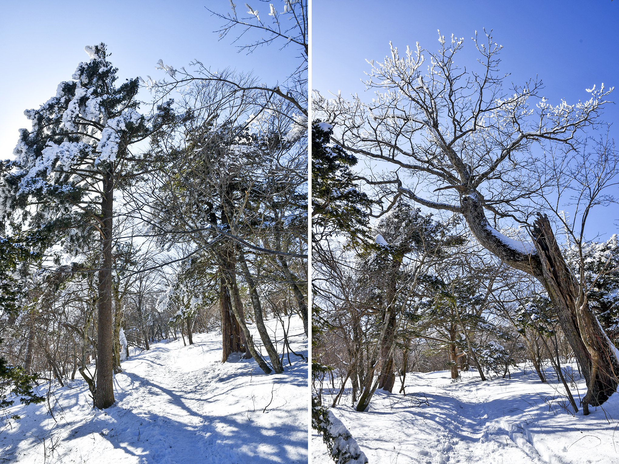 눈꽃으로 하얗게 피어난 나무들은 시선을 잡아매며 더욱 걸음을 느리고 만들고,