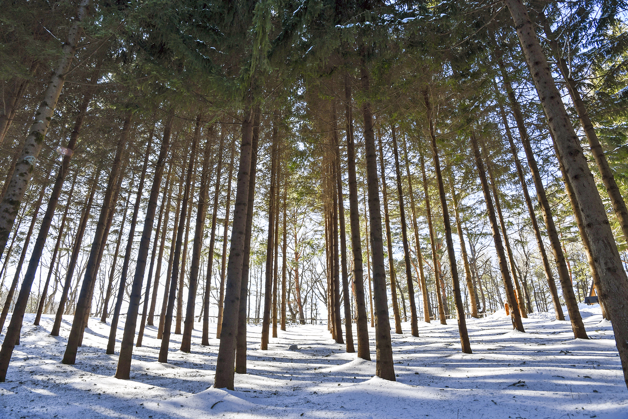 하늘 높이 뻗은 나무들의 정갈한 행렬이 눈마저 정화시켜 준다.