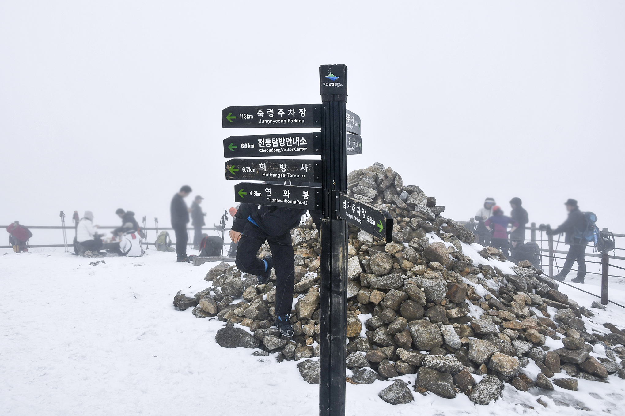 안개낀 정상에서 따끈한 라면국물 들이키는 기분도 괜찮을것 같은데 마땅한 자리는 다들 차지하고,,
