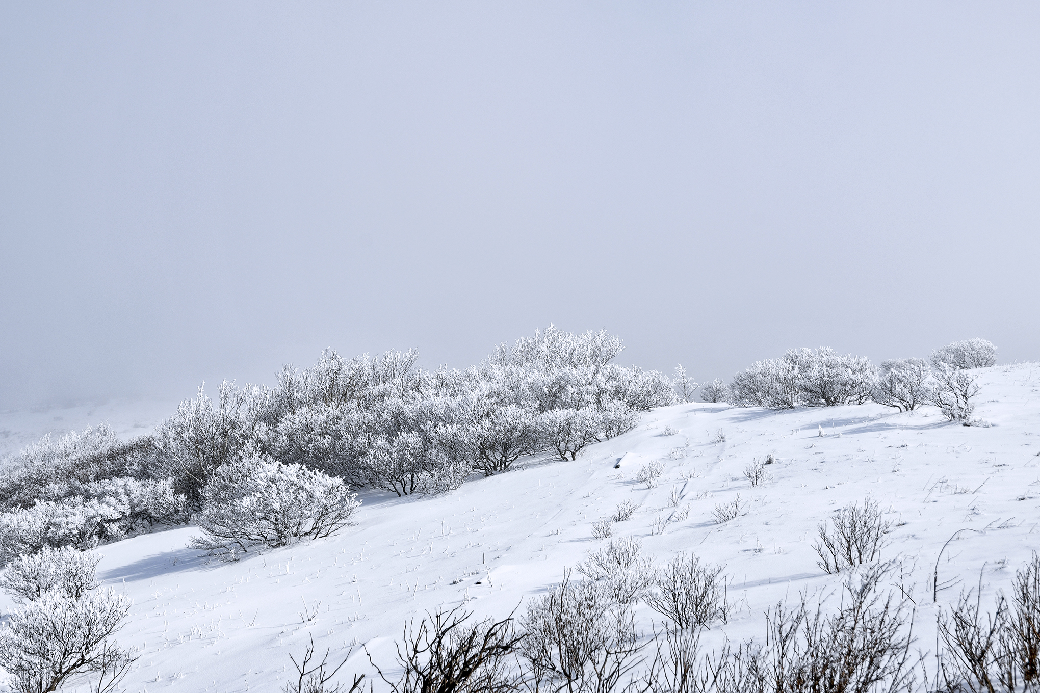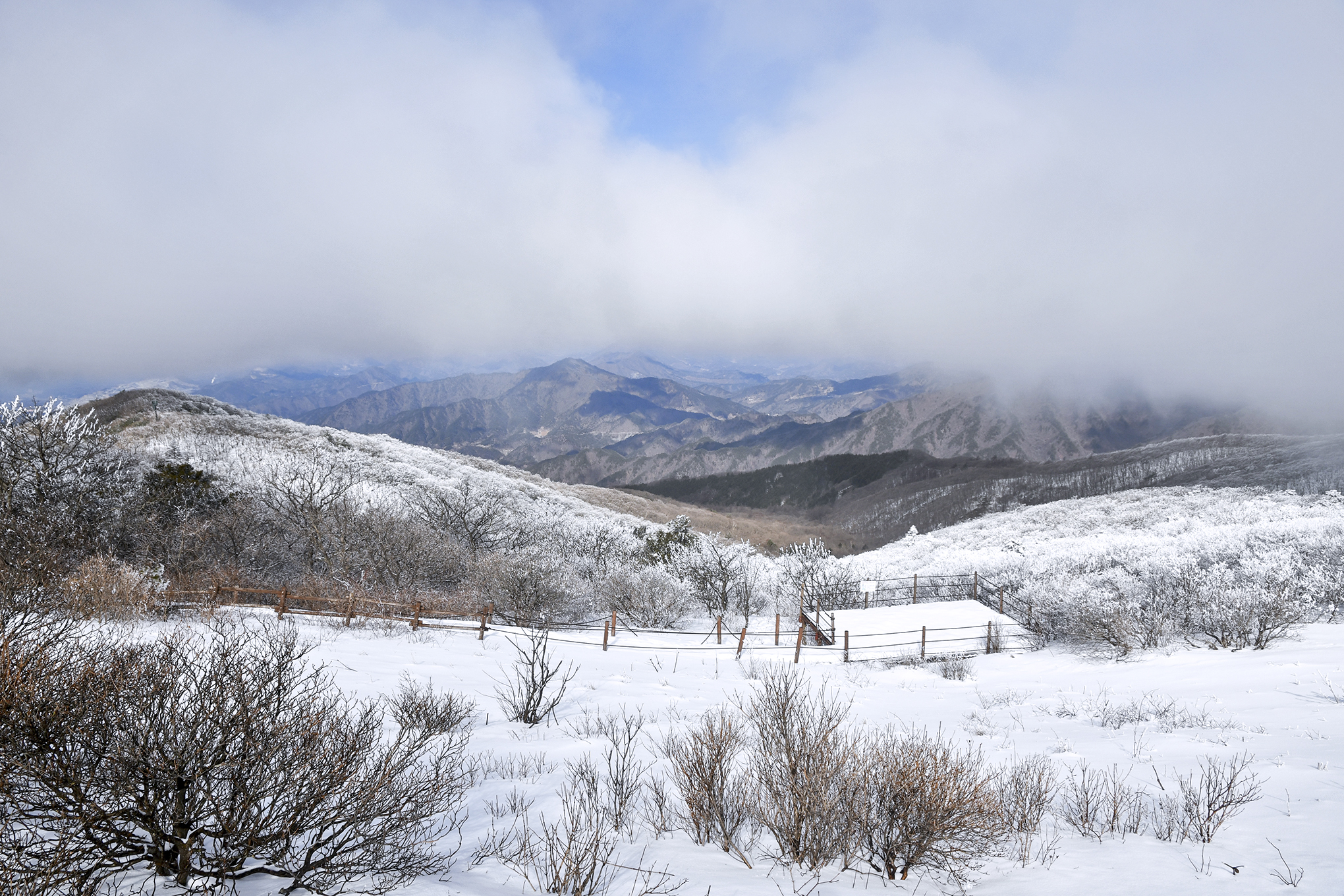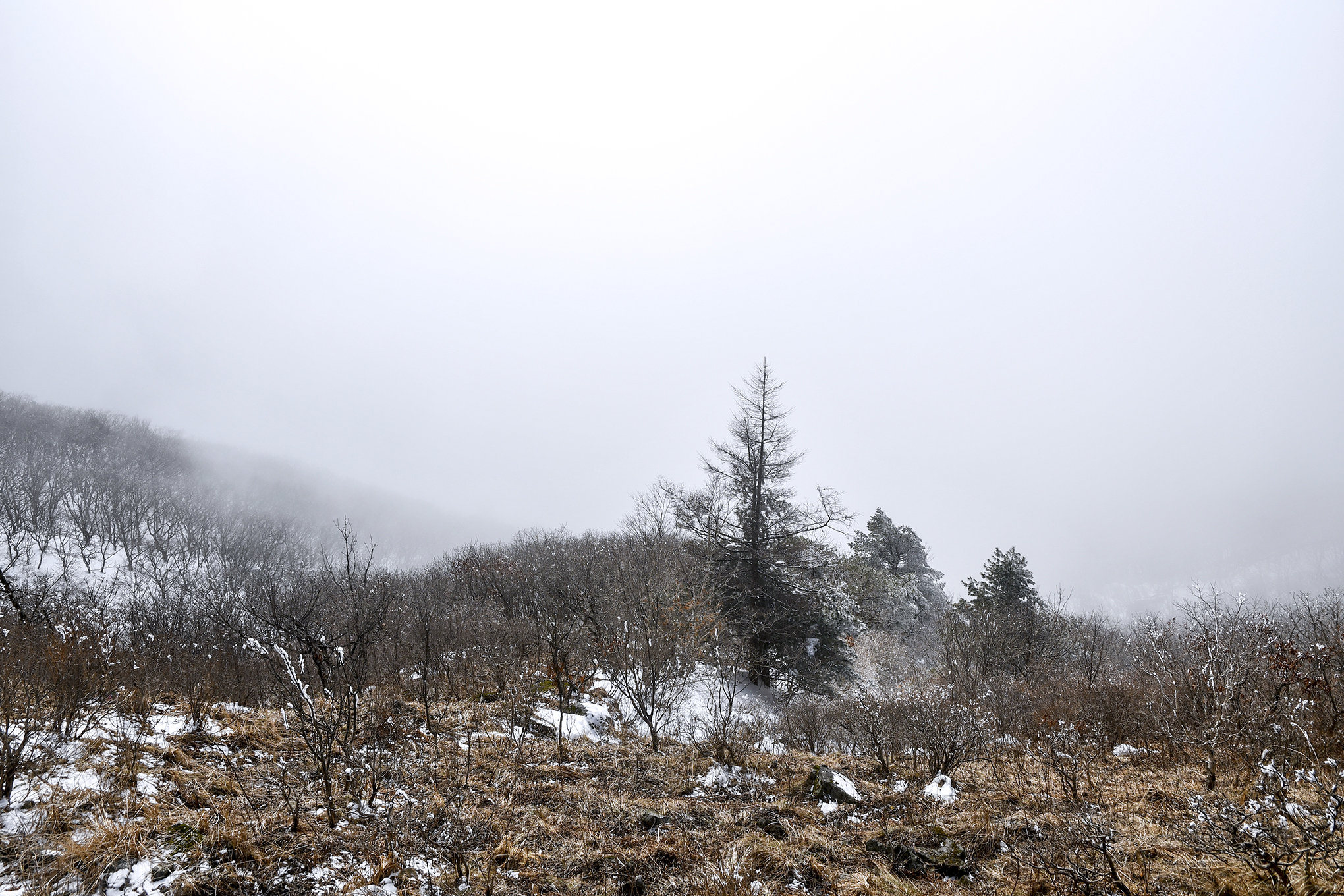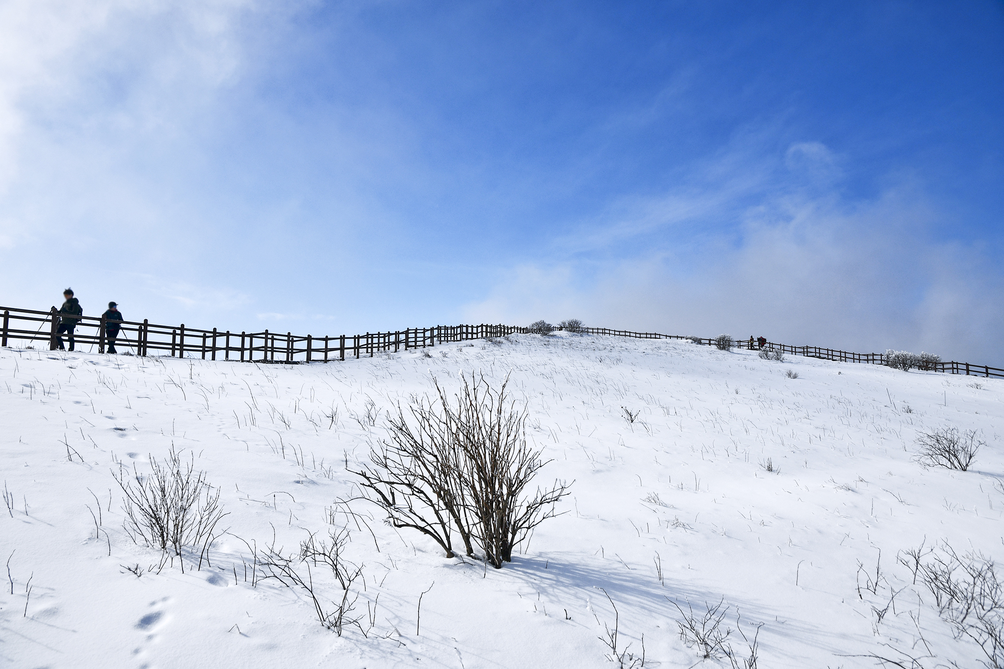 듬성듬성 무인도처럼 서있는 한겨울 철쭉은 하얀 설원에 동화되어 간다.