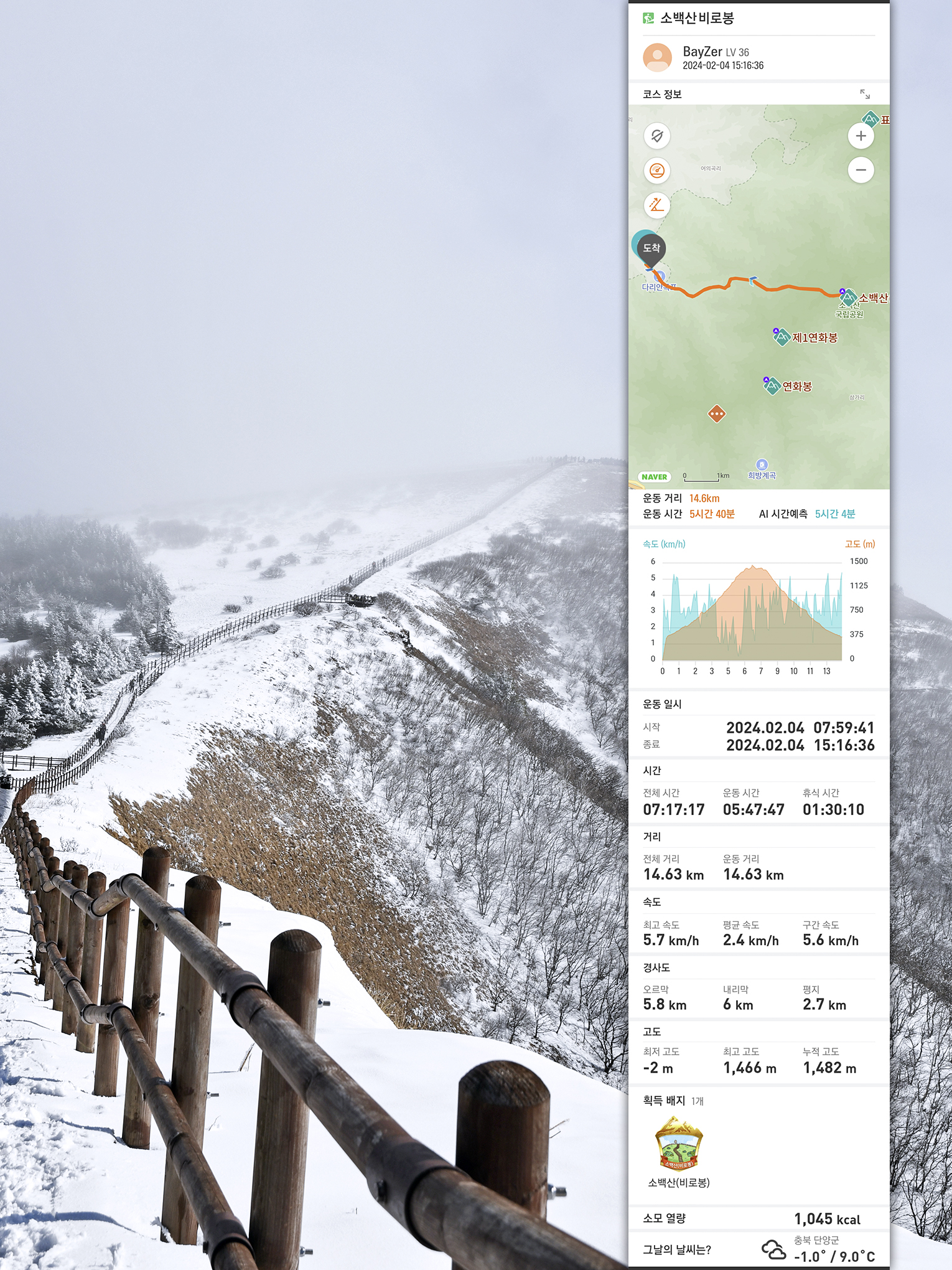 | [평창 발왕산 엄홍길코스] 애니포레에서 평창평화봉까지 눈꽃산행 (35) | 2024.01.30 |