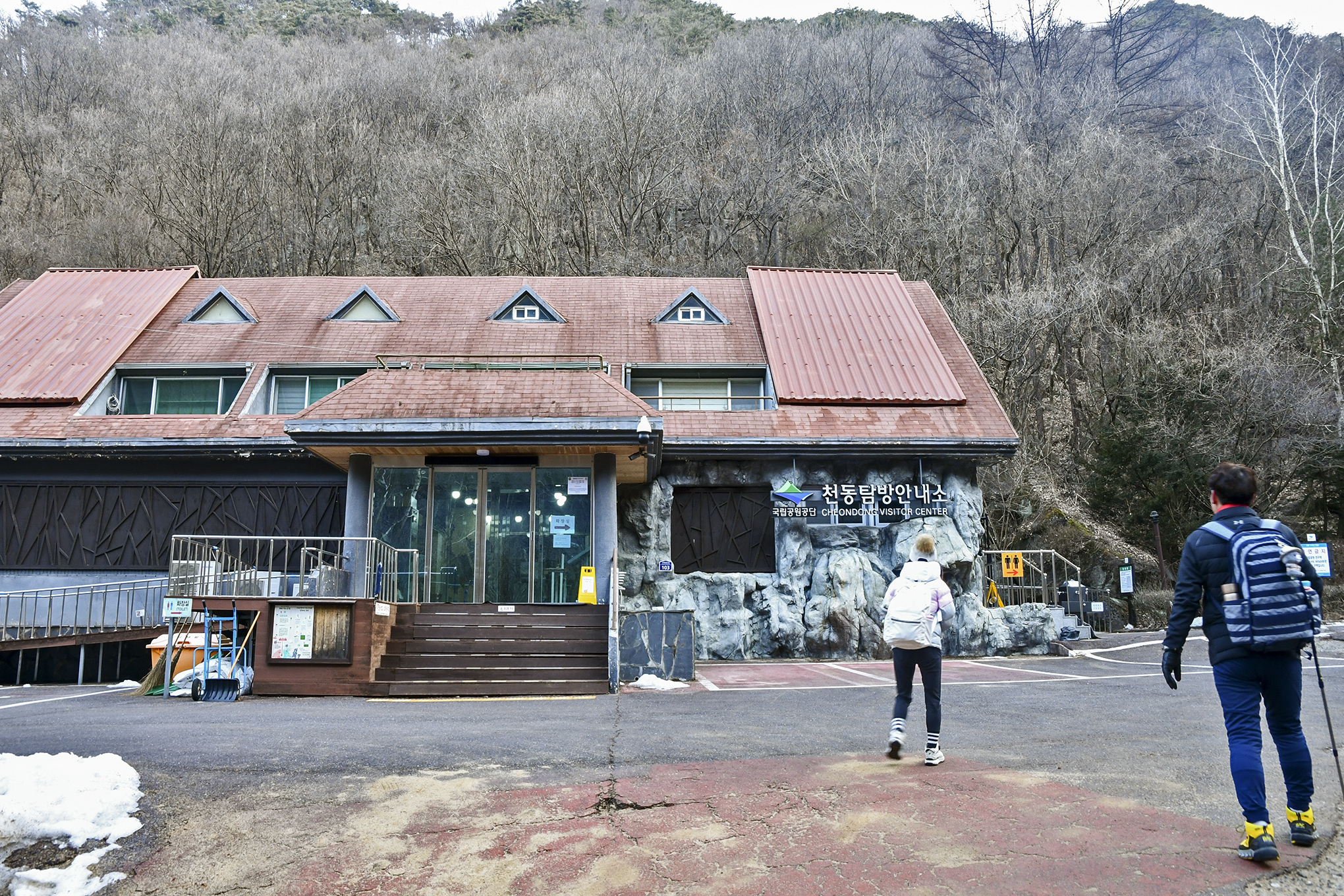14시54분, 천동탐방지원센터에 도착, 이제 천동주차장까지 0.8km만 더 내려가면 된다.