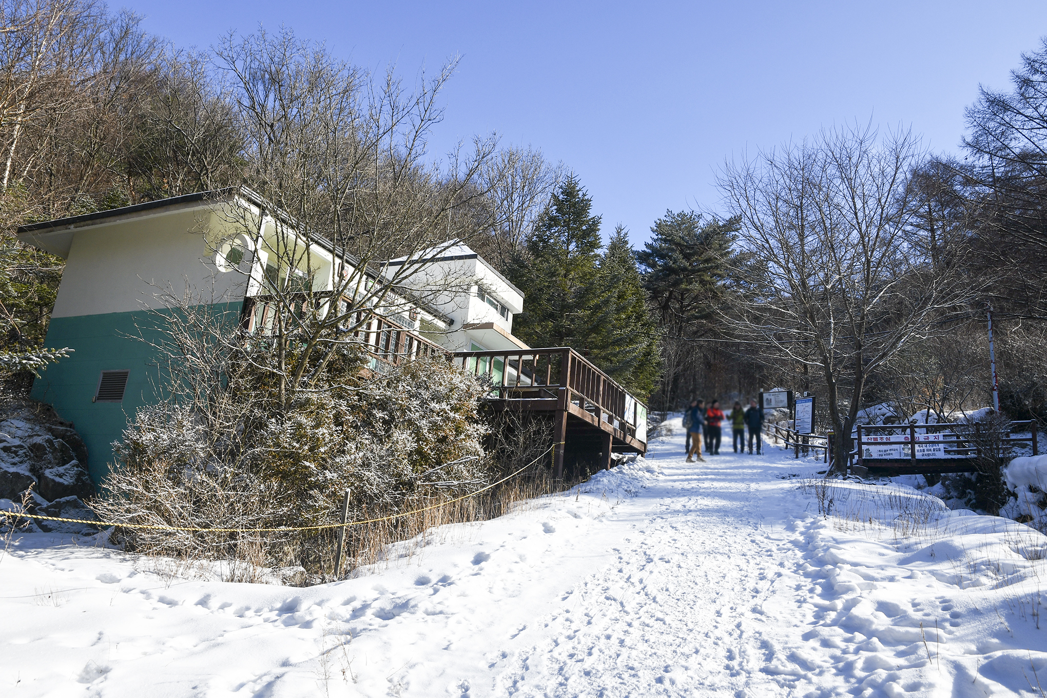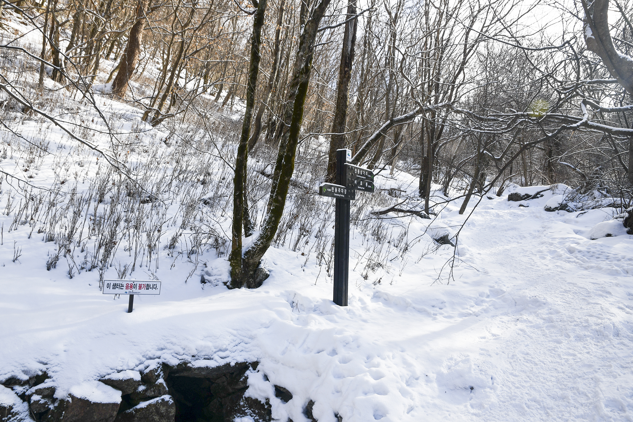천동계곡 탐방로는 계곡을 따라 이어진 비교적 완만한 경사로의 탐방로로서 겨울이지만 청량한 계곡 물소리를 들으며 걸을수 있다.