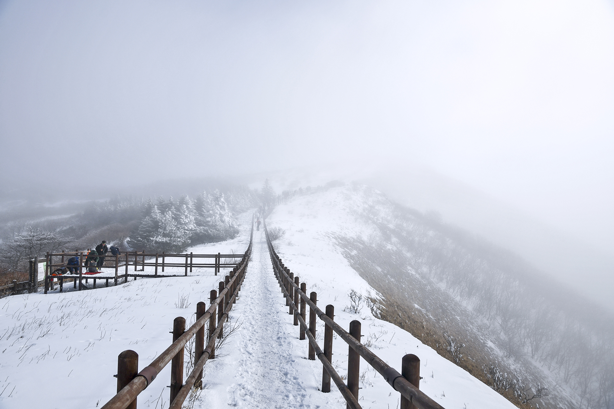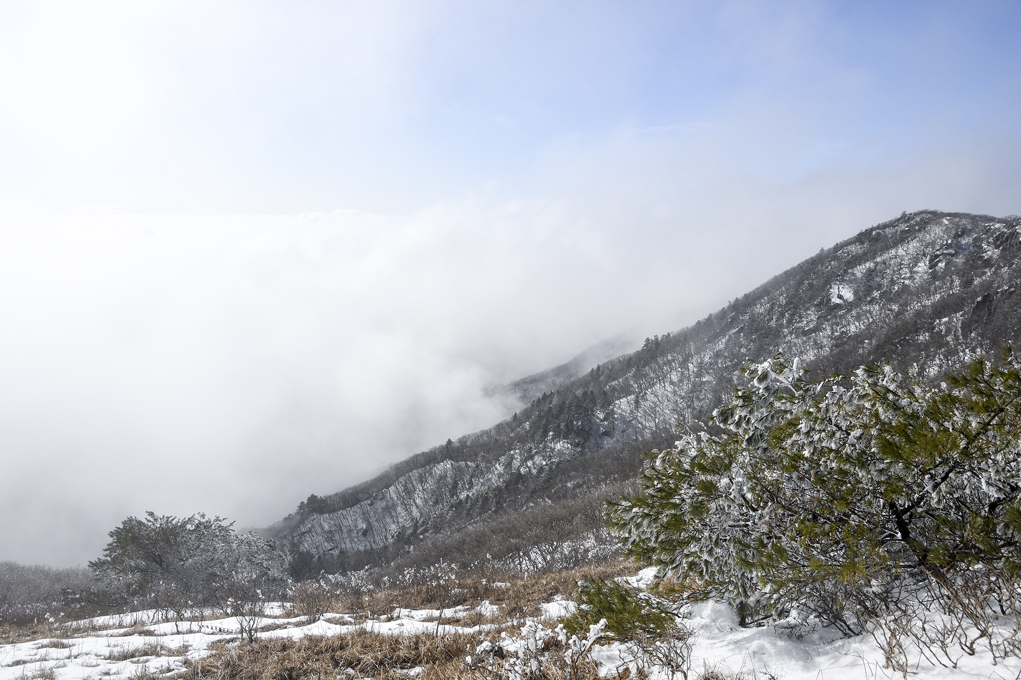 한시간 전 만해도 이런 풍경은 상상도 못했는데, 소백산의 겨울은 깊은 인상을 남기고 있다.
