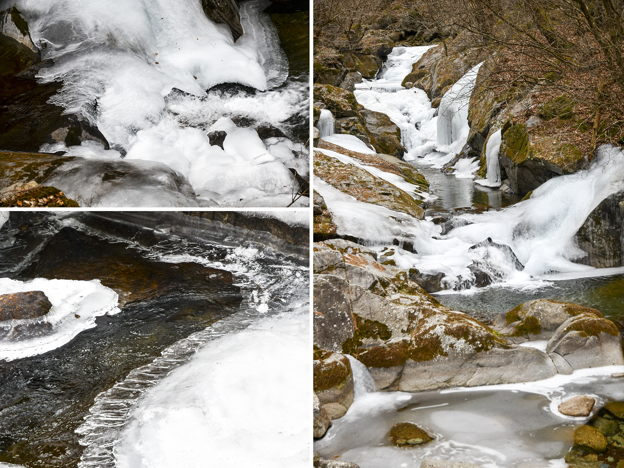데크를 따라 잠깐 아래로 내려오면 폭포를 볼수 있는데 물소리는 들려오지만 겨울이라 삼단폭을 제대로 느낄수는 없다.