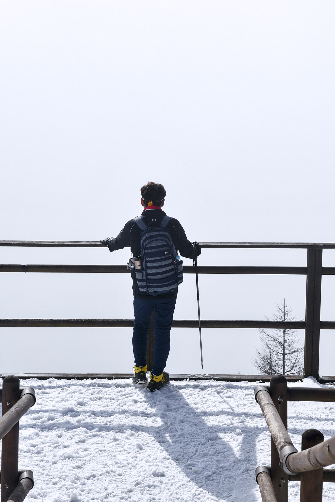 낙엽송 그림자를 길게 만들며 해까지 드리우니 오늘 상고대는 없는게 확실해 보인다.