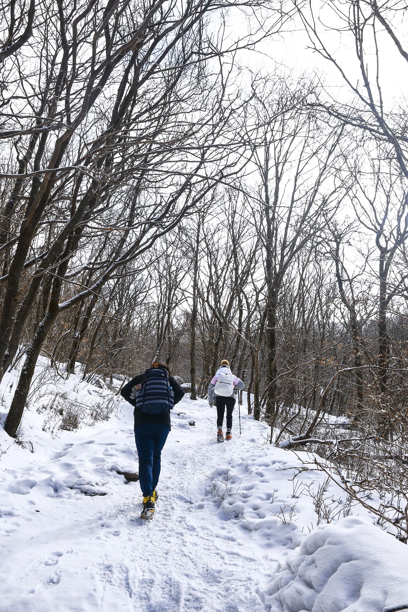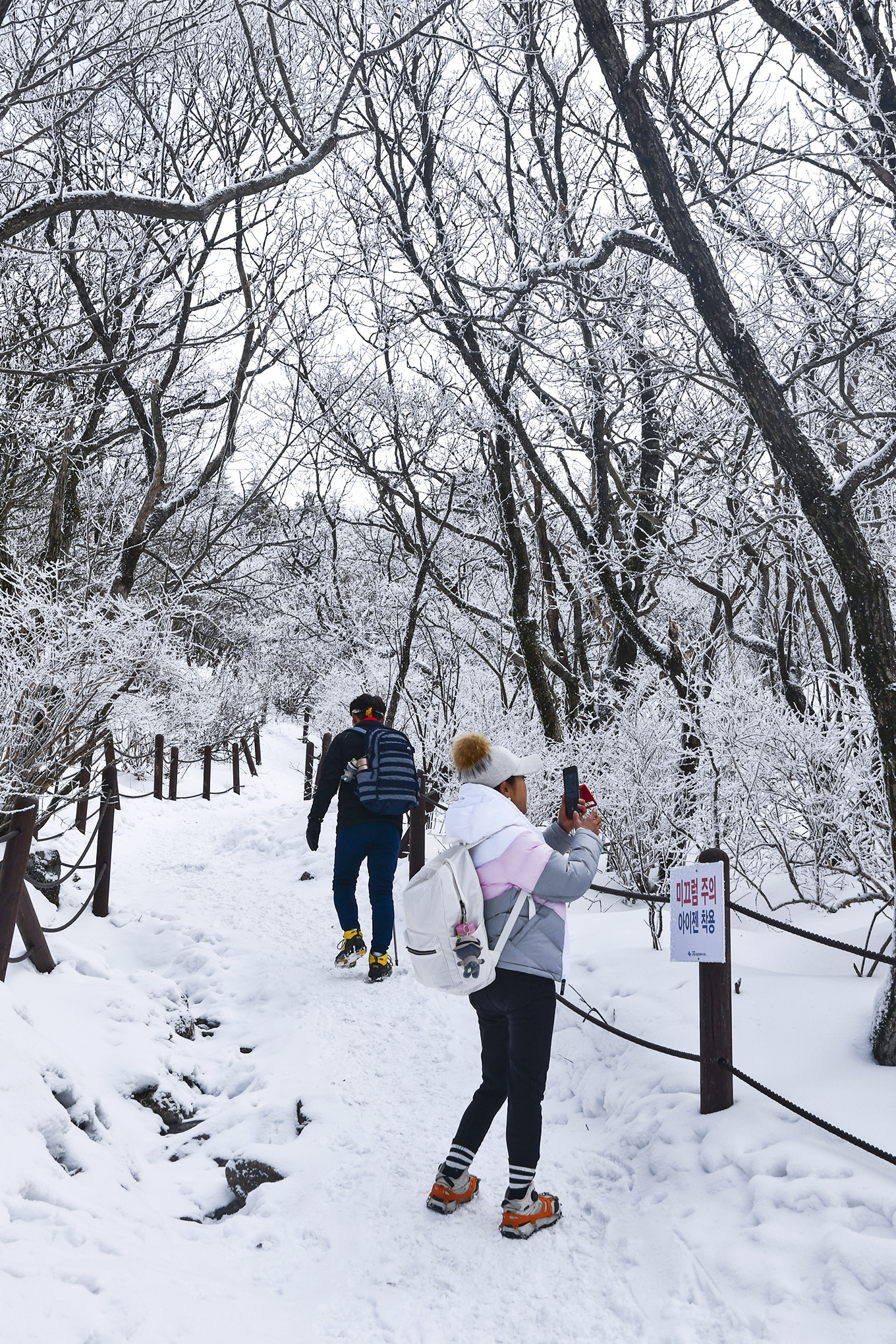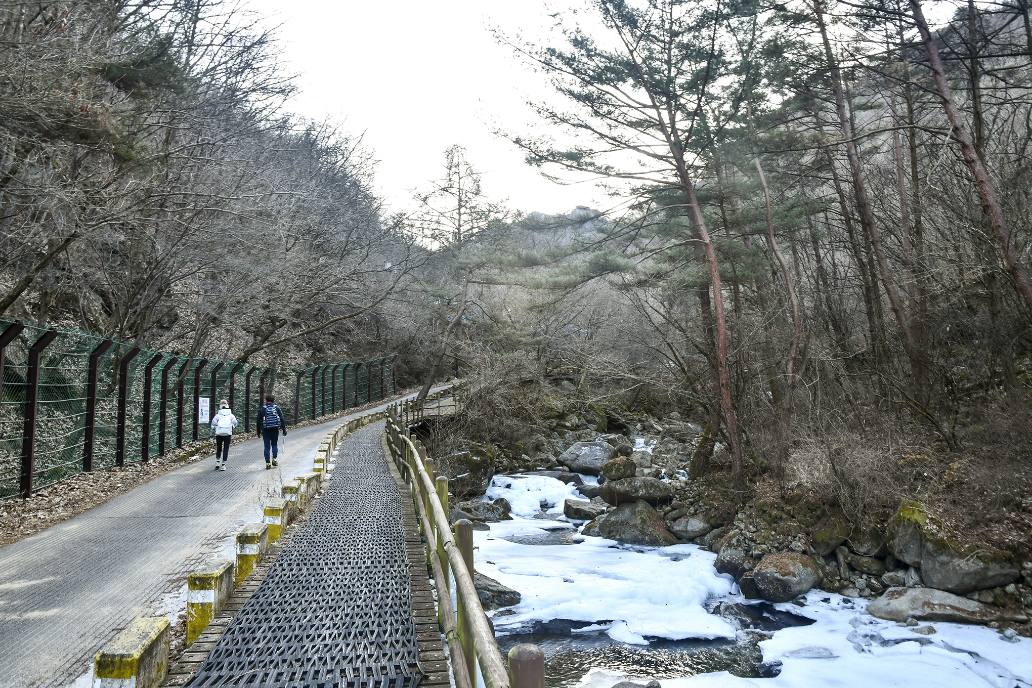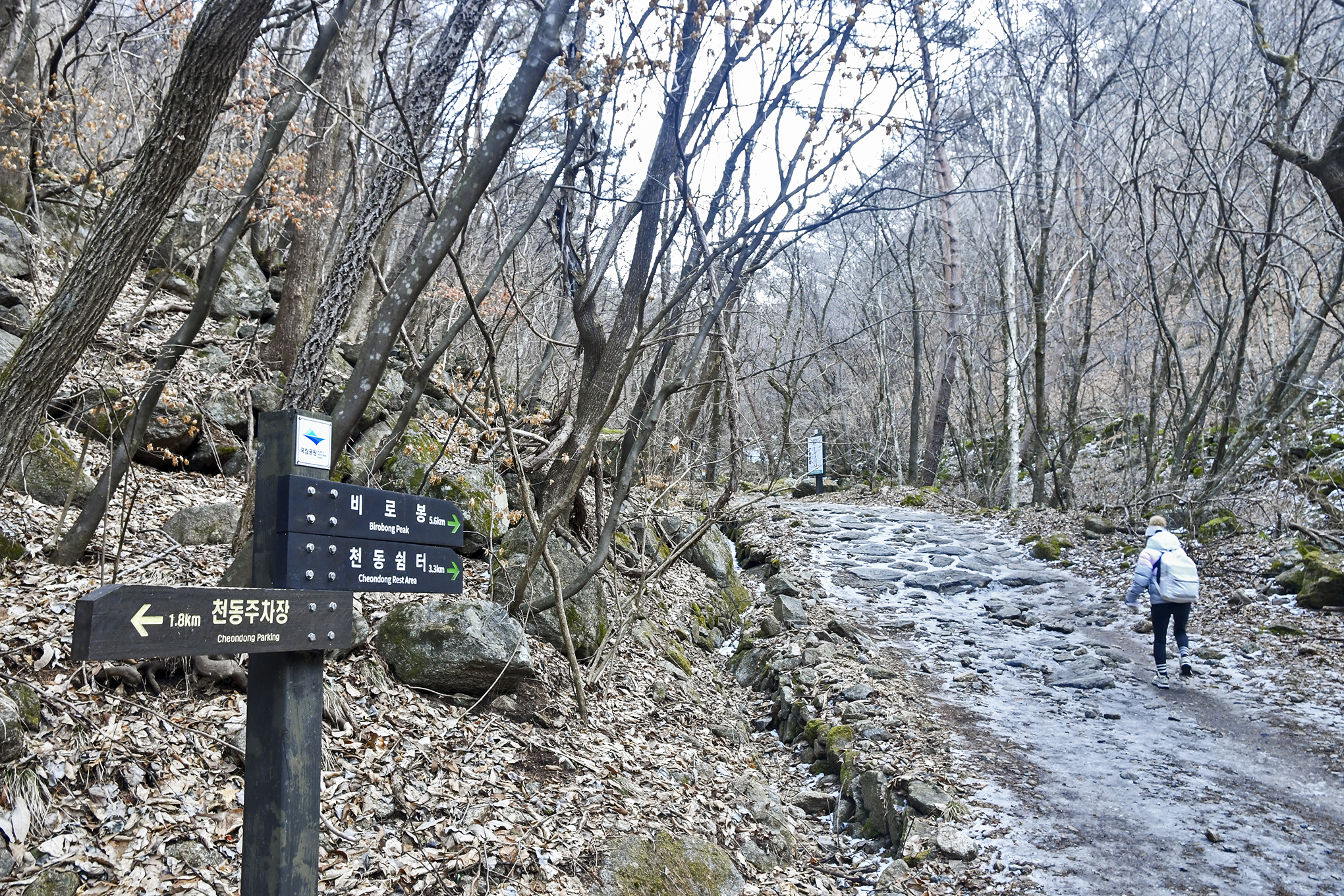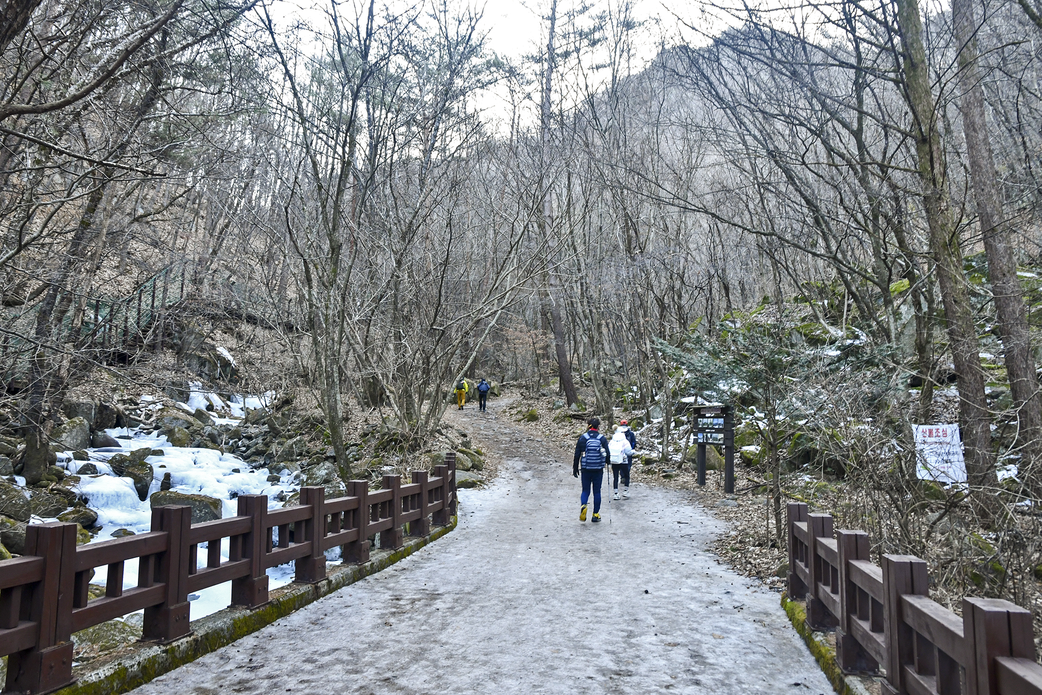 천동탐방안내소에서 1km를 더 걸어온 지점, 얼음이 얼어 걷기가 조금 불편해졌다.