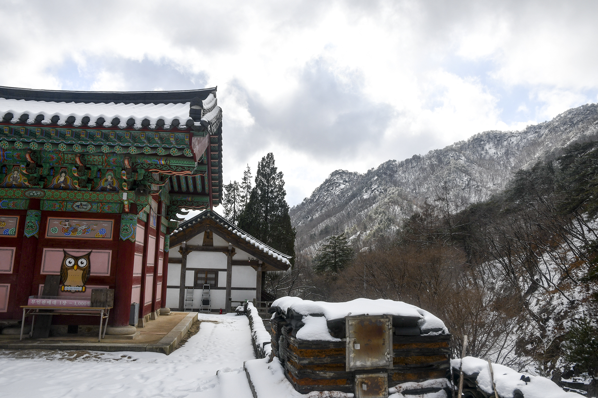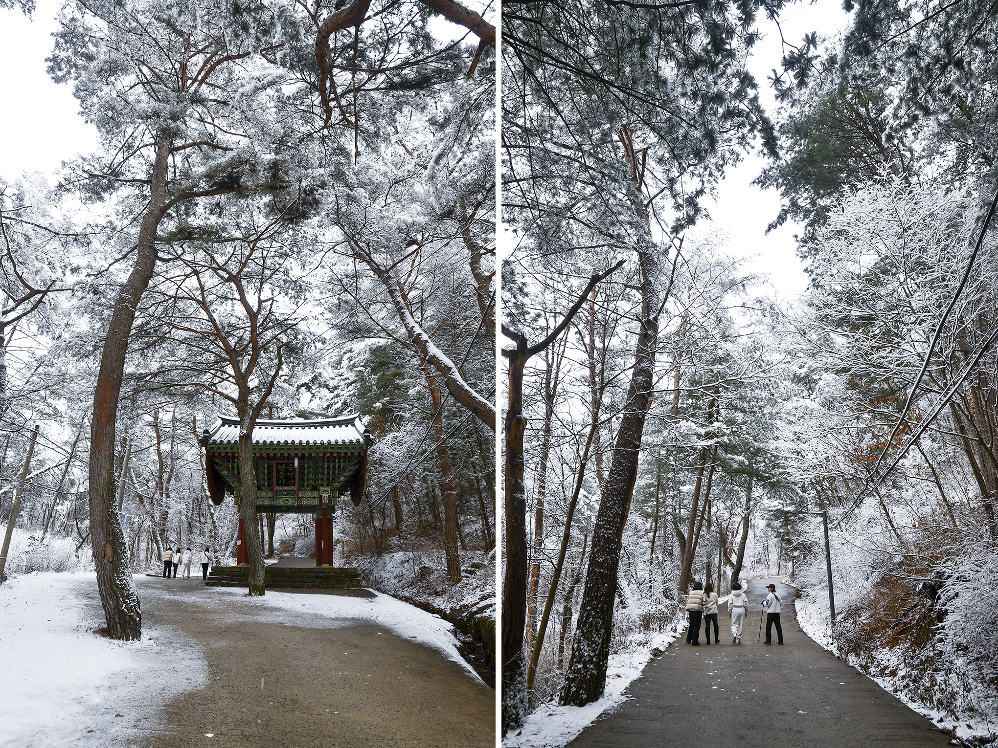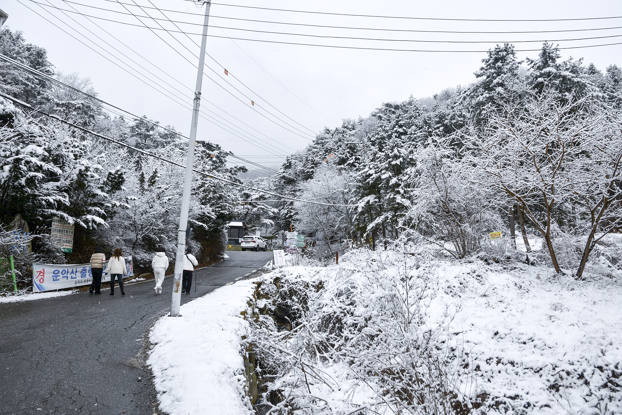 밤새 내린 눈으로 온통 하얀 설경이 장관이다. 남도에는 봄꽃이 피는 요즘 여전히 겨울임을 알려주는듯 하다.