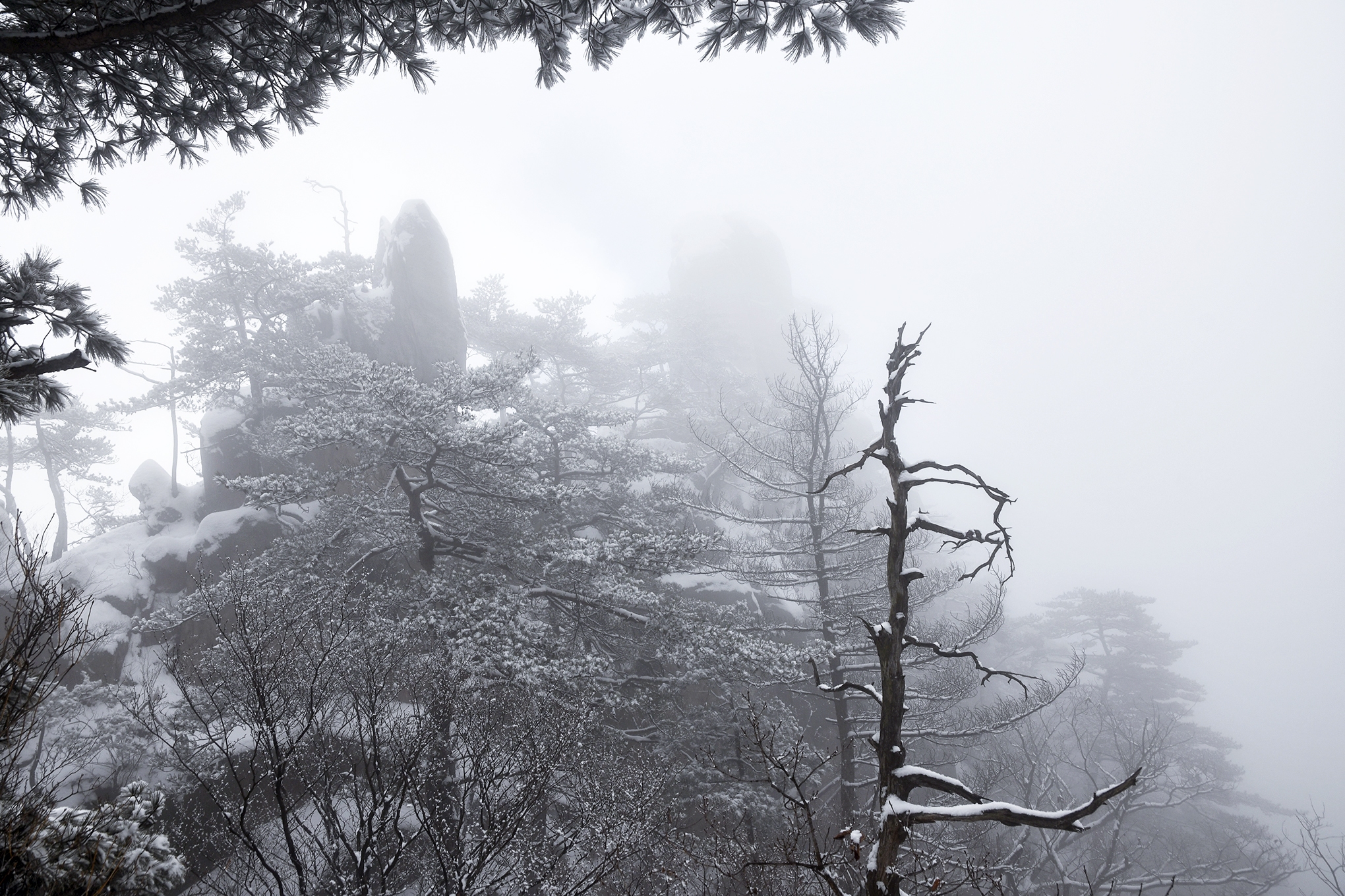 안개는 물 흐르듯 넘실넘실 흘러가며 병풍바위의 모습을 시시각각으로 변화시키고,