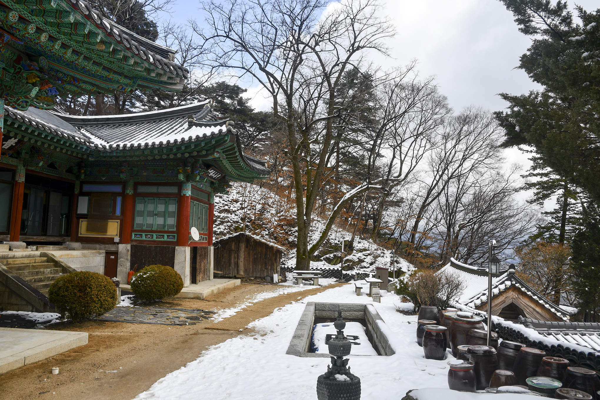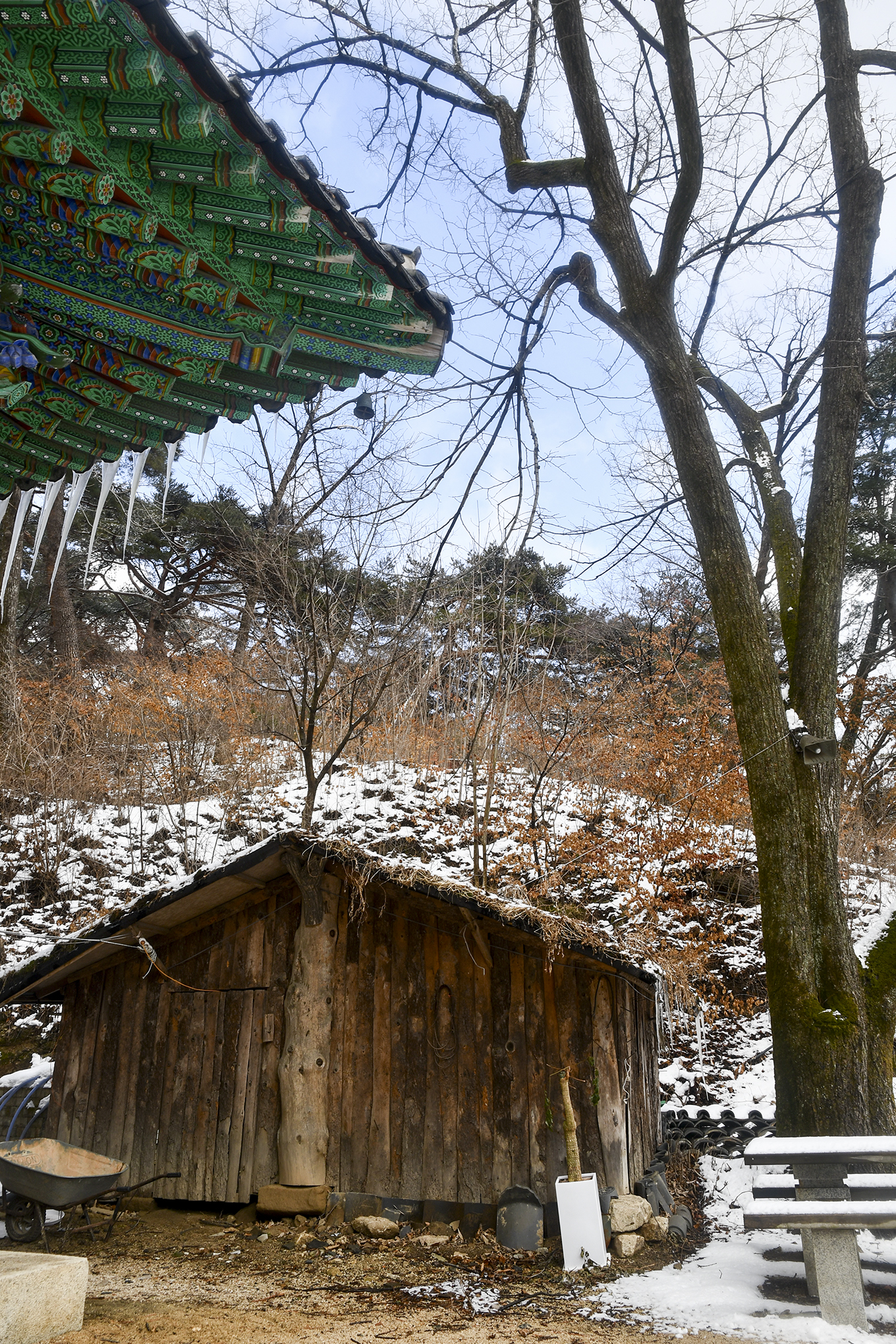 돌아본 산에는 여전히 설경이 그대로인데 이곳 주변에는 서서히 녹고 있는 중이었다.