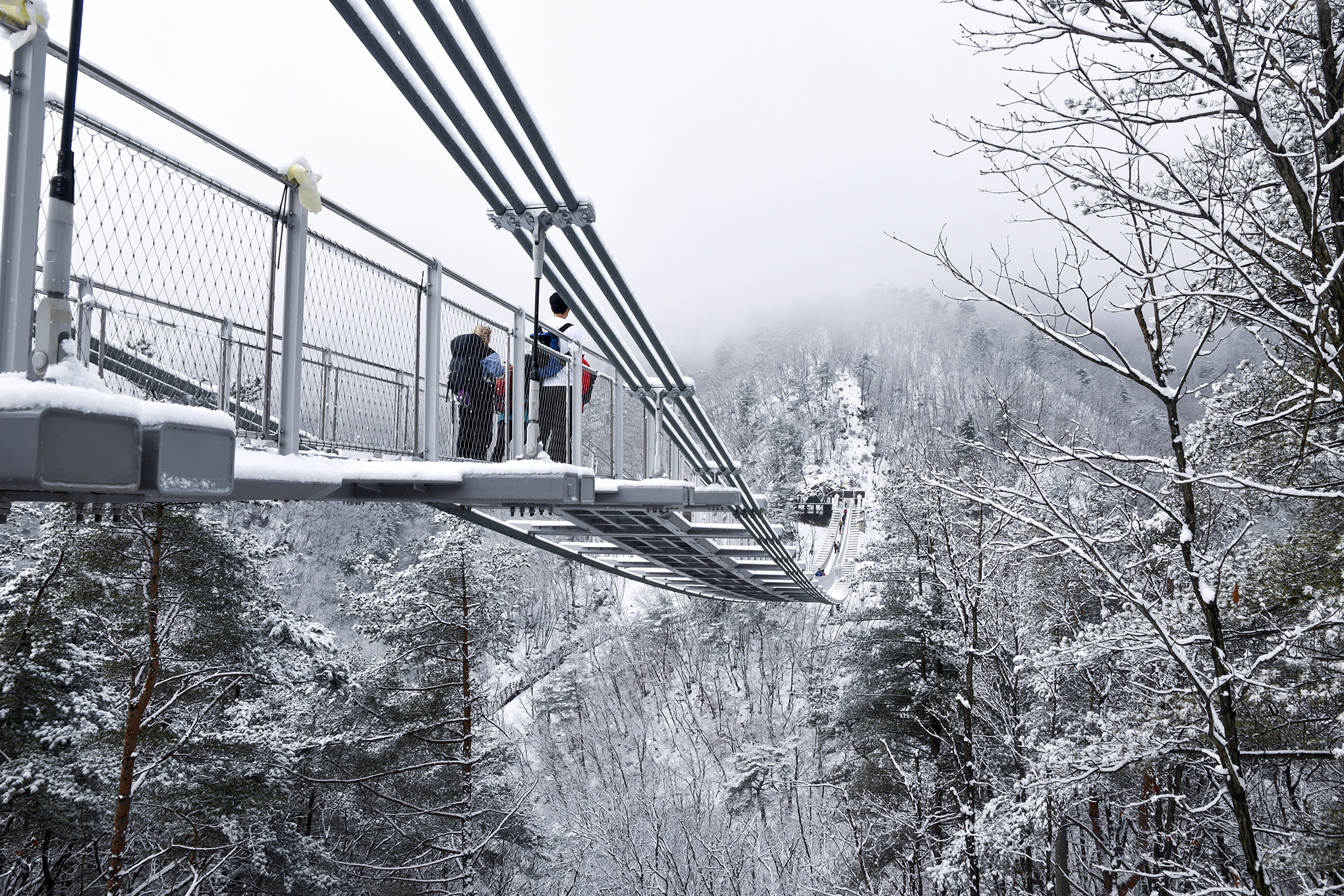 출렁다리 마저 하얗게 겨울산과 하나가 되었다.