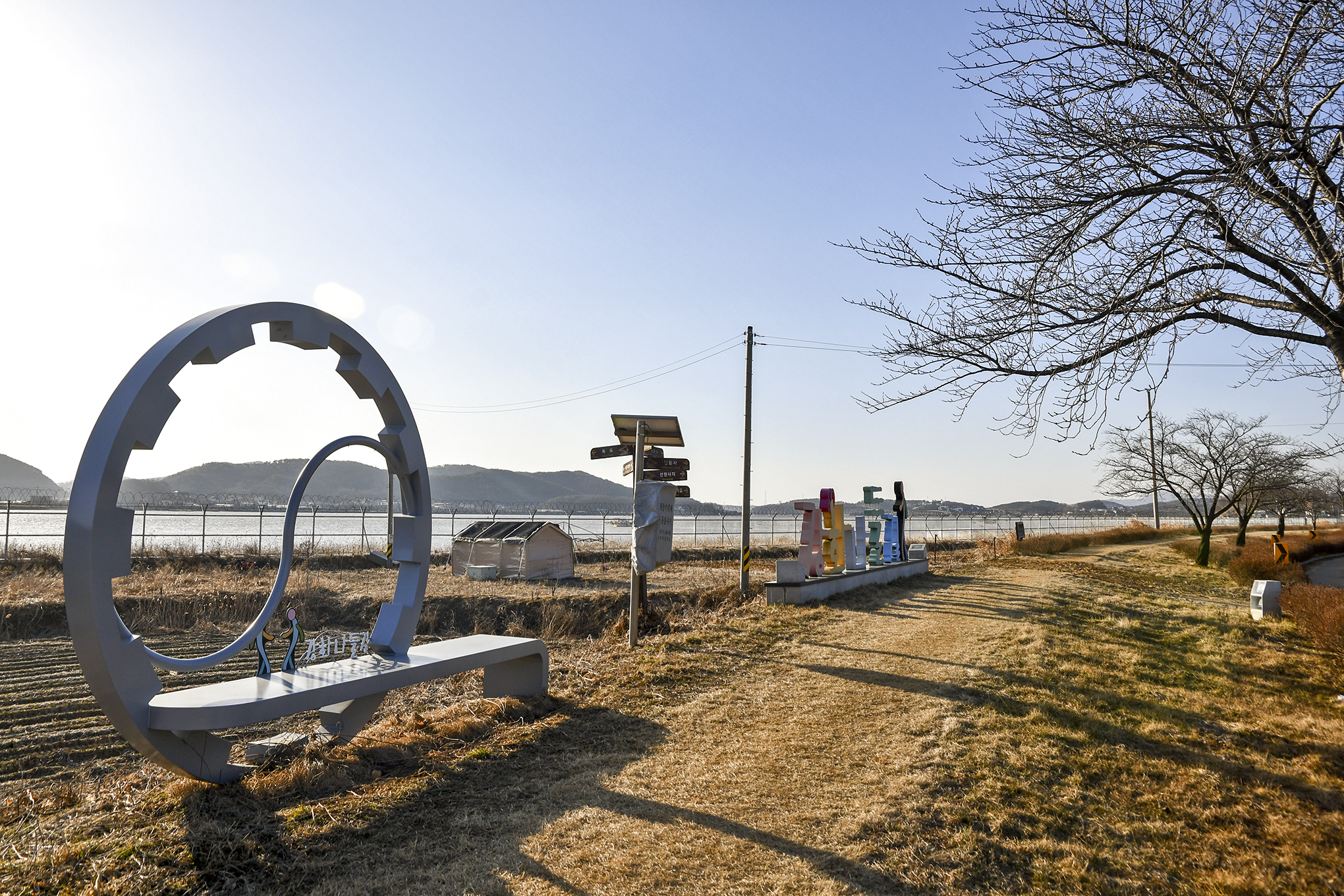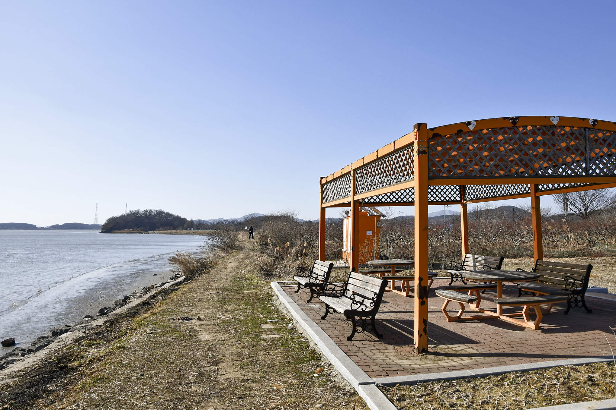용진진에서 잠시 자전거길을 따라 걸으며 쉼터 하나를 지나고,