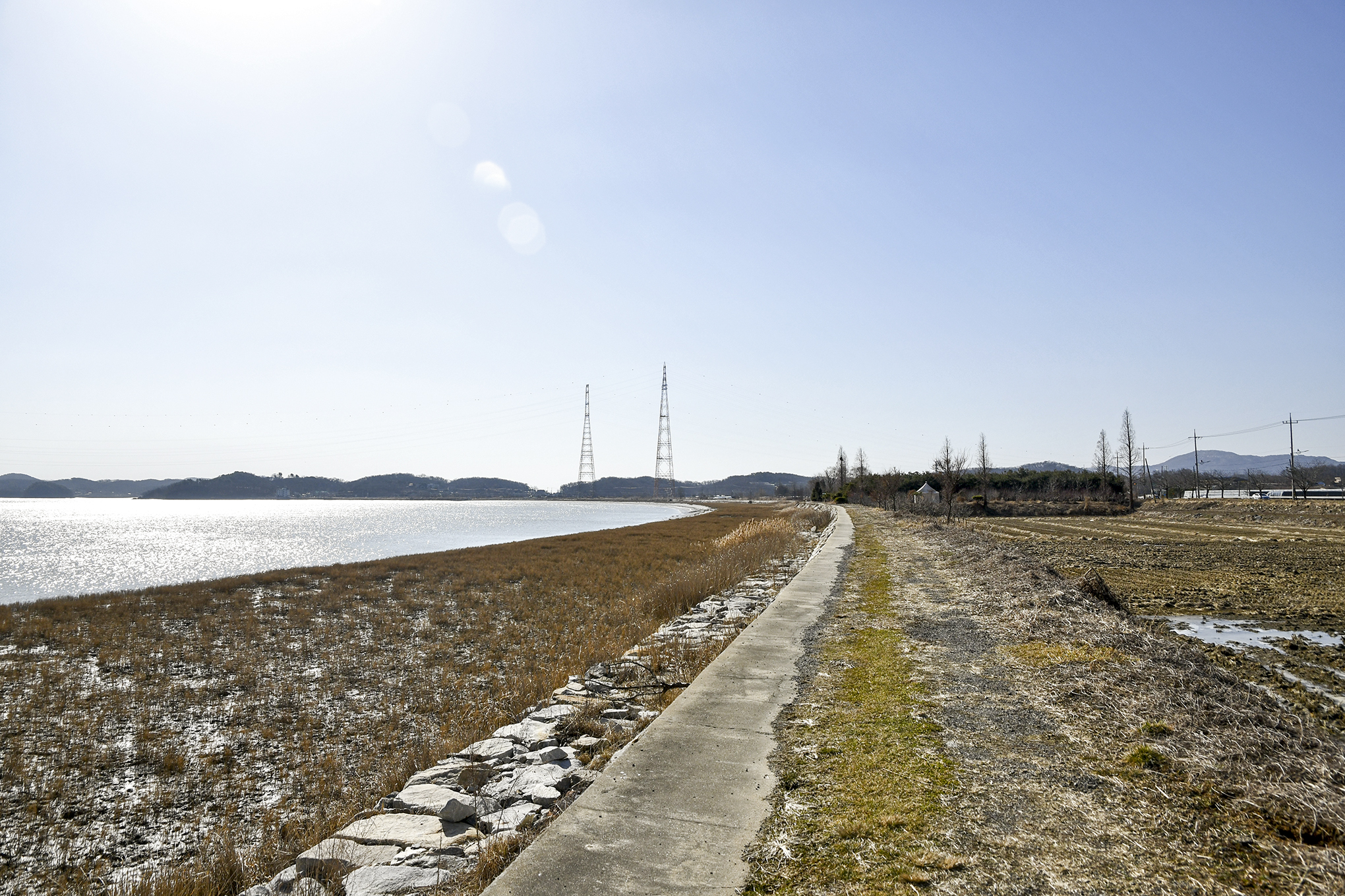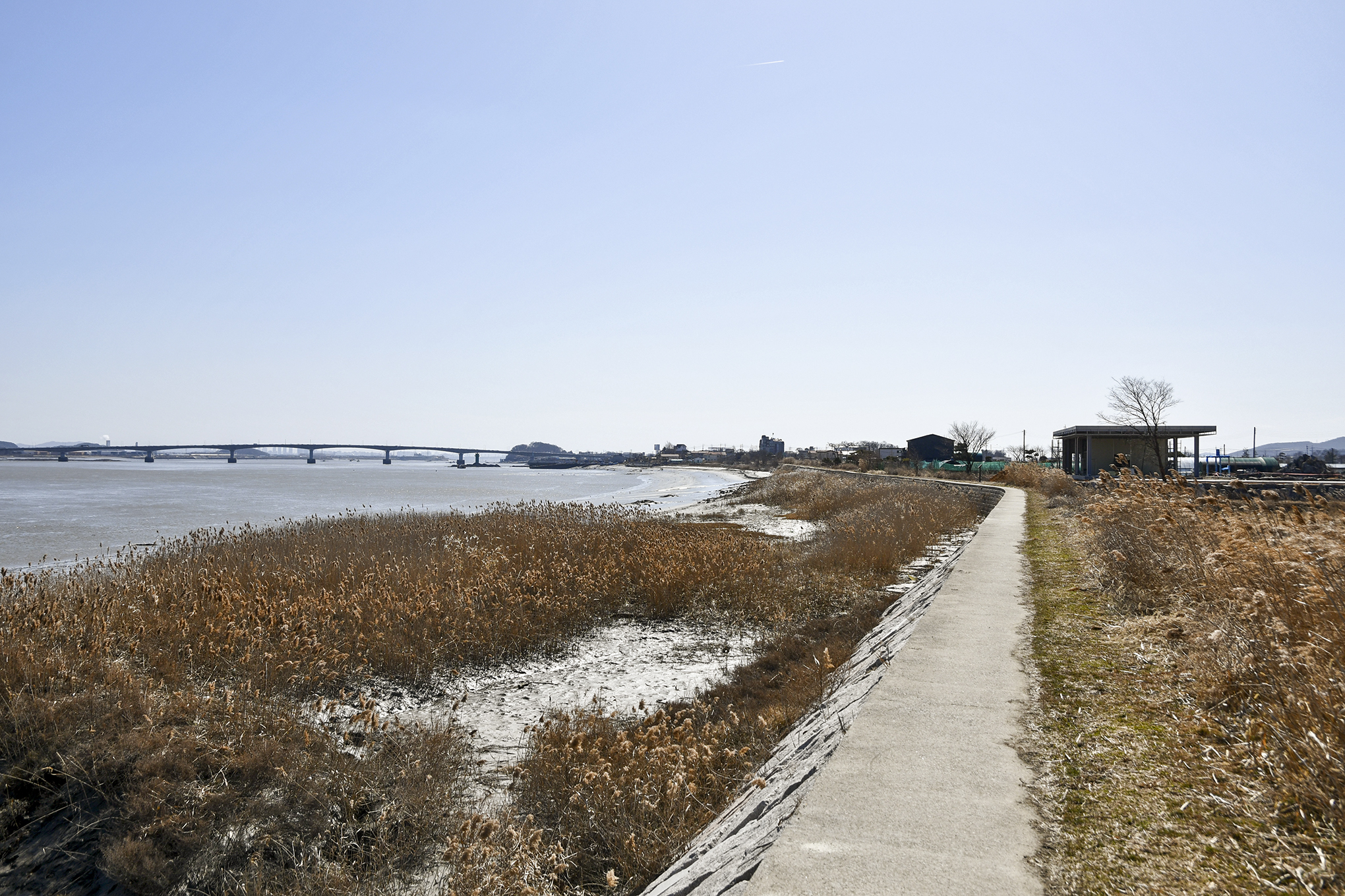 염하를 바라보며 갈대 곁으로 지루하리 만큼 길게 이어진 길이다.